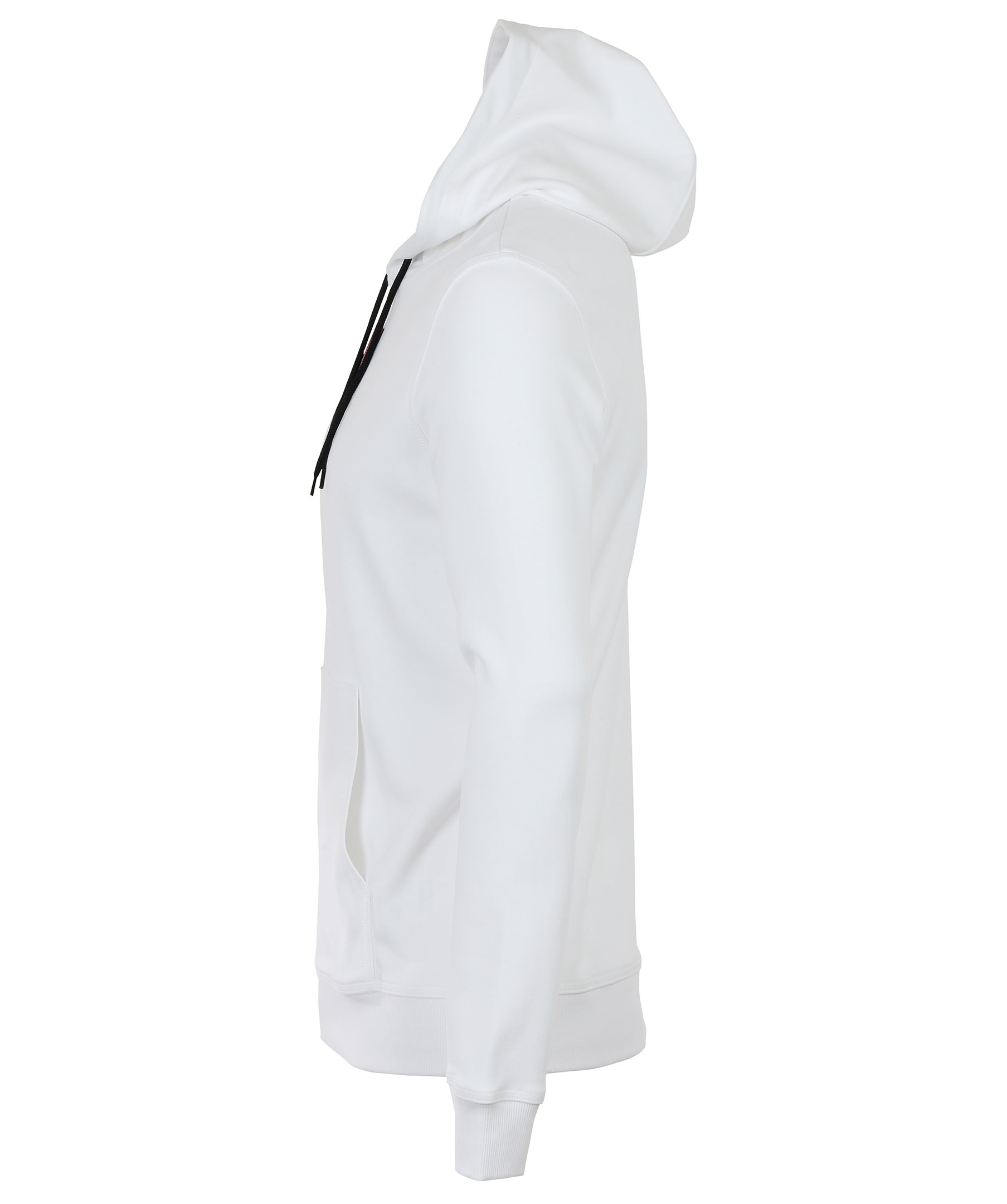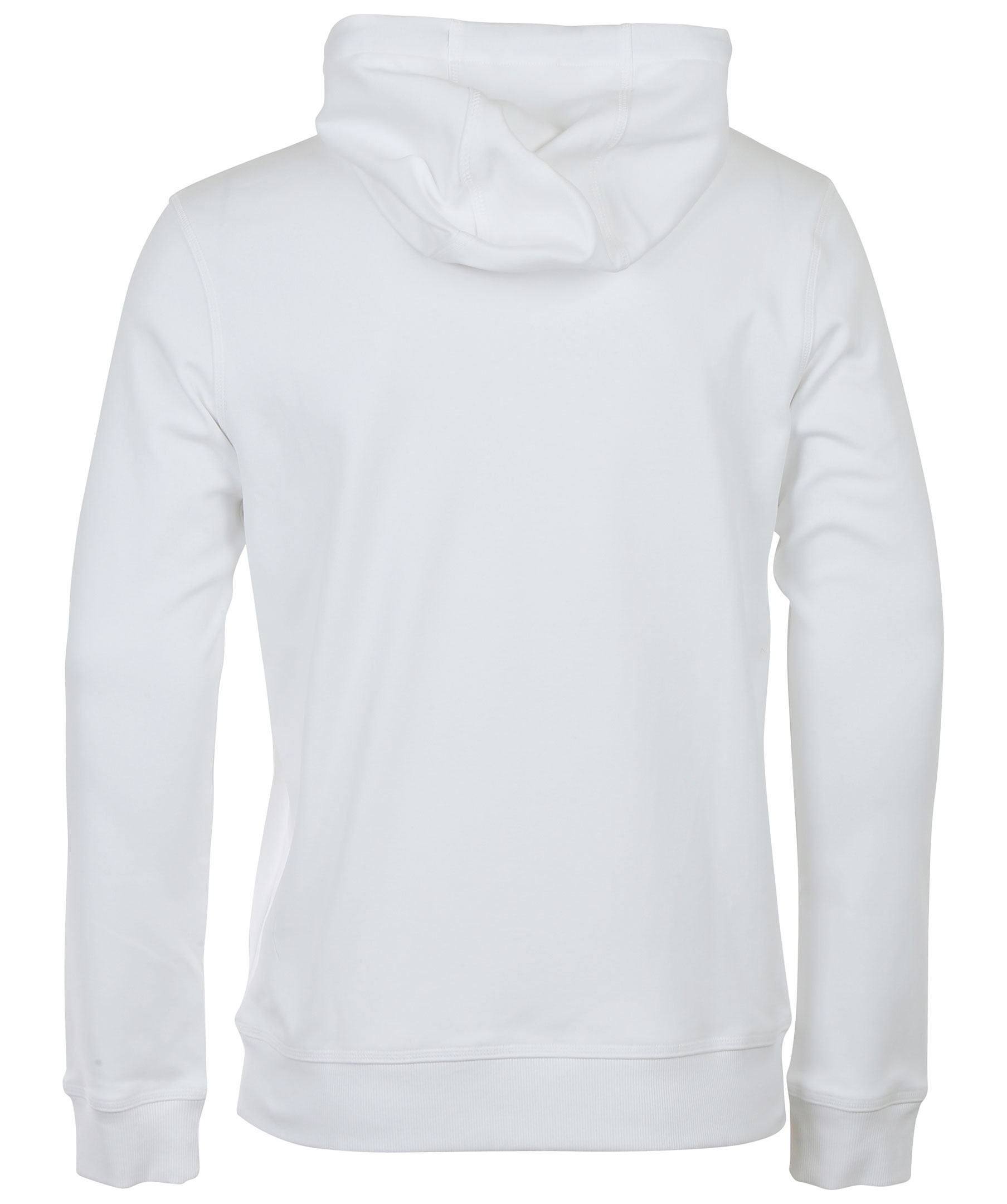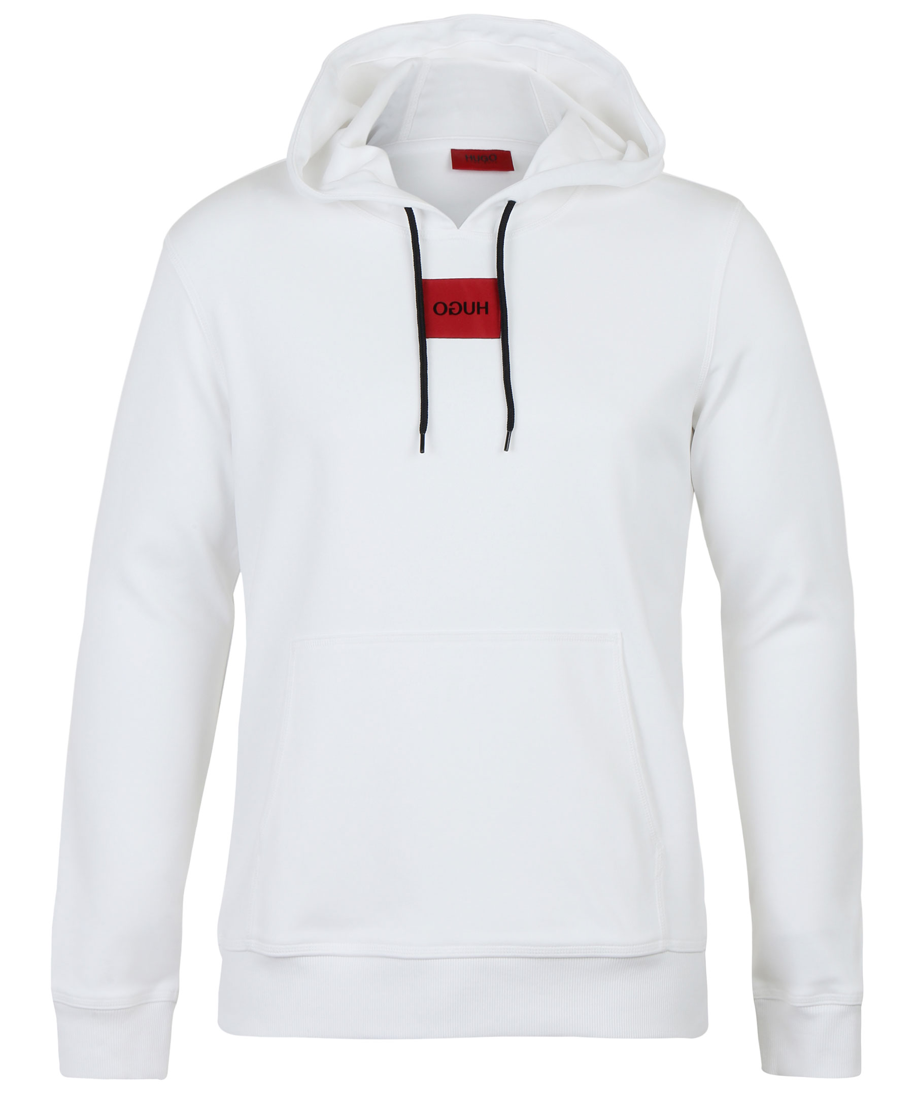 Vit hoodie från Hugo, tillverkad i bomull. Ficka på magen, muddar i ärmslut och logotyp i textil på bröstet.