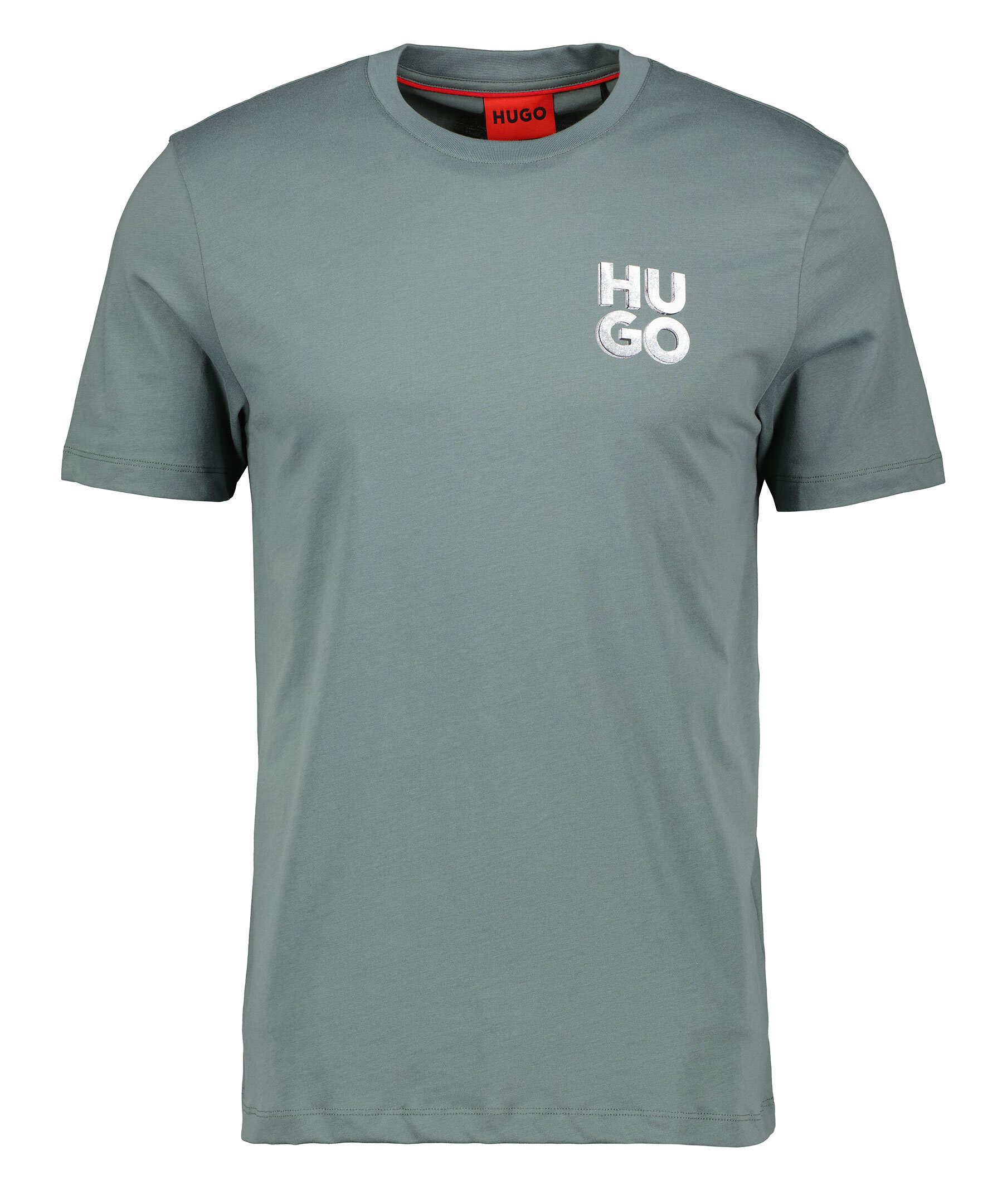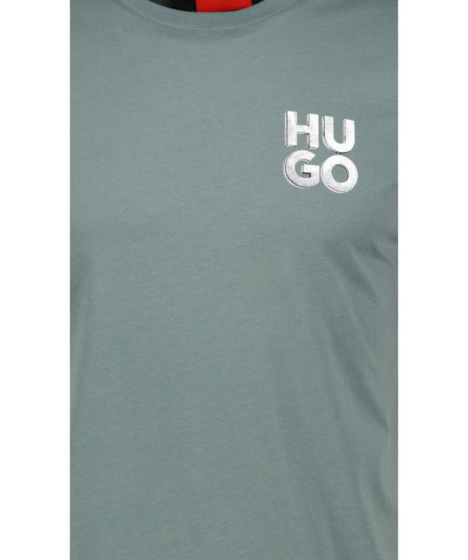 Grön T-shirt från HUGO. Tryckt logotyp på vänster bröst. Rundad halsringning med ribbstickad mudd. Tillverkad i 100% Bomull.