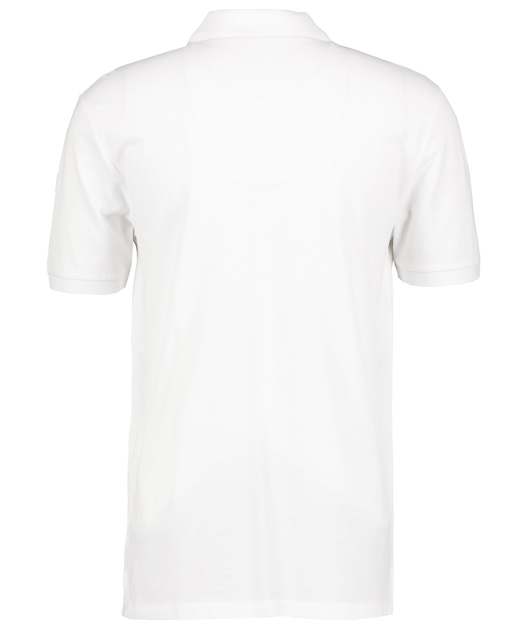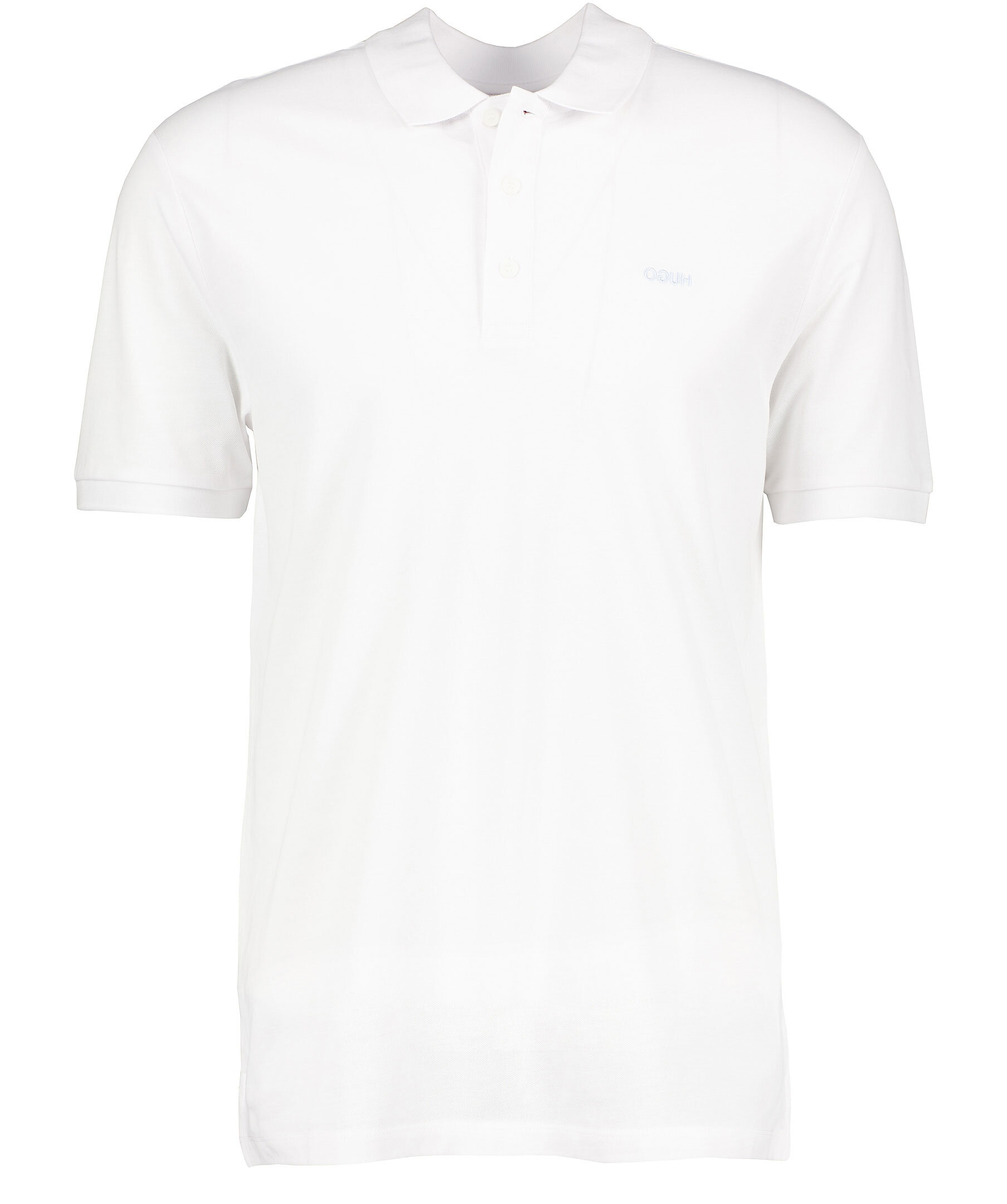 Vit kortärmad piké från Hugo. Tillverkad i bomull och har en liten ljusblå broderad logga på bröstet. Små slitsar i sidorna och spetsig, vid krage.