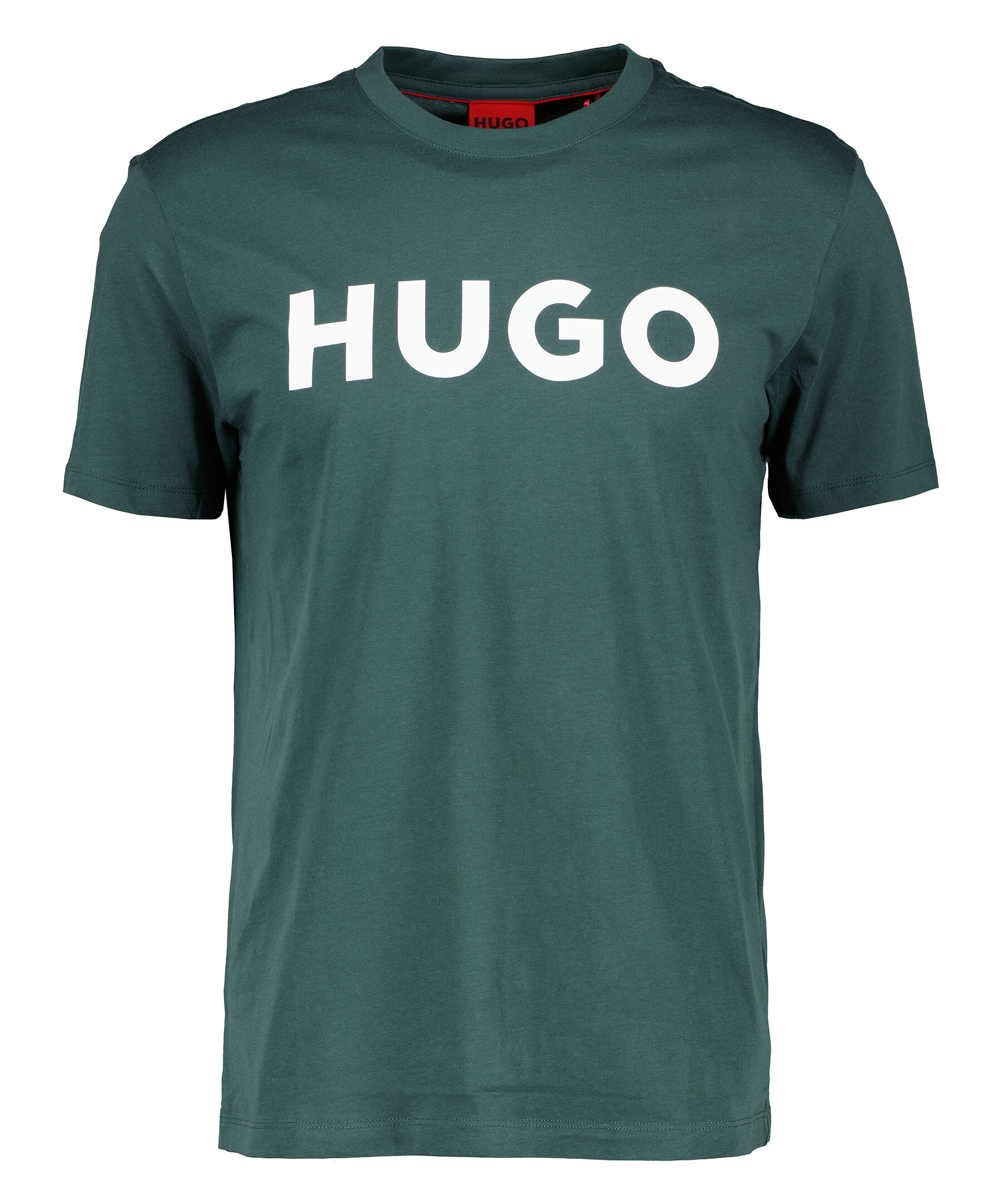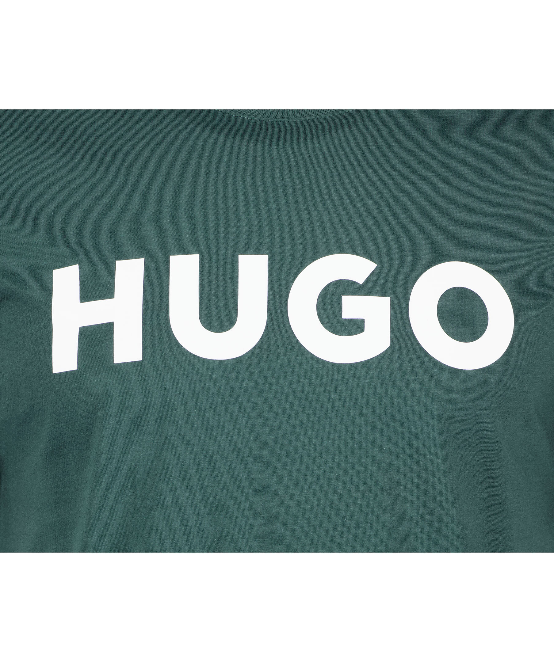 Skogsgrön t-shirt i straight fit från HUGO. Den är tillverkad av ren bomullsjersey och har en kontrasterande HUGO-logga tryckt på bröstet. Genom att köpa den här produkten bidrar du till att skydda miljön och främja hållbar bomullsodling i Afrika. CmiA (Cotton made in Africa) arbetar för att förbättra levnads- och arbetsvillkoren för afrikanska bomullsbönder och att bevara naturen. Normal passform.