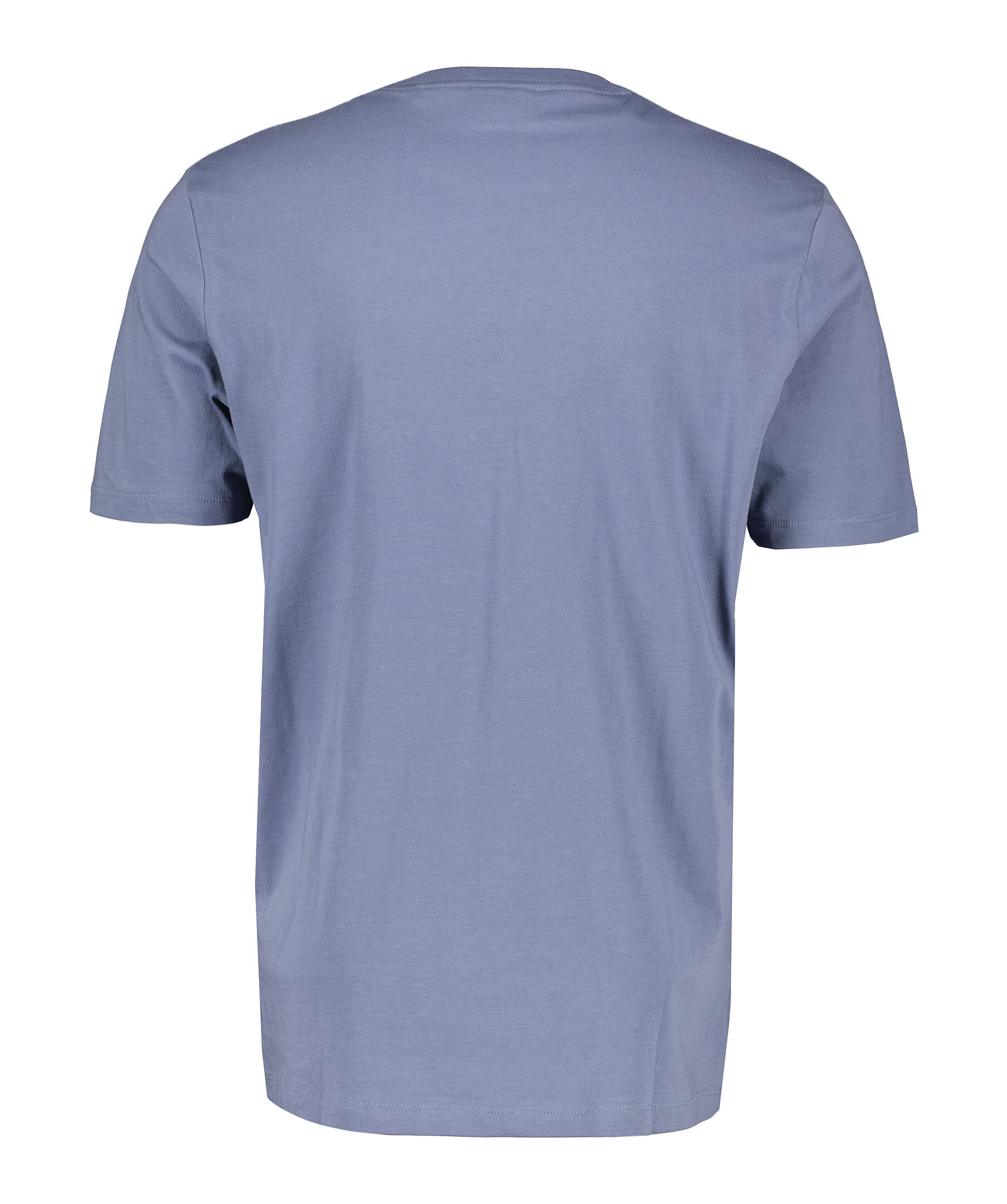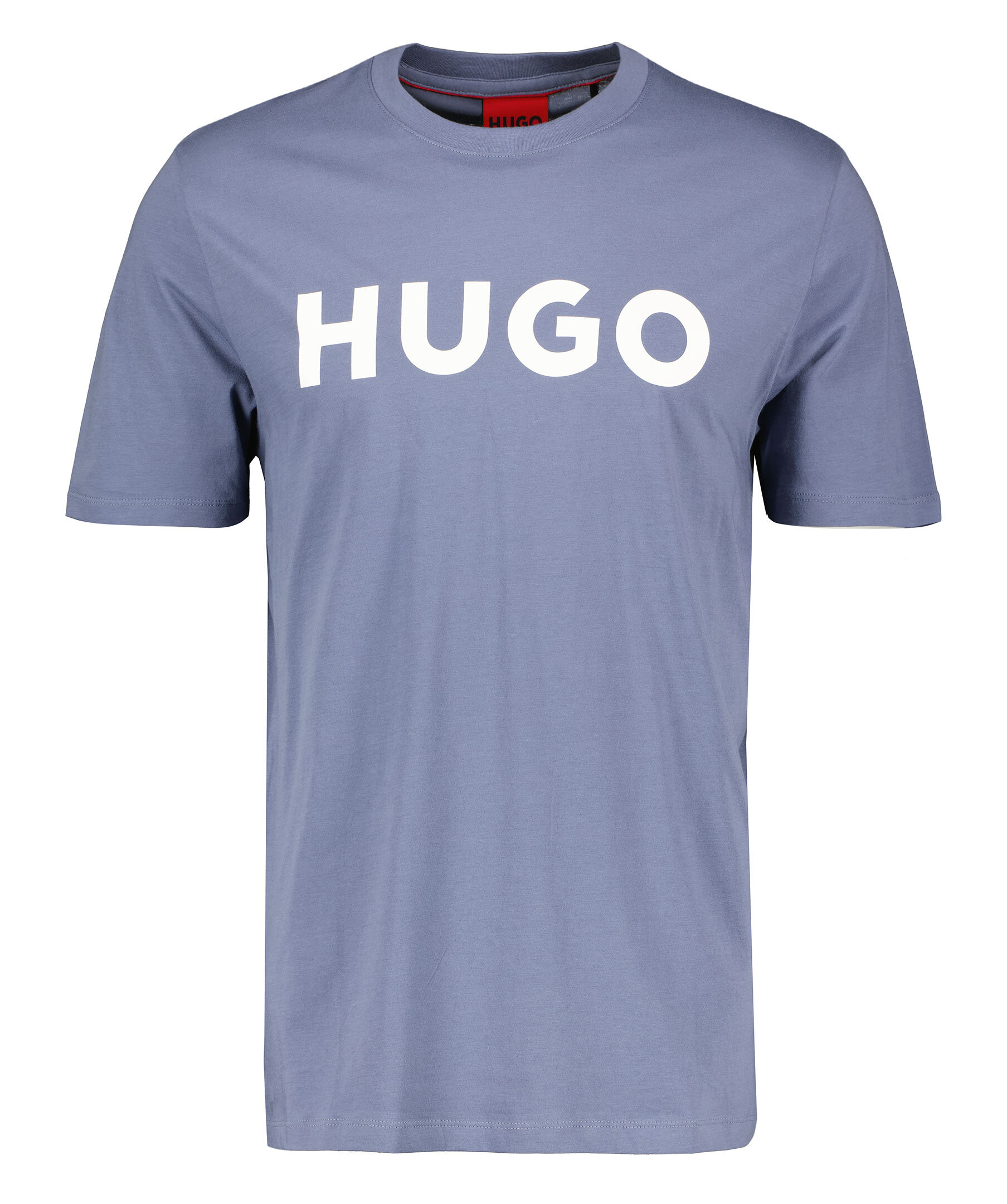 Duvblå T-shirt från HUGO. Tryckt logotyp i vitt på bröstet. Rundad halsringning med ribbstickad mudd. Tryckt logotyp över bröstet i vitt. Tillverkad i 100% Bomull.