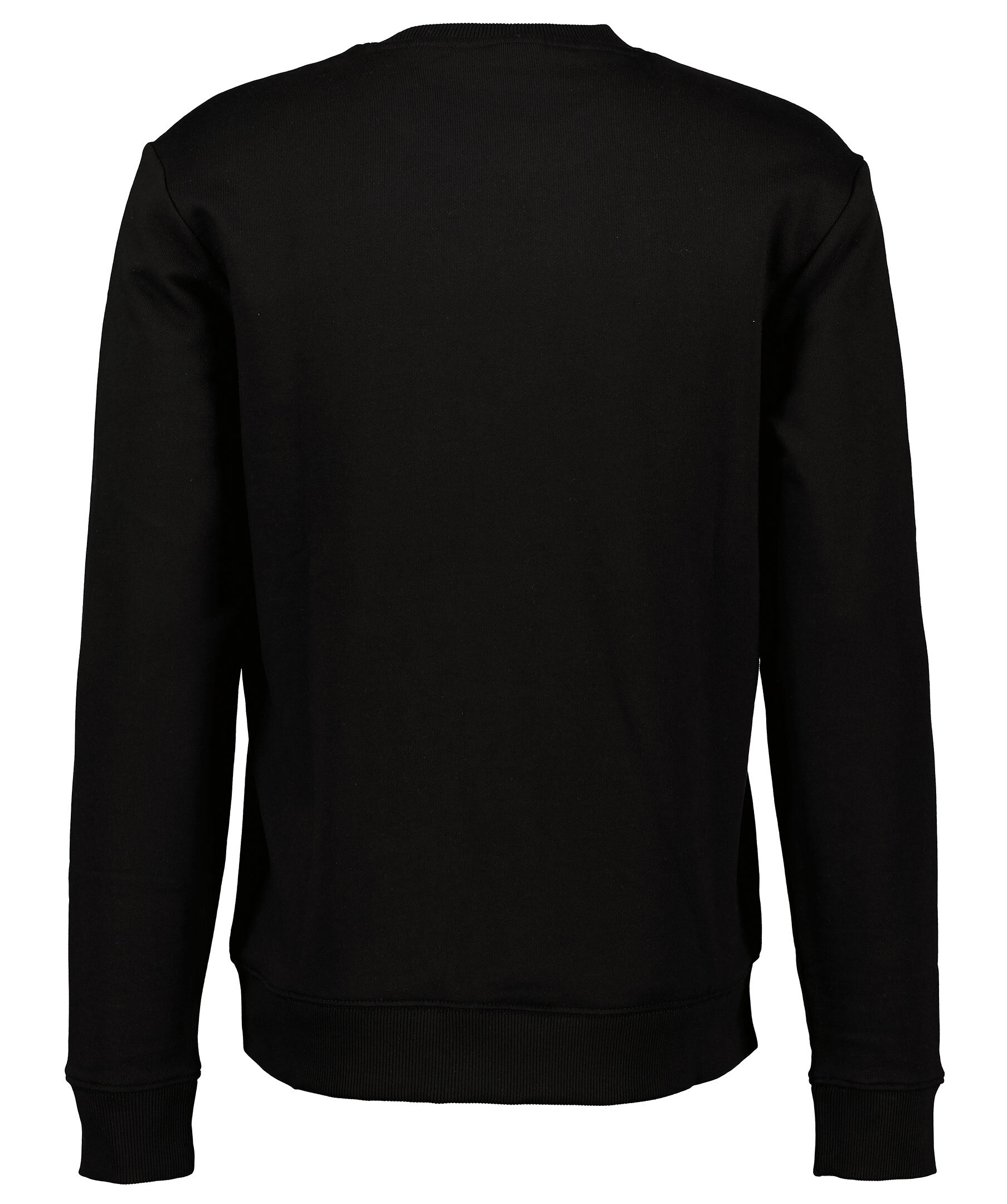 Svart sweatshirt från HUGO. Tillverkad i 100% bomull, har en stor röd ruta med svart logotyp mitt på bröstet. Rundad halsringning, ribbade muddar i ärmslut, i halsringning och i plaggslut.