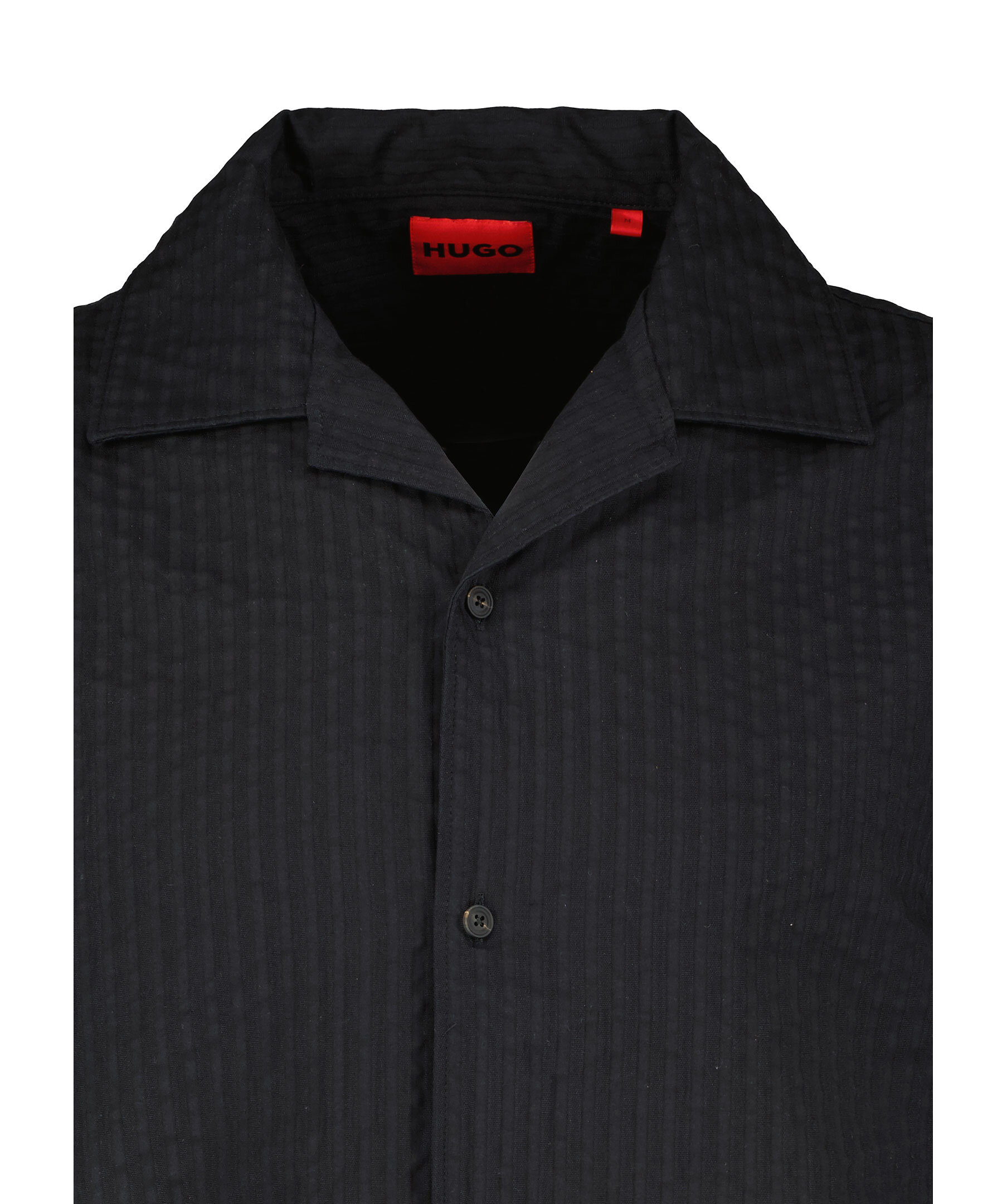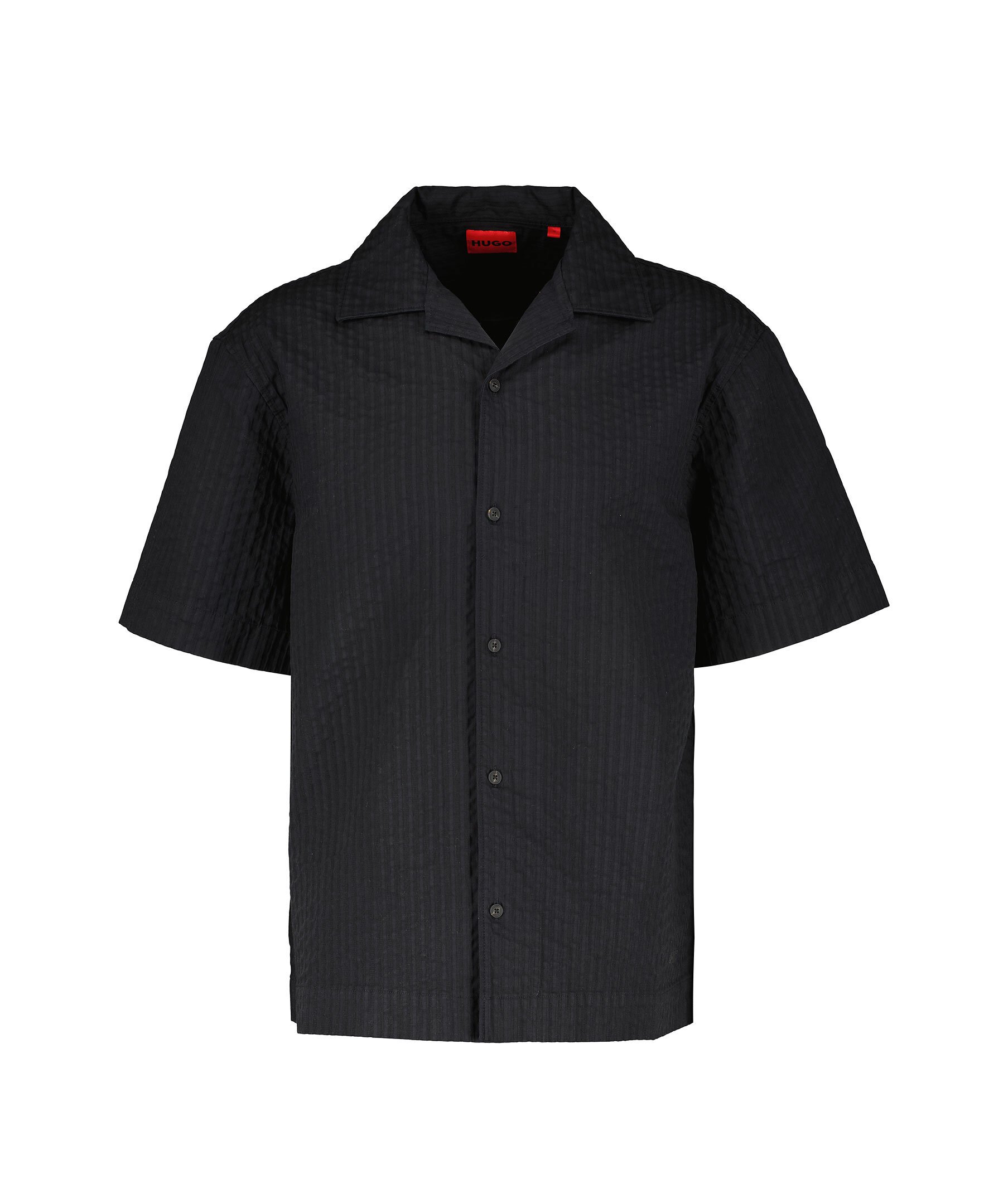 Svart, kortärmad skjorta från HUGO. Skjortan har texturerat, seersucker-tyg och stängs med knappar framtill. Tillverkad i bomull för en fräsch känsla.