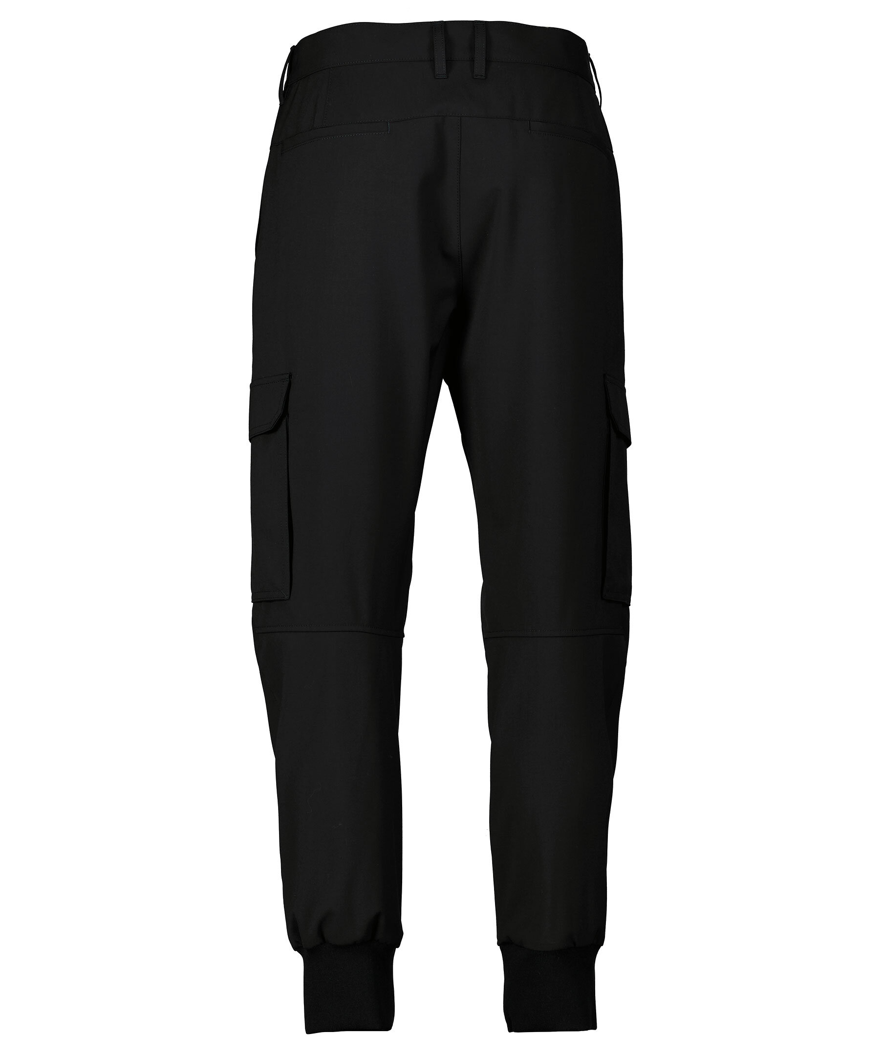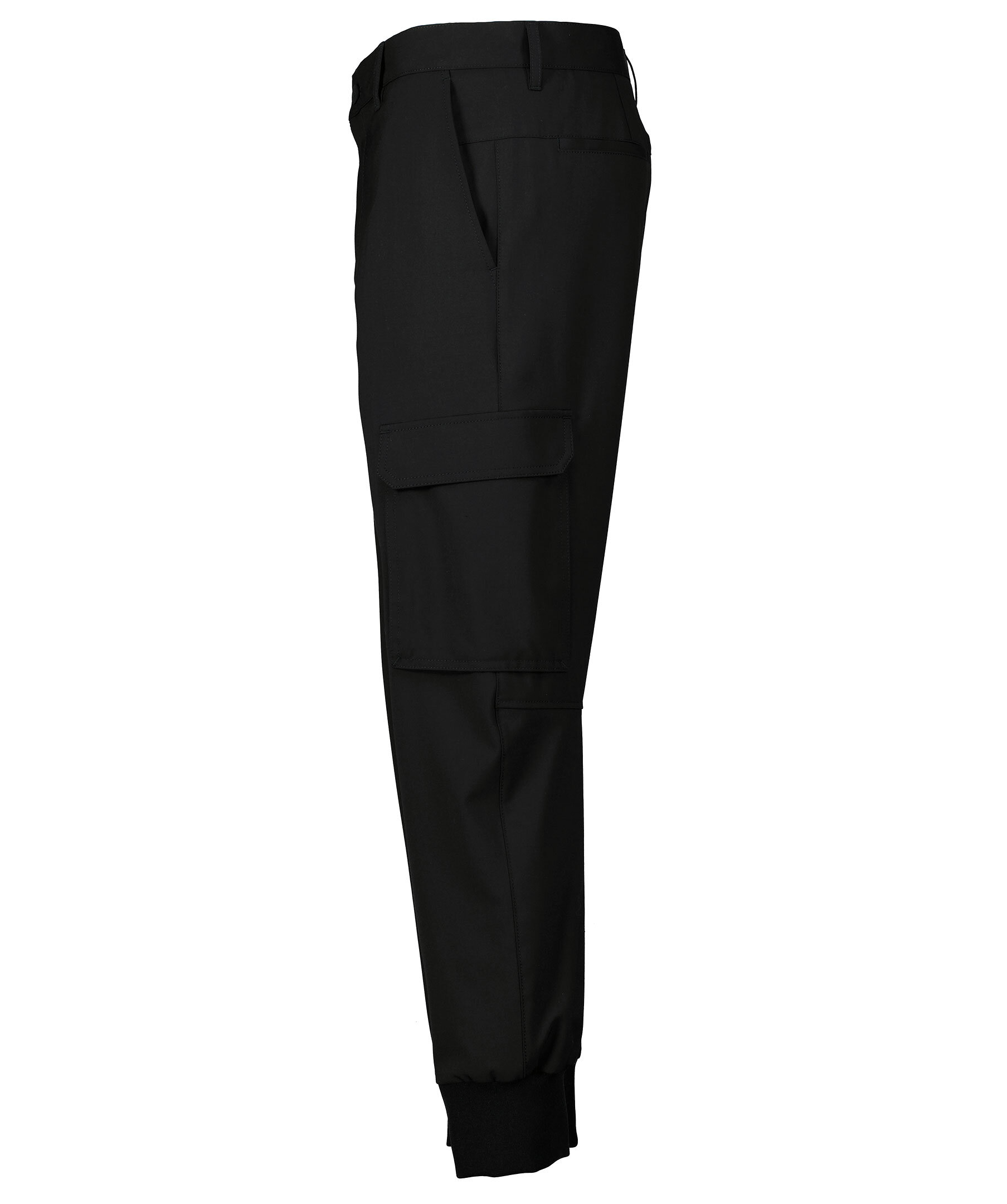 Svarta Cargobyxor från Hugo, Hugo Boss. Byxorna har avsmalnade ben med elastisk mudd i benslut och har en något dressad look. Två stora fickor på vardera lår, två snedställda framfickor och två bakfickor. Stängs med knapp och dragkedja och har hällor för skärp. tillverkade i polyesterblandning. *Cargobyxa *Sex fickor *Gylf med dragkedja och knapp