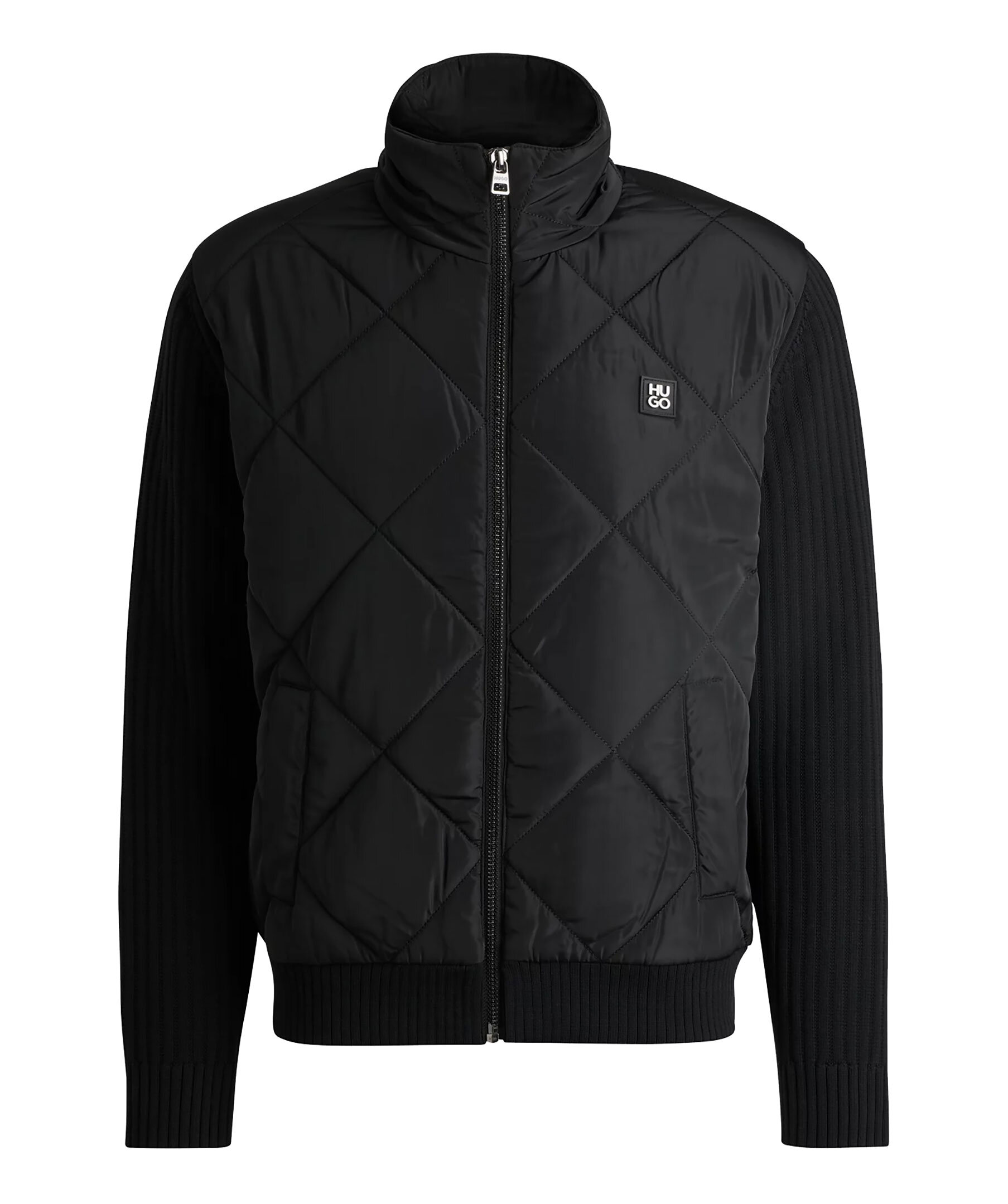 Svart jacka från HUGO. Jackan har en quiltad framsida och en ribbstickad baksida samt ärmar. Jackan stängs med dragkedja och har två sidfickor samt en logotyp på bröstet. Tillverkad i en polyester- och polyamidblandning.