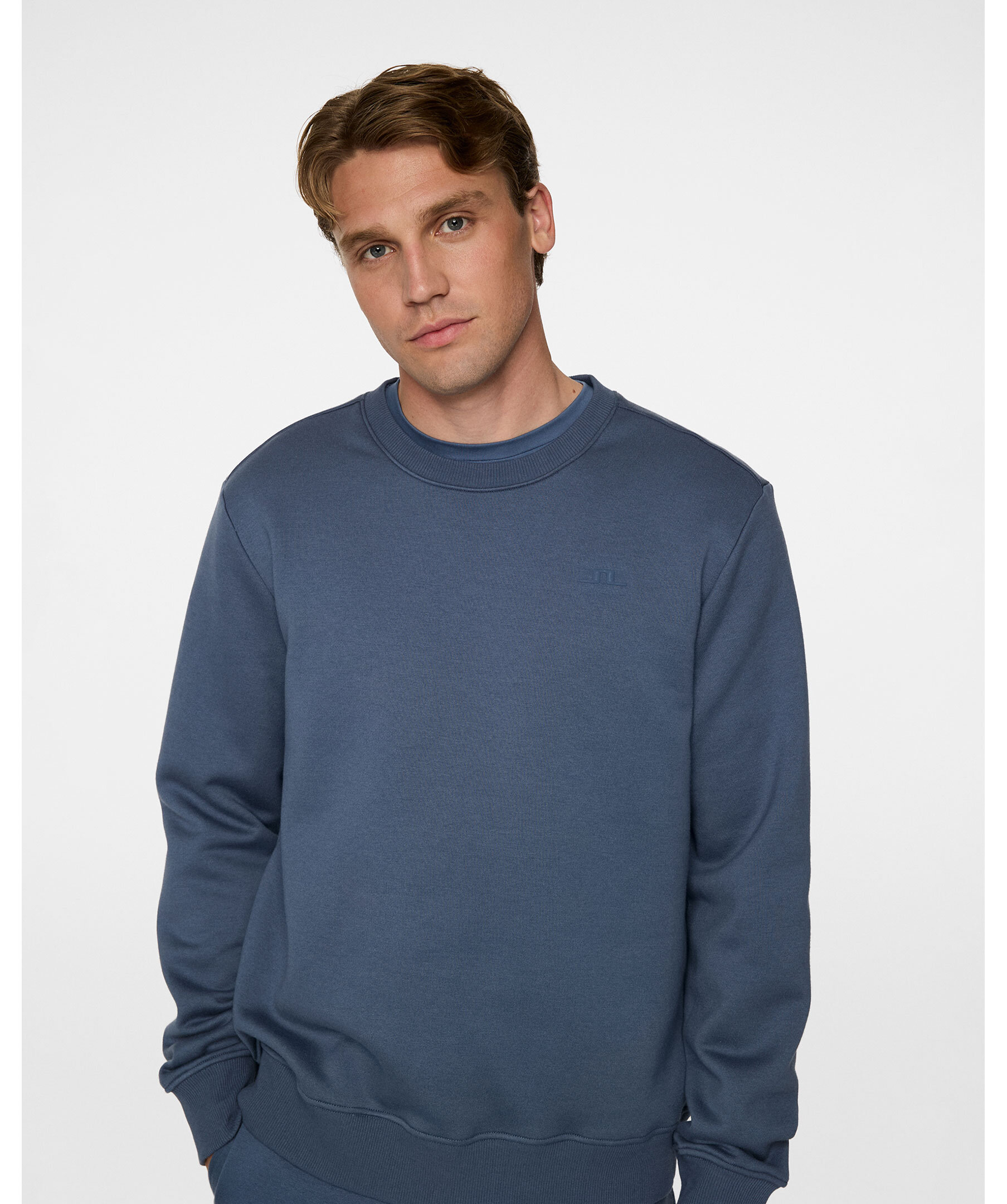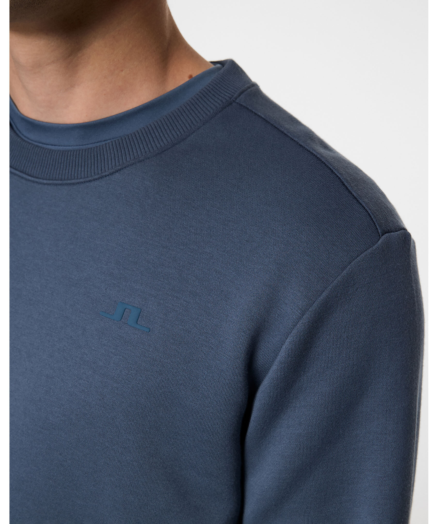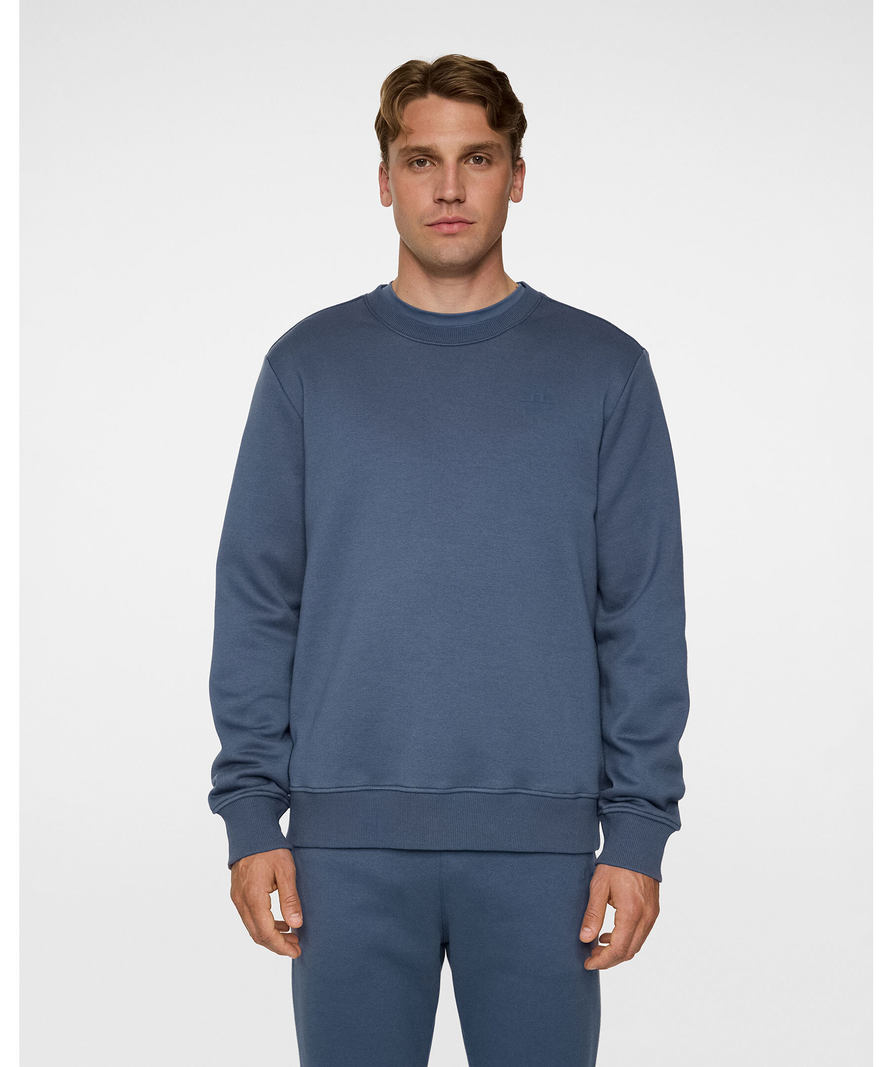 Blå crewneck-tröja från J.Lindeberg med en mjuk och lyxig känsla. Tröjan har en klassisk och avslappnad regular passform, ribbade avslut vid ärmslut, halsringning och nederkant samt en rundad silikonlogo framtill. Insidan är borstad för extra mjukhet och komfort, och tyget har en subtil lyster tack vare mercerisering. En stilren och mångsidig tröja som passar lika bra under kavaj som till jeans.