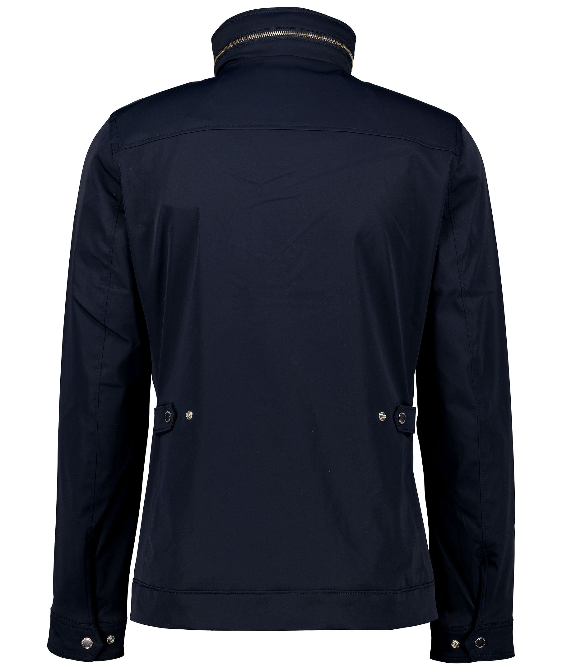 Marinblå vårjacka från J.Lindeberg. Tillverkad i polyester och har en dold luva i kragen som stängs med dragkedja. Vattenavvisande material, stängs med tvåvägsdragkedja och har tryckknappar över dragkedjan. Logga i metall på vänster ärm, dubbla bröstfickor med ficklock och tryckknapp, två sidofickor med dold dragkedja samt två innerfickor med dragkedja. Tryckknappar som justerar storleken på ärmslutet. *Vattenavvisande material *Logga i metall *Dold luva i kragen