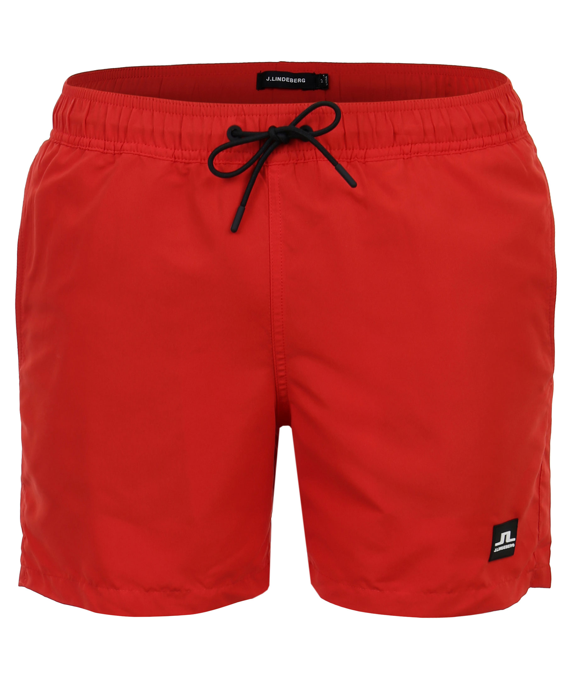 Röda badshorts från J. Lindeberg. Knyt i midjan, tre fickor samt logotyp på vänster byxben.