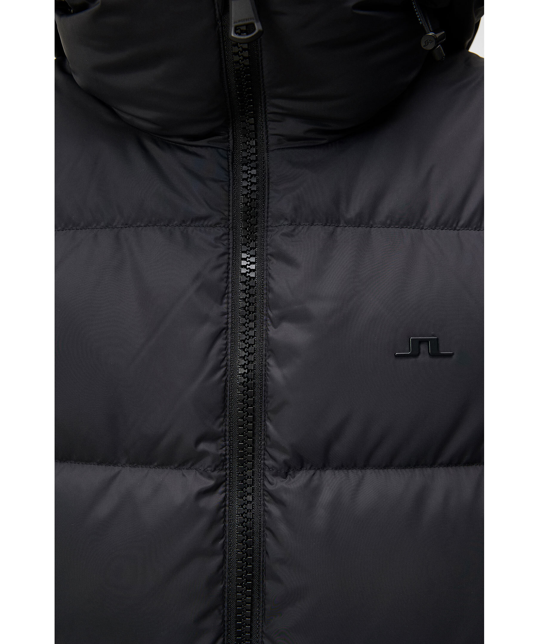 Svart quiltad dunjacka från J Lindeberg. Stängs framtill med tvåvägsdragkedja. Två fickor framtill fodrade med fleece. Luva med dragsko. Logotyp i metall på vänster bröst. Resår vid ärmslut.
