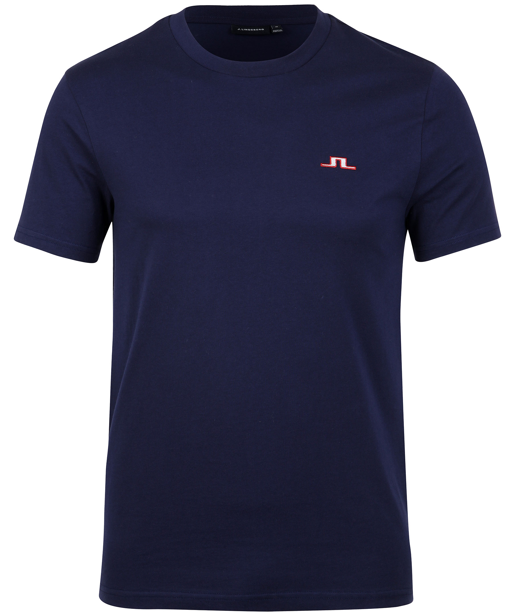 Marinblå t-shirt från J.Lindeberg tillverkad i mjuk bomull. Ribbstickad halsring och broderad logotyp på bröstet.