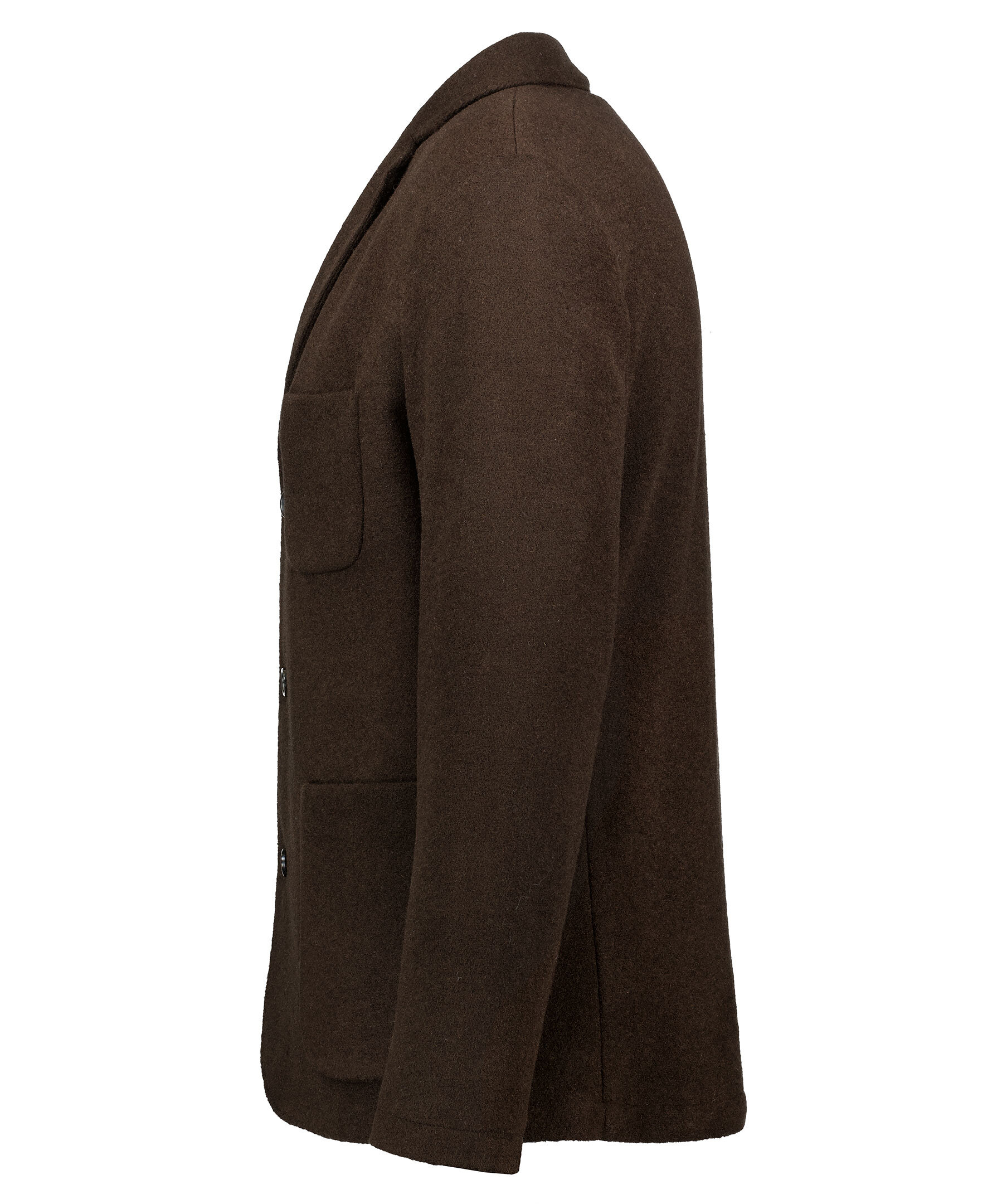 Mörkbrun kavaj från J.Lindeberg är gjord i en lättviktig ullblandning. Trubbiga slag, en innerficka, två framfickor och en bröstficka. Normal passform och knäpps med knappar framtill. Ofodrad.