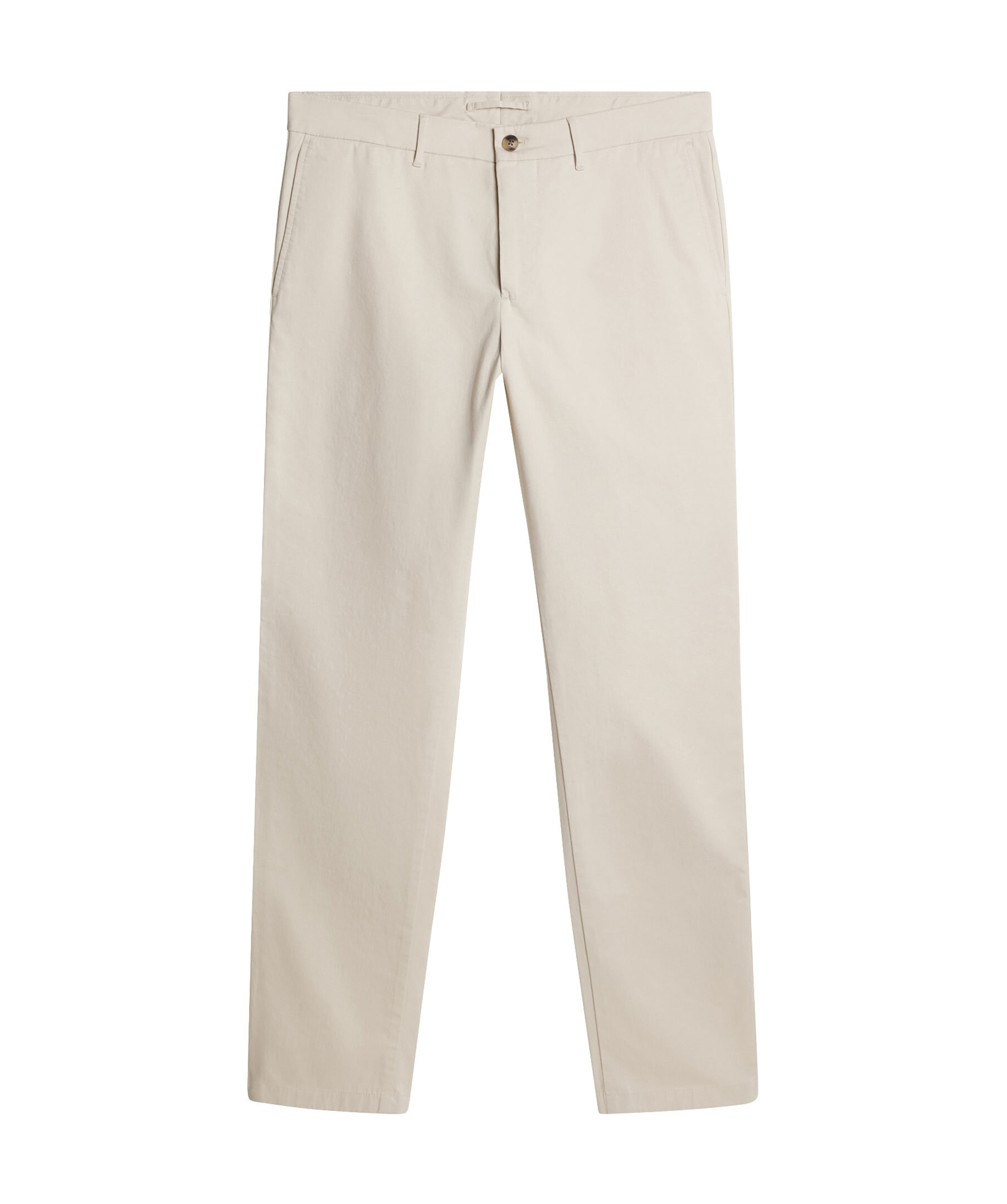 Beiga chinos från J Lindeberg. Byxorna har öppna sidofickor, bälteshällor samt passpoalfickor bak med knapp. Stängs med gylf och knapp. Tillverkad av en bomullsblandning.