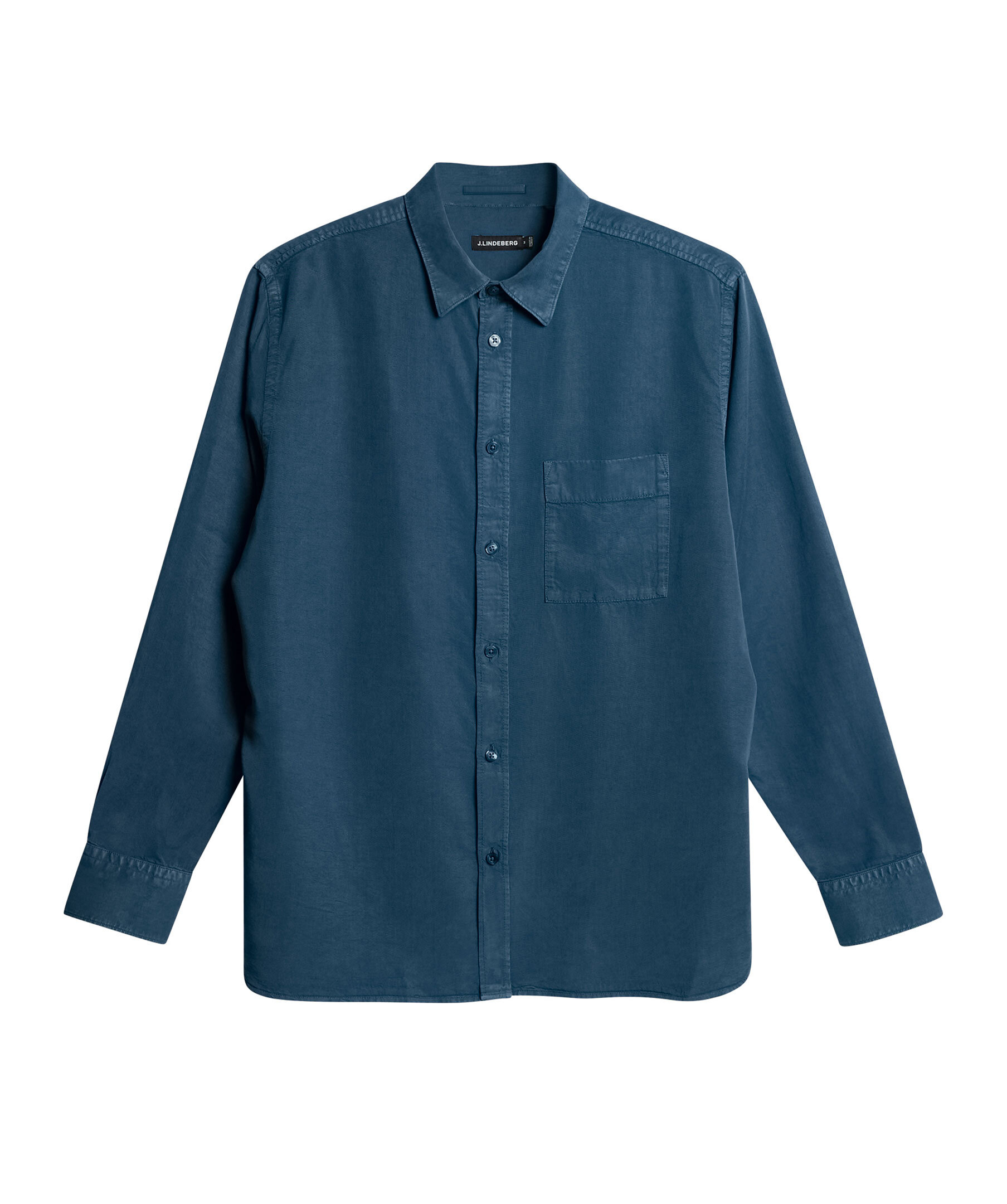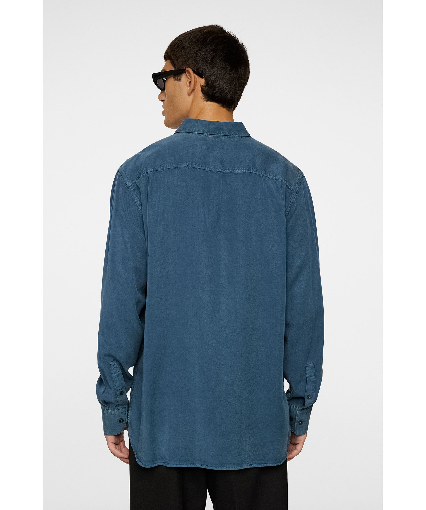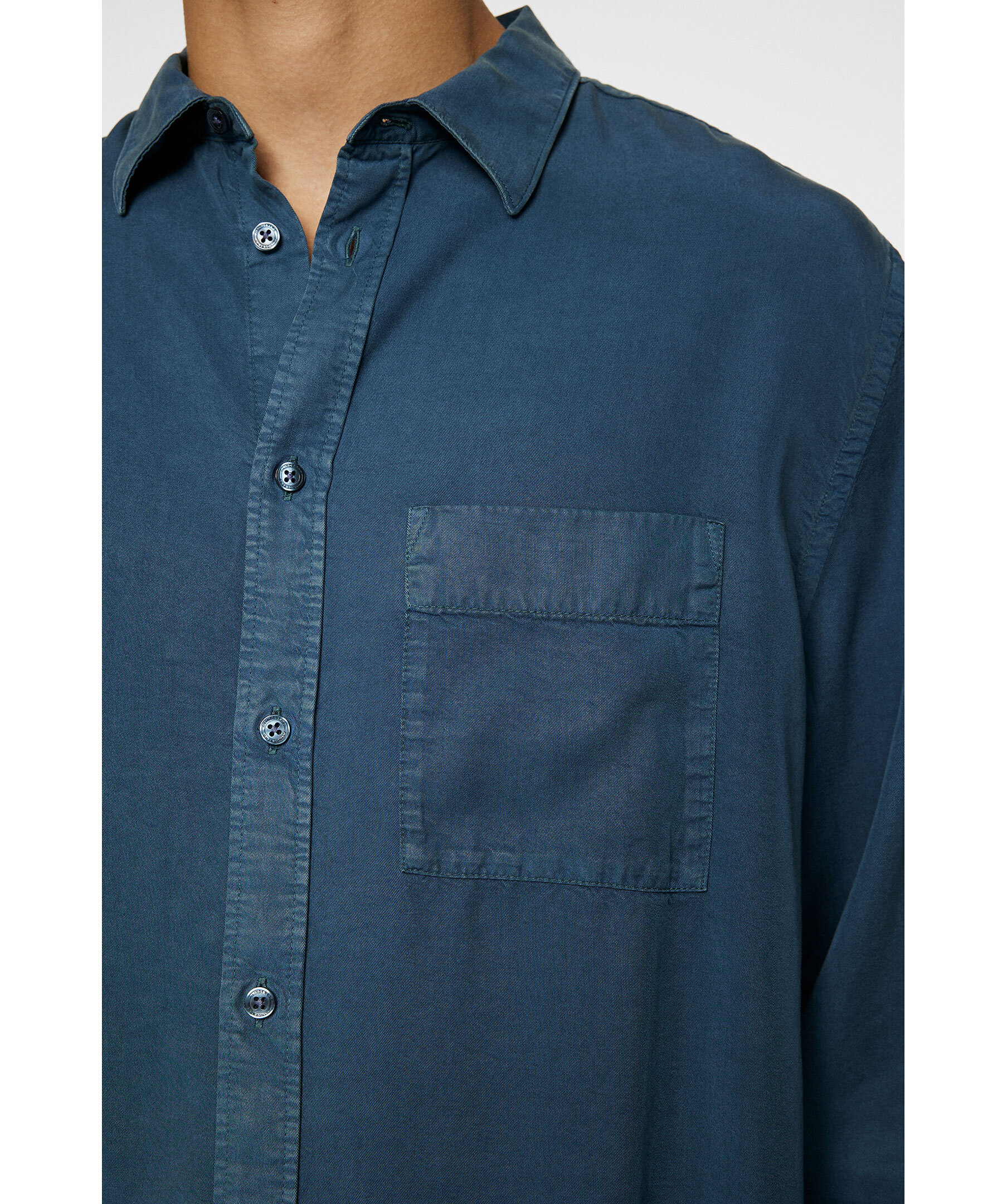 Blå tencelskjorta från J Lindeberg. Button-down krage, bröstficka samt tonat broderi på nederkanten framtill. Tillverkad i lyocell.