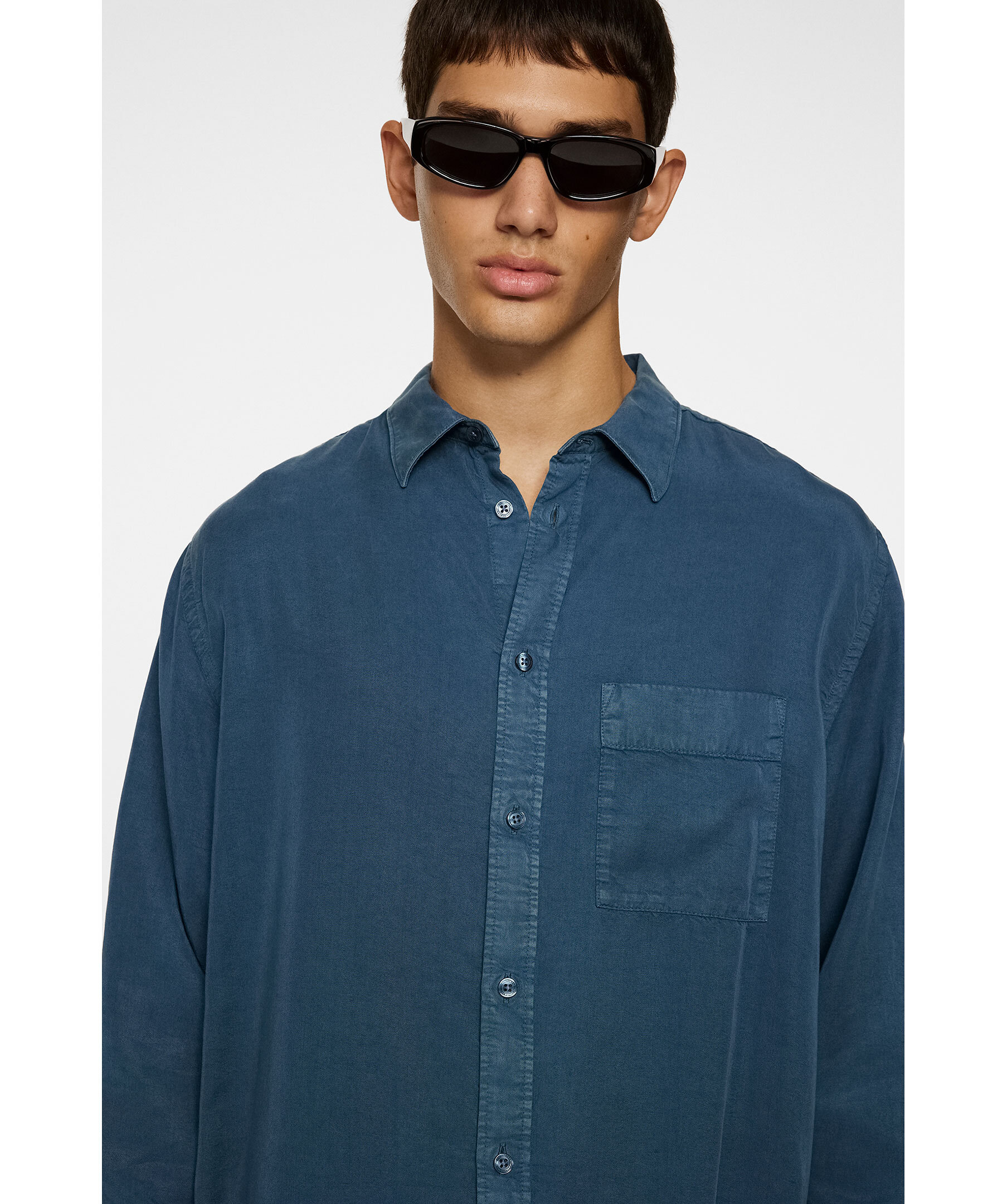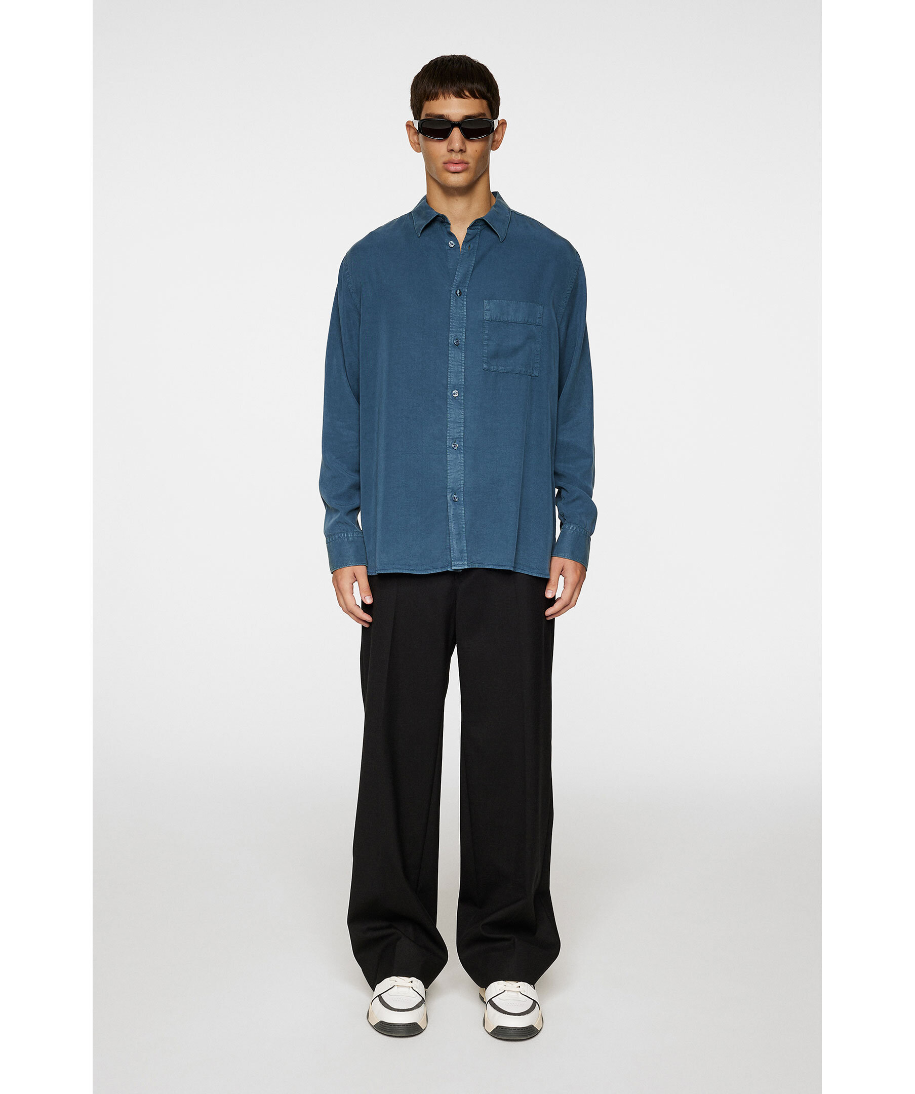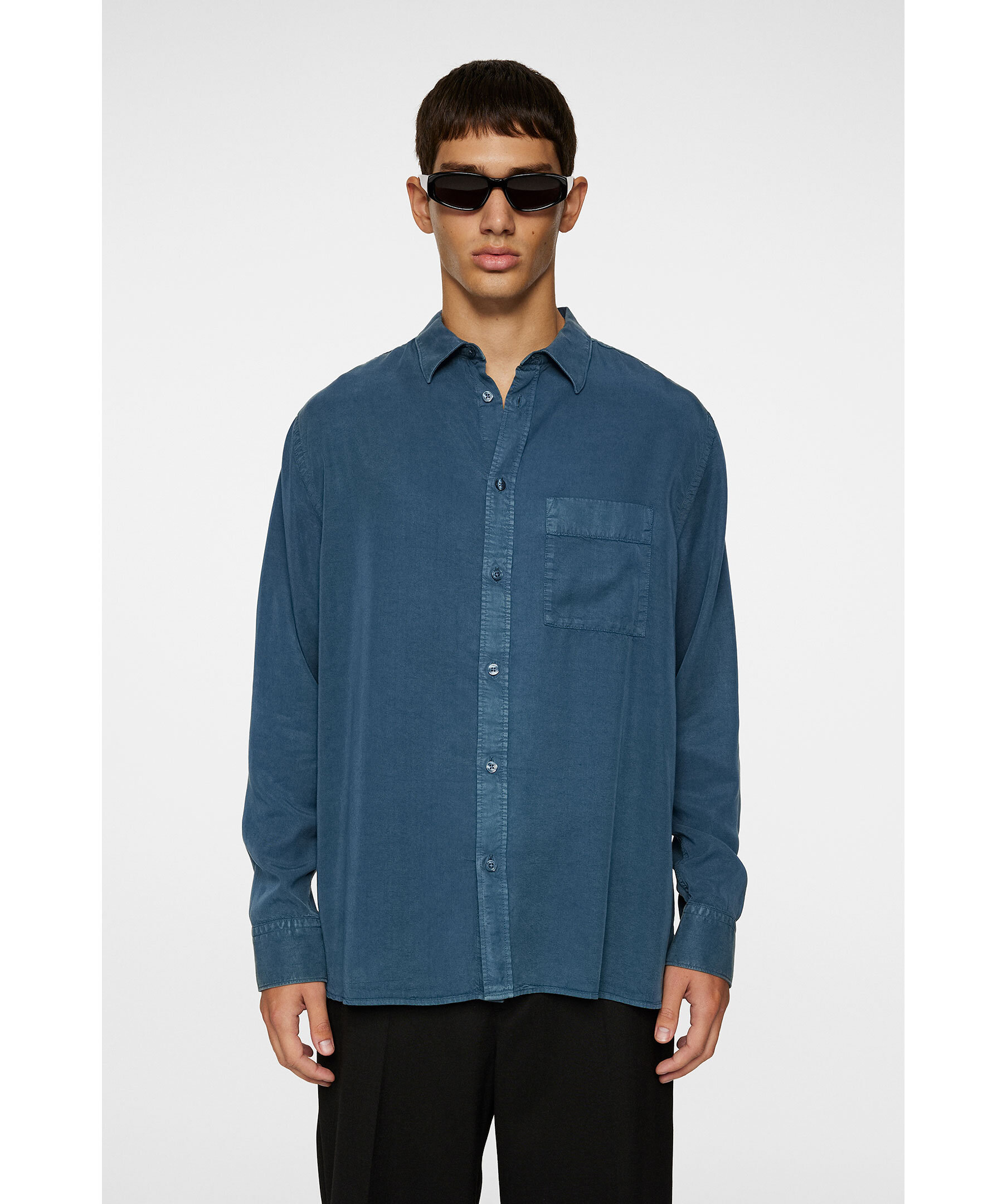 Blå tencelskjorta från J Lindeberg. Button-down krage, bröstficka samt tonat broderi på nederkanten framtill. Tillverkad i lyocell.