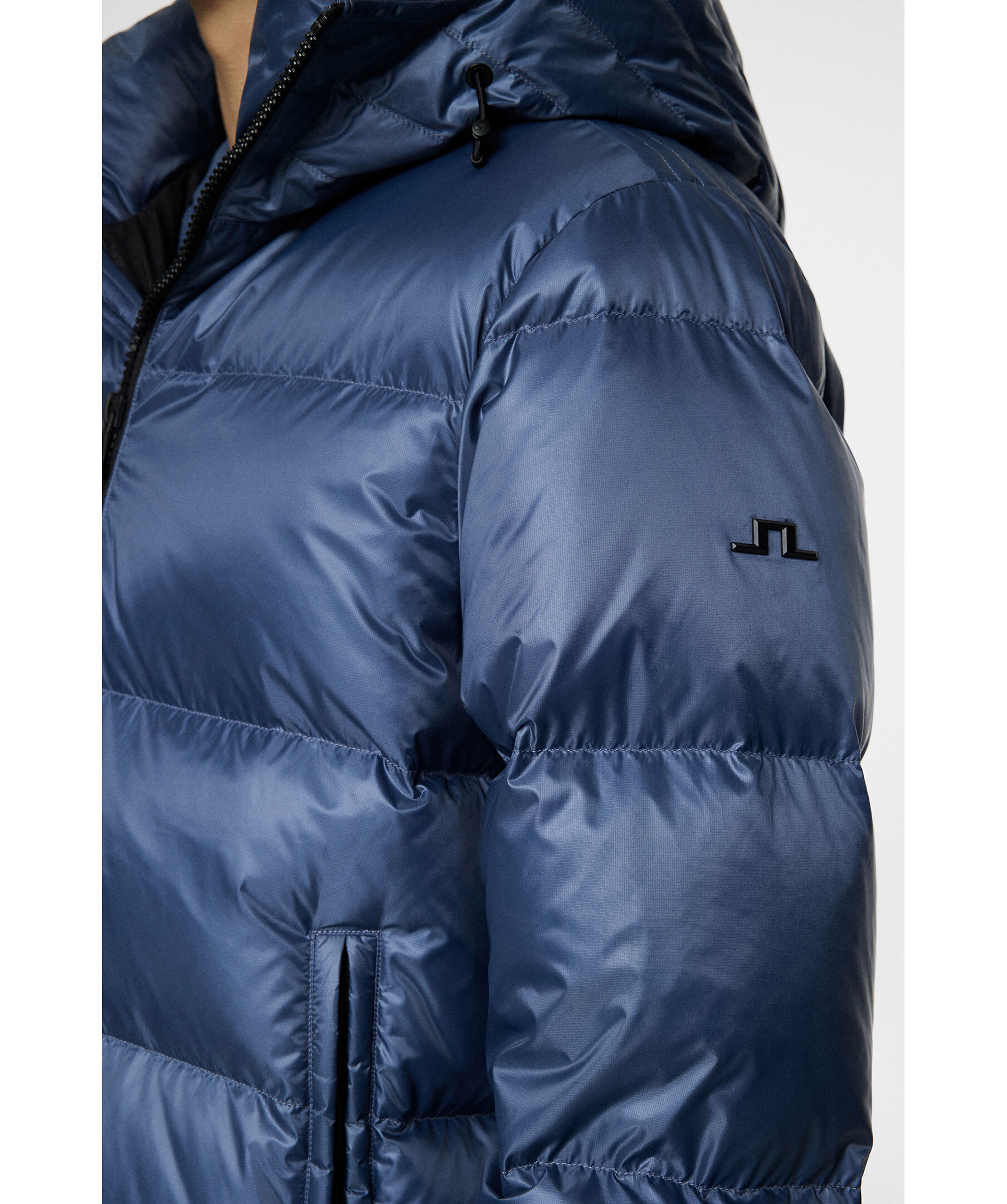 En mångsidig och isolerande dunjacka från J.Lindeberg. Gjord i återvunnen polyester med PFC-fri vattenavvisande yta. Jackan har värmande 600 FP ankdun (80/20), fleecefodrade handfickor, tvåvägsdragkedja och justerbara dragskor i huva och fåll.