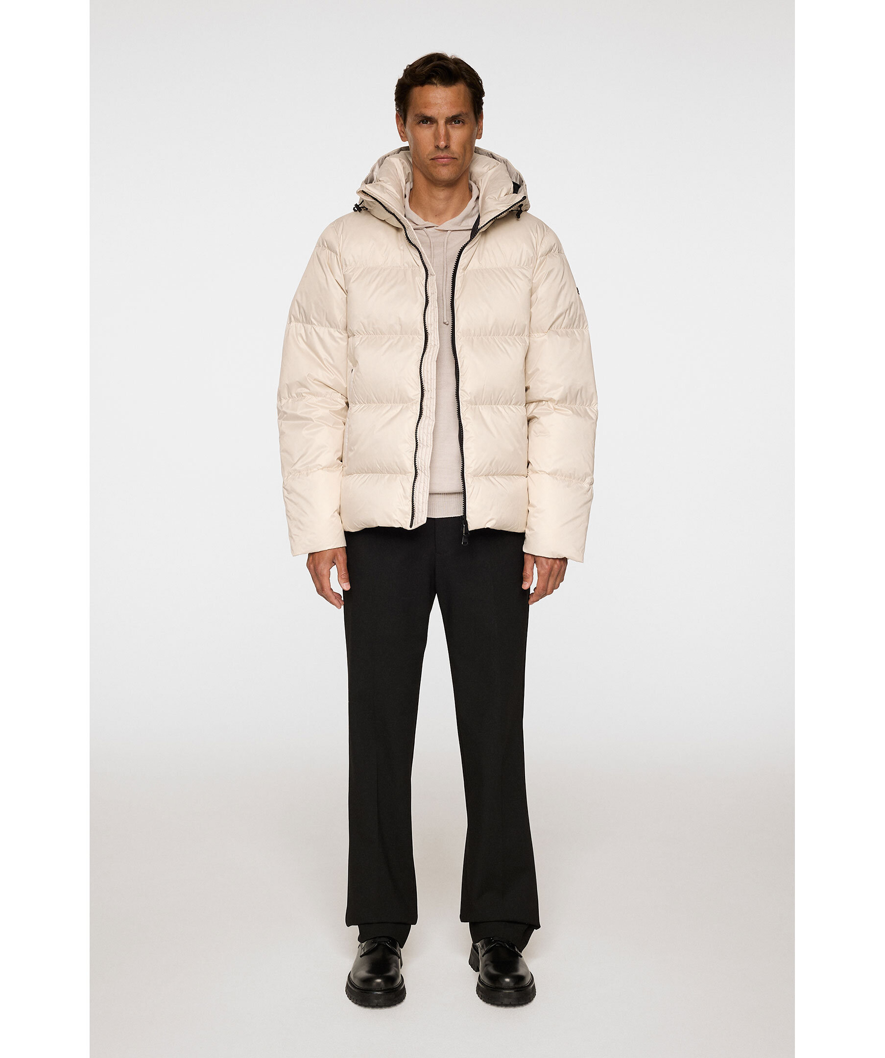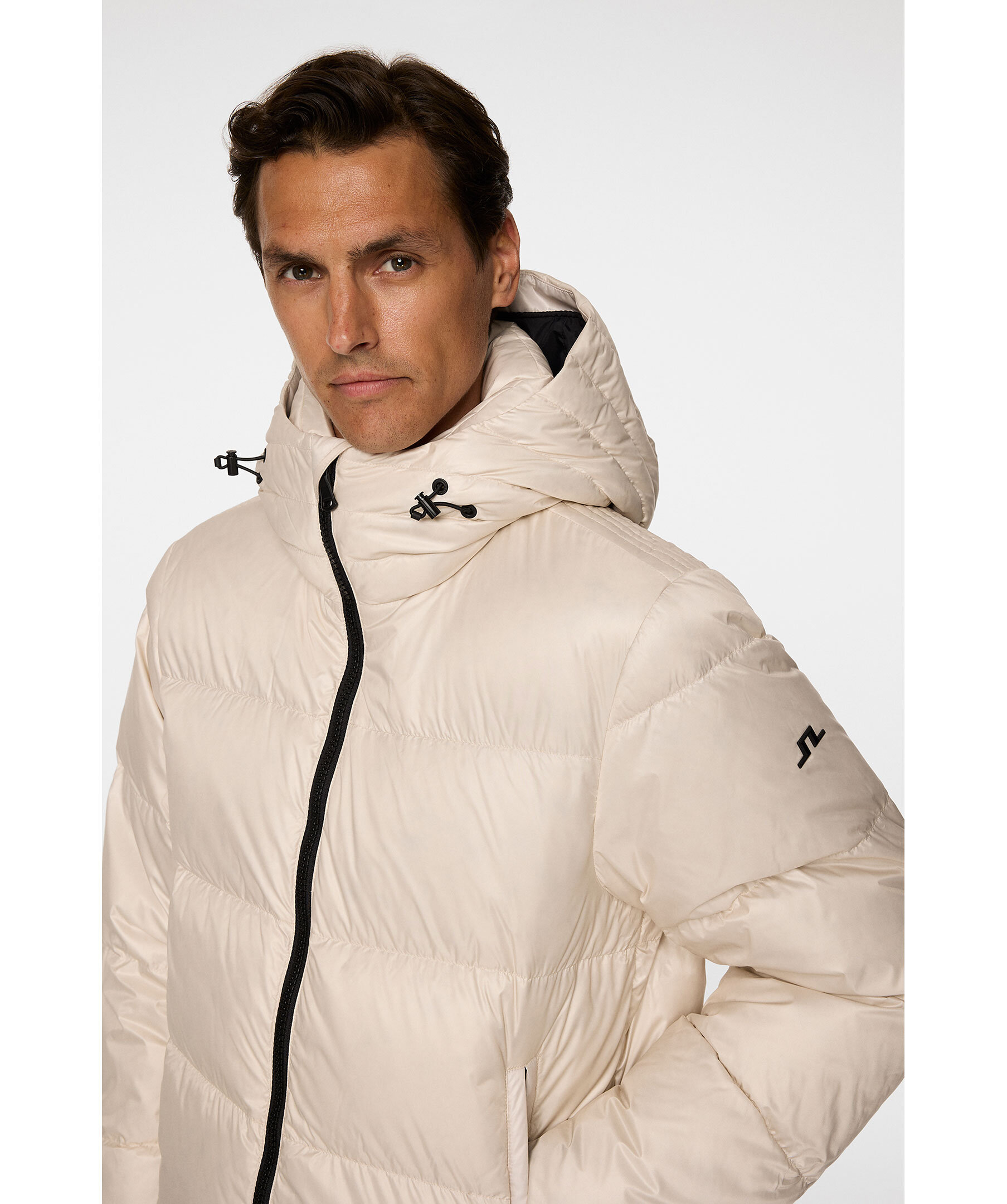 En mångsidig och isolerande dunjacka från J.Lindeberg. Gjord i återvunnen polyester med PFC-fri vattenavvisande yta. Jackan har värmande 600 FP ankdun (80/20), fleecefodrade handfickor, tvåvägsdragkedja och justerbara dragskor i huva och fåll.
