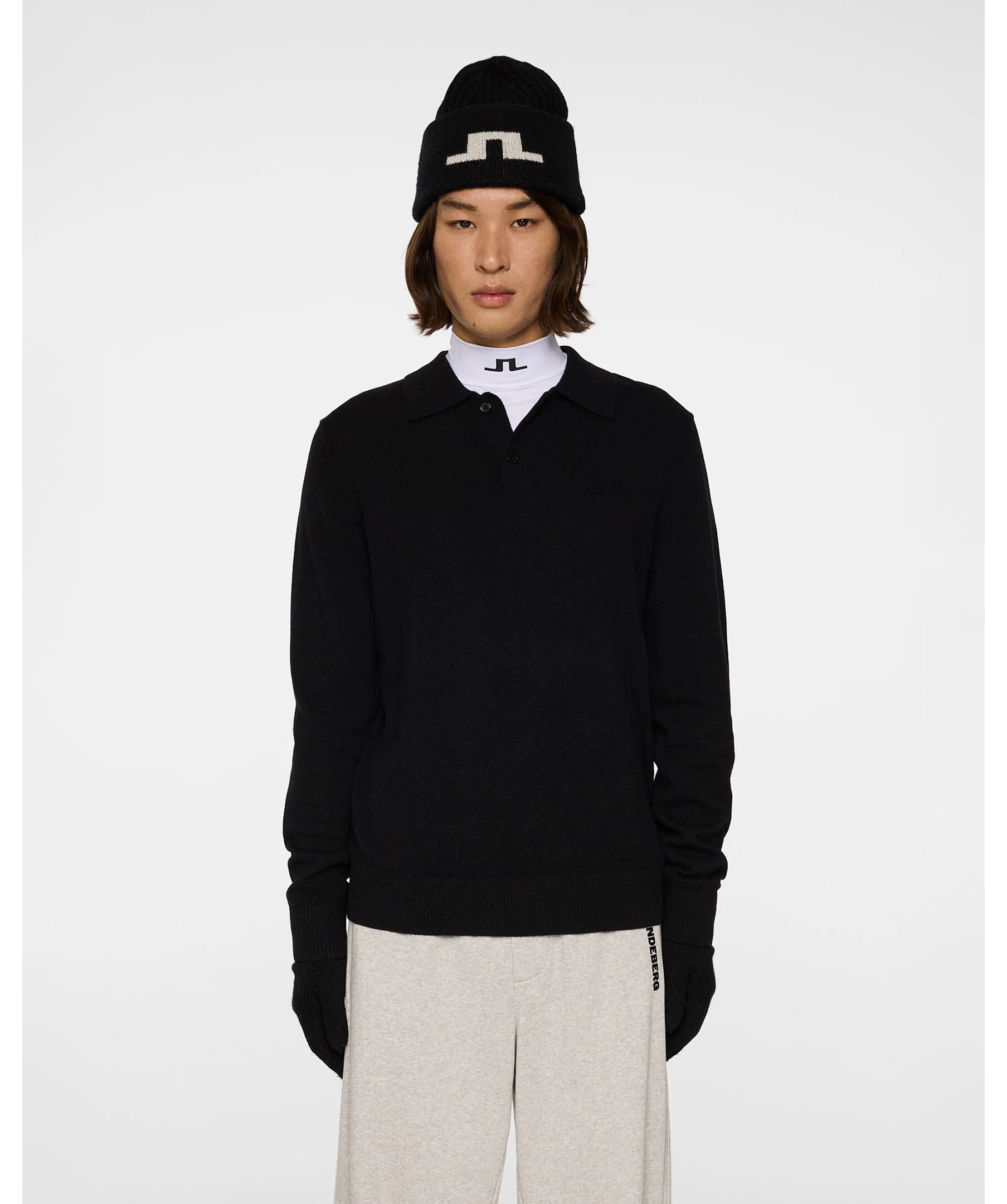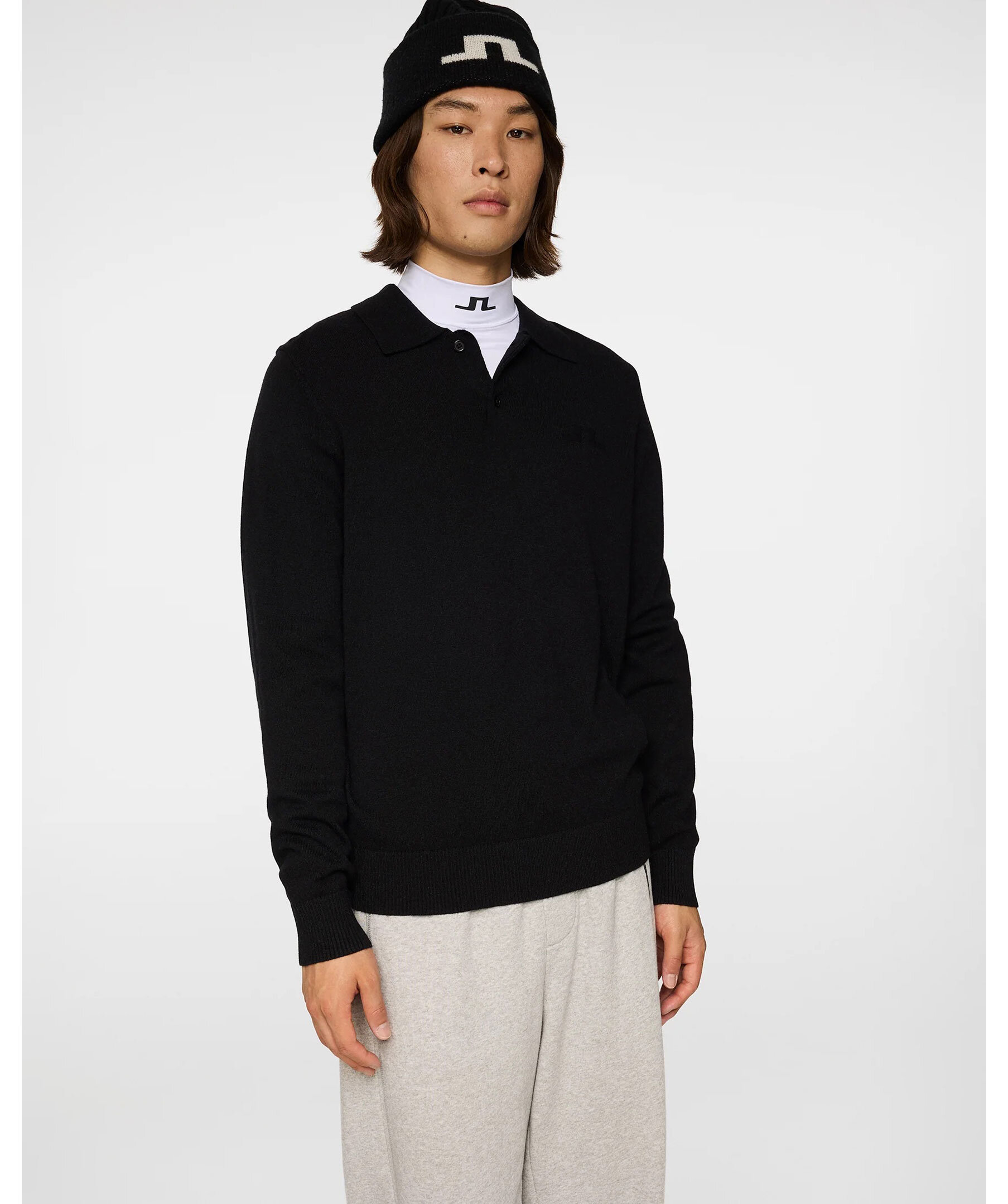 Stickad tröja från J.Lindeberg i ull- och viskosblandning. Tröjan har en flatstickad krage, ribbade avslut, slå med 2 knappar och en omvänd Bridge-logga för en subtil, elegant detalj.