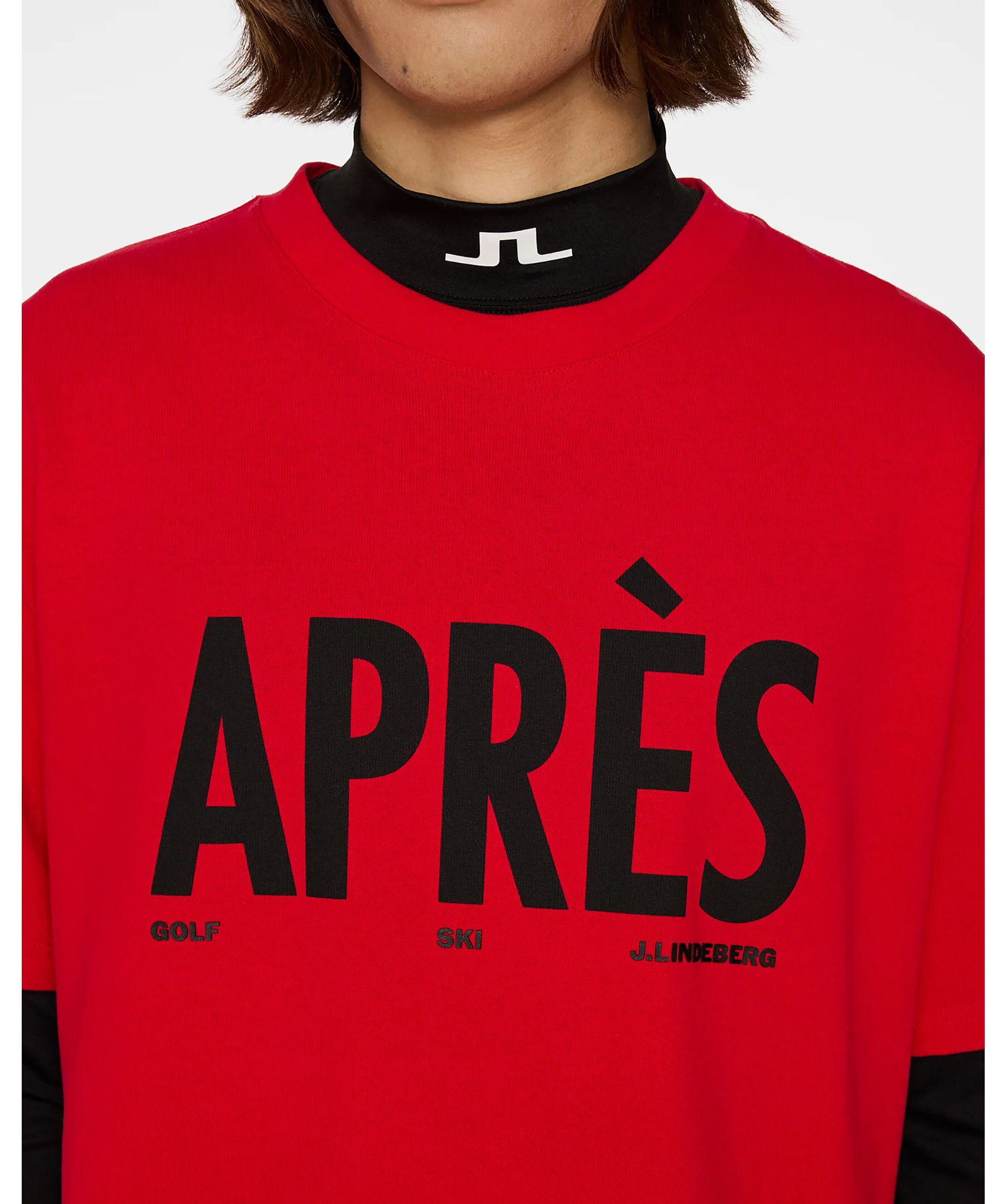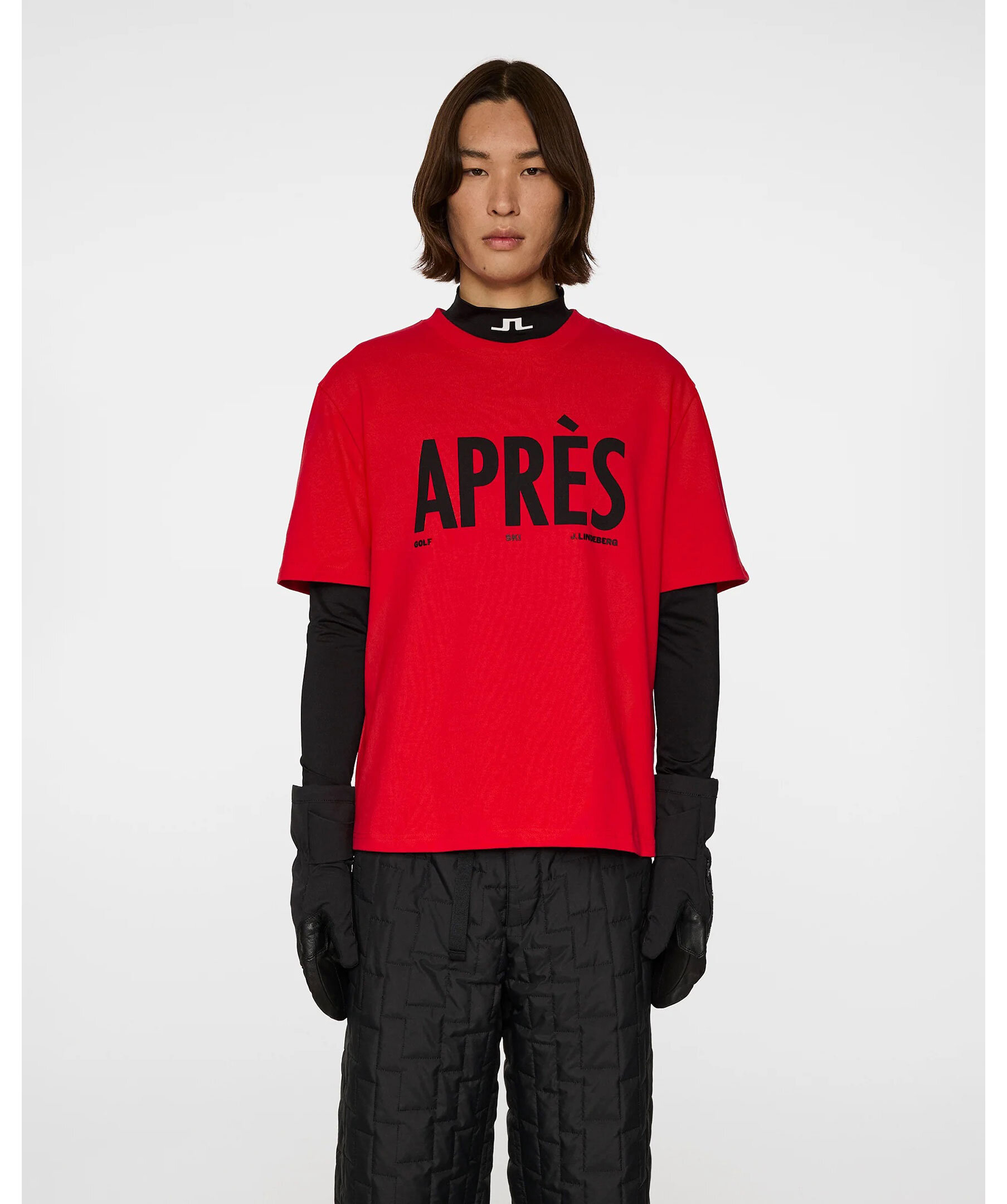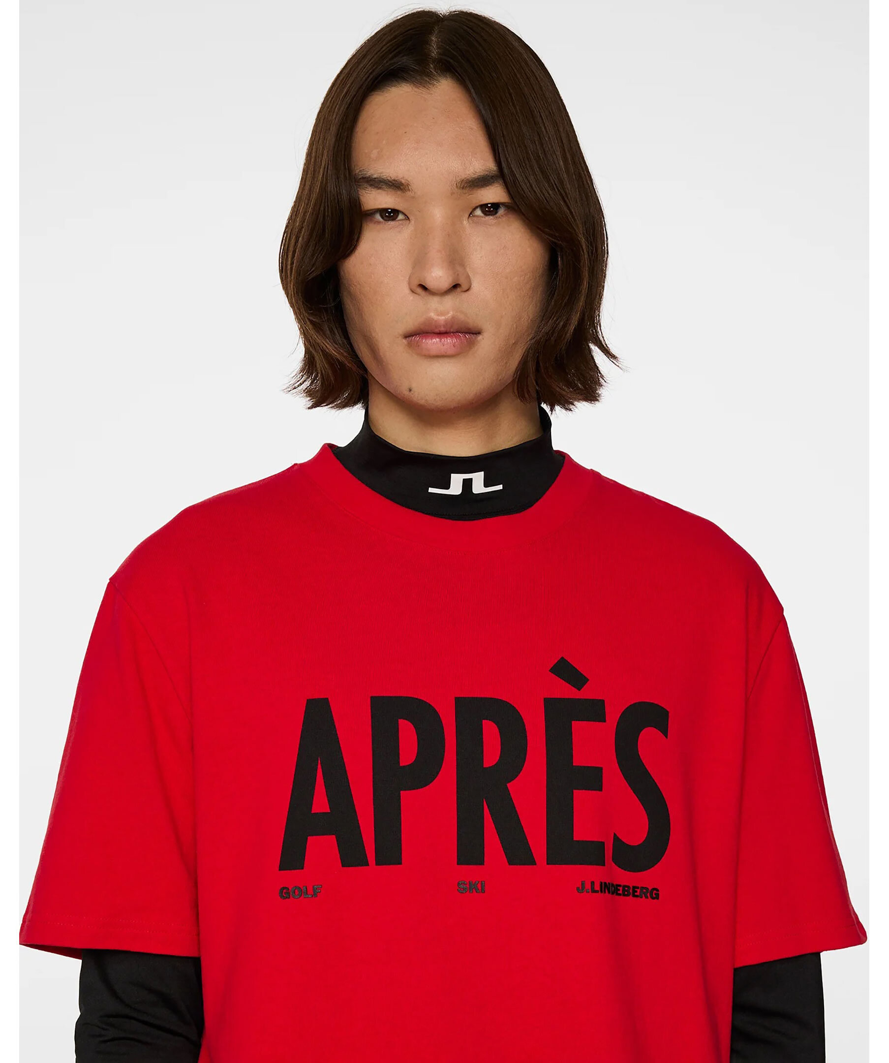 Hale T-shirt från J.Lindeberg är tillverkad av kraftig ekologisk bomull och har ett djärvt säsongsbetonat logotyptryck som fångar energin i Après-kollektion. Dess avslappnade passform och strukturerade ribbstickade krage ger en modern silhuett.