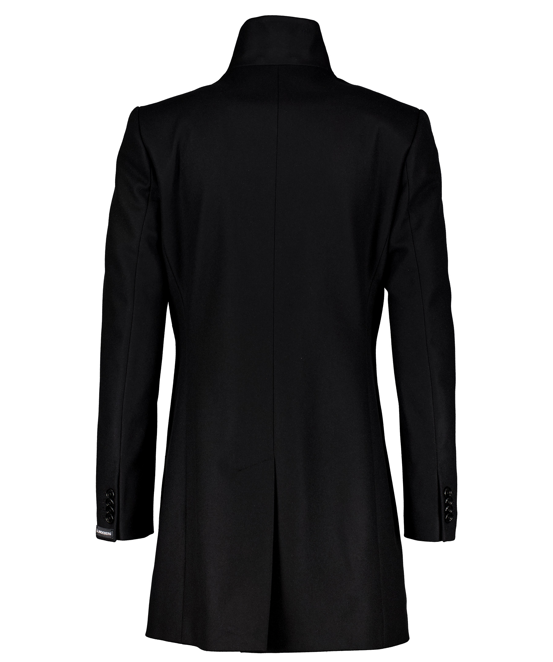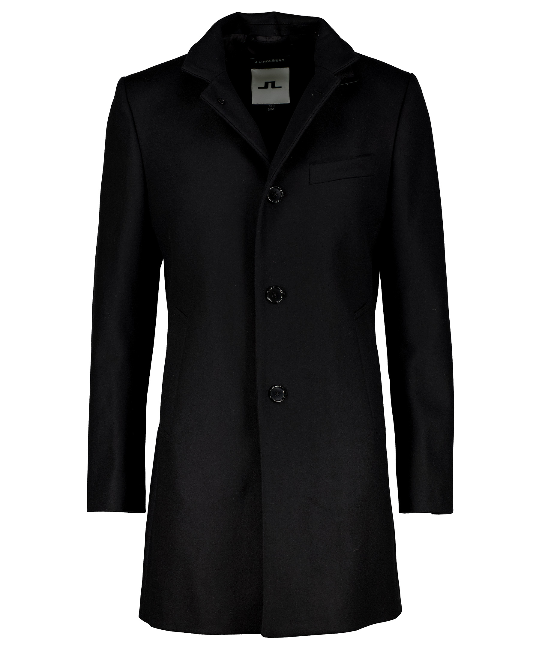 Svart lång rock i ullmix med krage från J.Lindeberg. Rocken stängs med 4 svarta knappar, har två snedställda framfickor, 1 bröstfickor och 2 innerfickor. Snyggt spänne att knäppa kragen med och fyra knappar vid vardera ärmslut.