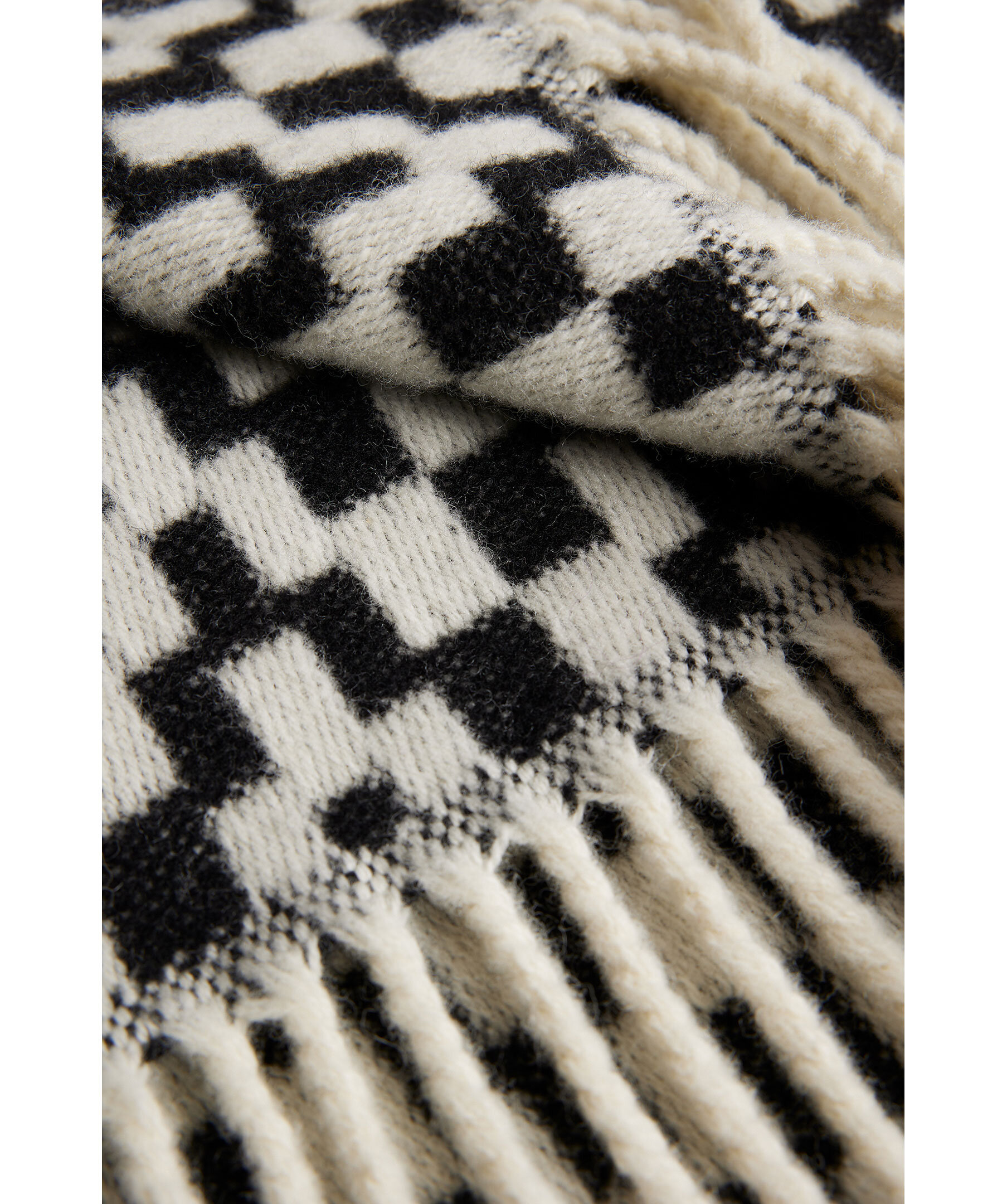Mönstrad halsduk från J.Lindeberg. Halsduken är gjord med dubbelsidig jacquardvävning och RWS-ull. Mått: 30 x 200 cm.