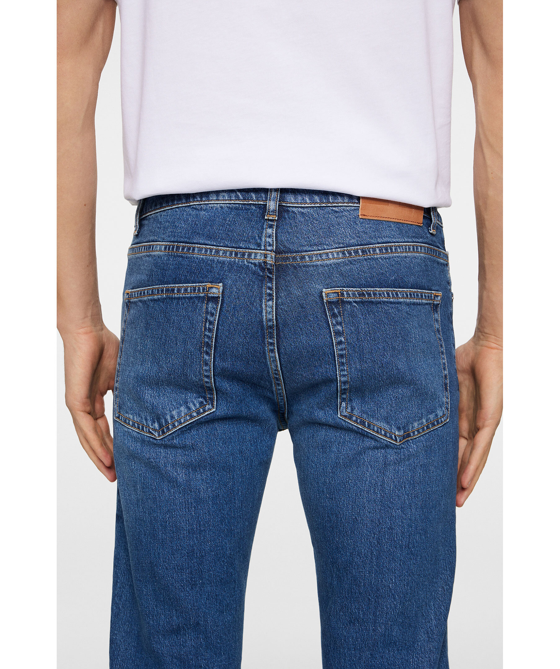 Blåa jeans från J Lindeberg. Jeansen har bälteshällor i midjan, fem fickor och lädermärke baktill på linningen. Tillverkade i en bomullsblandning.