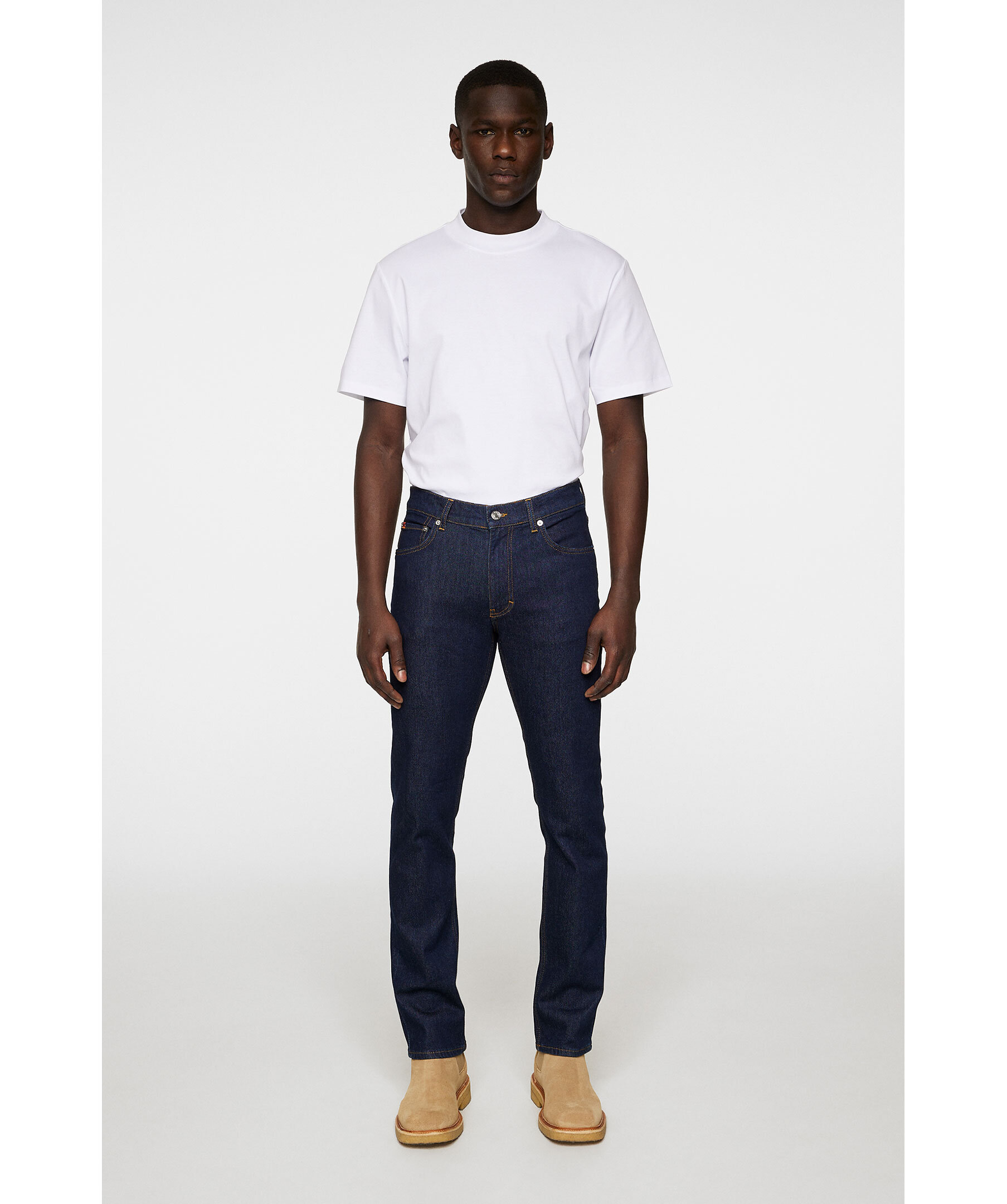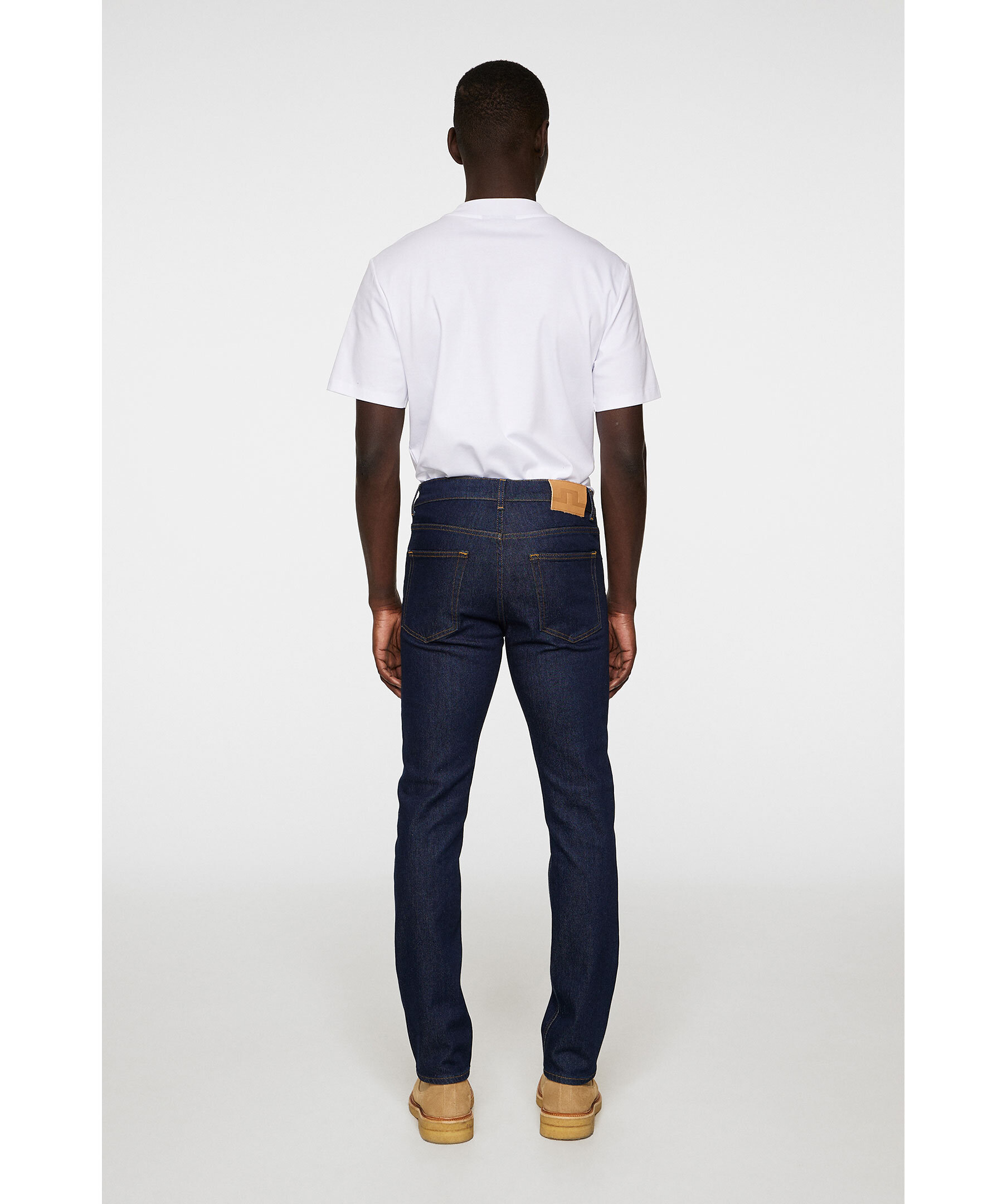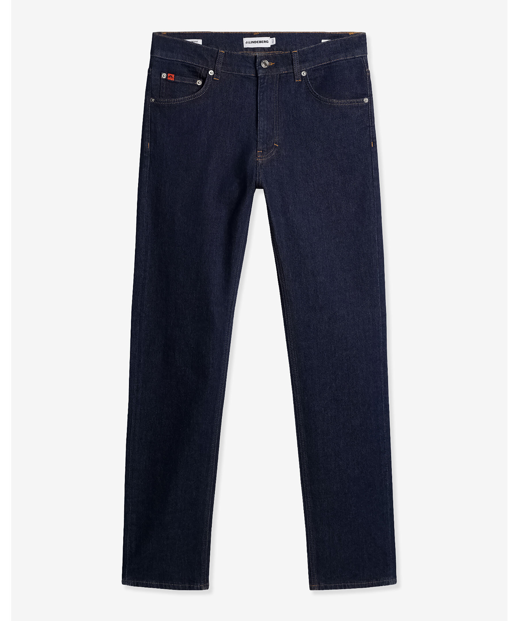 Mörkblå jeans i en slimmad, stretchig modell från J.Lindeberg. Jeansen har en snabbsköljd finish som skapar en ren och polerad look. Det hållbara bomullsmaterialet kombinerar komfort med stil, komplett med Jacron-patch baktill, vävd logga på myntlommen och gylf med dragkedja."