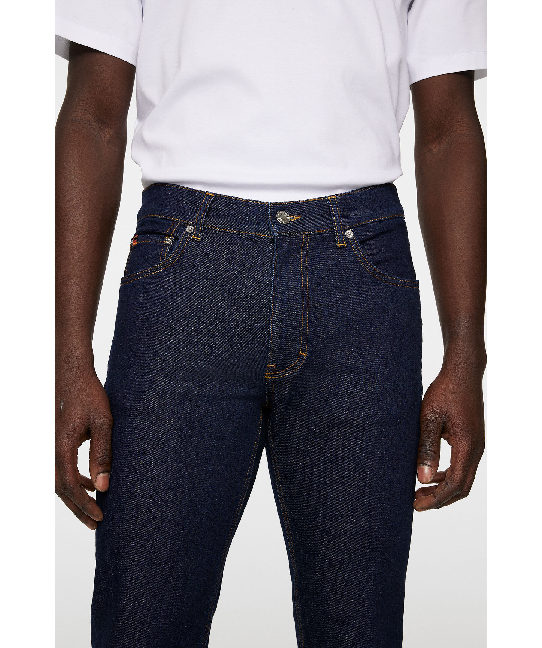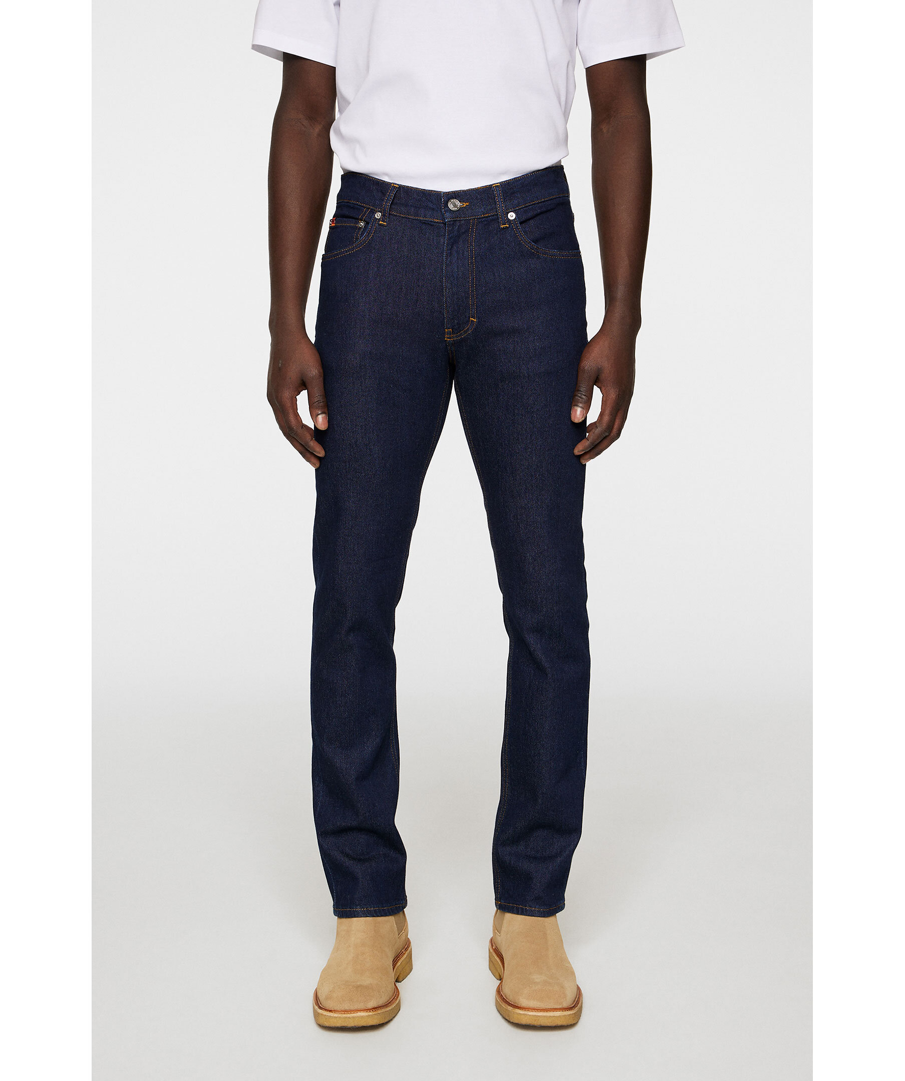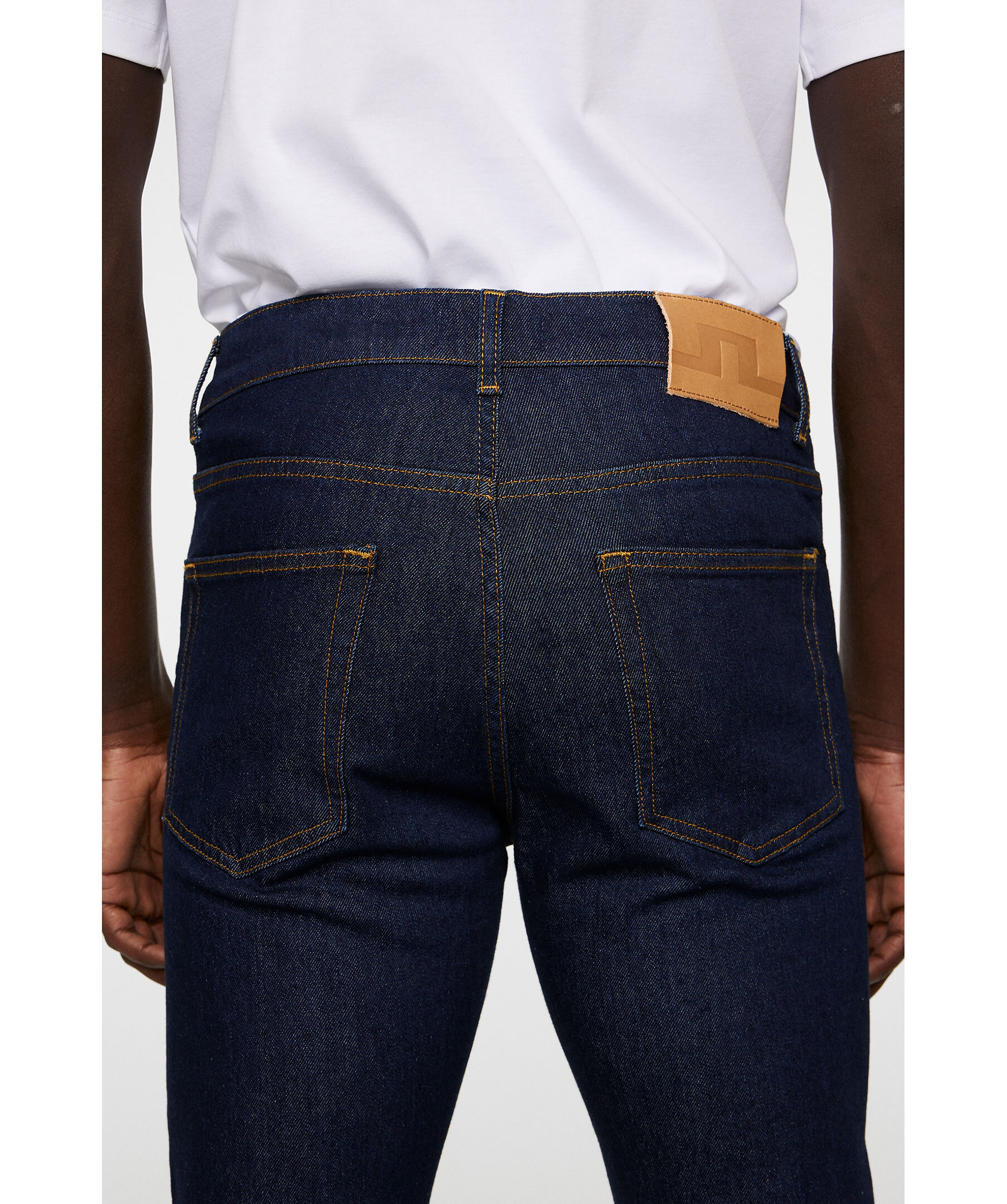 Mörkblå jeans i en slimmad, stretchig modell från J.Lindeberg. Jeansen har en snabbsköljd finish som skapar en ren och polerad look. Det hållbara bomullsmaterialet kombinerar komfort med stil, komplett med Jacron-patch baktill, vävd logga på myntlommen och gylf med dragkedja."