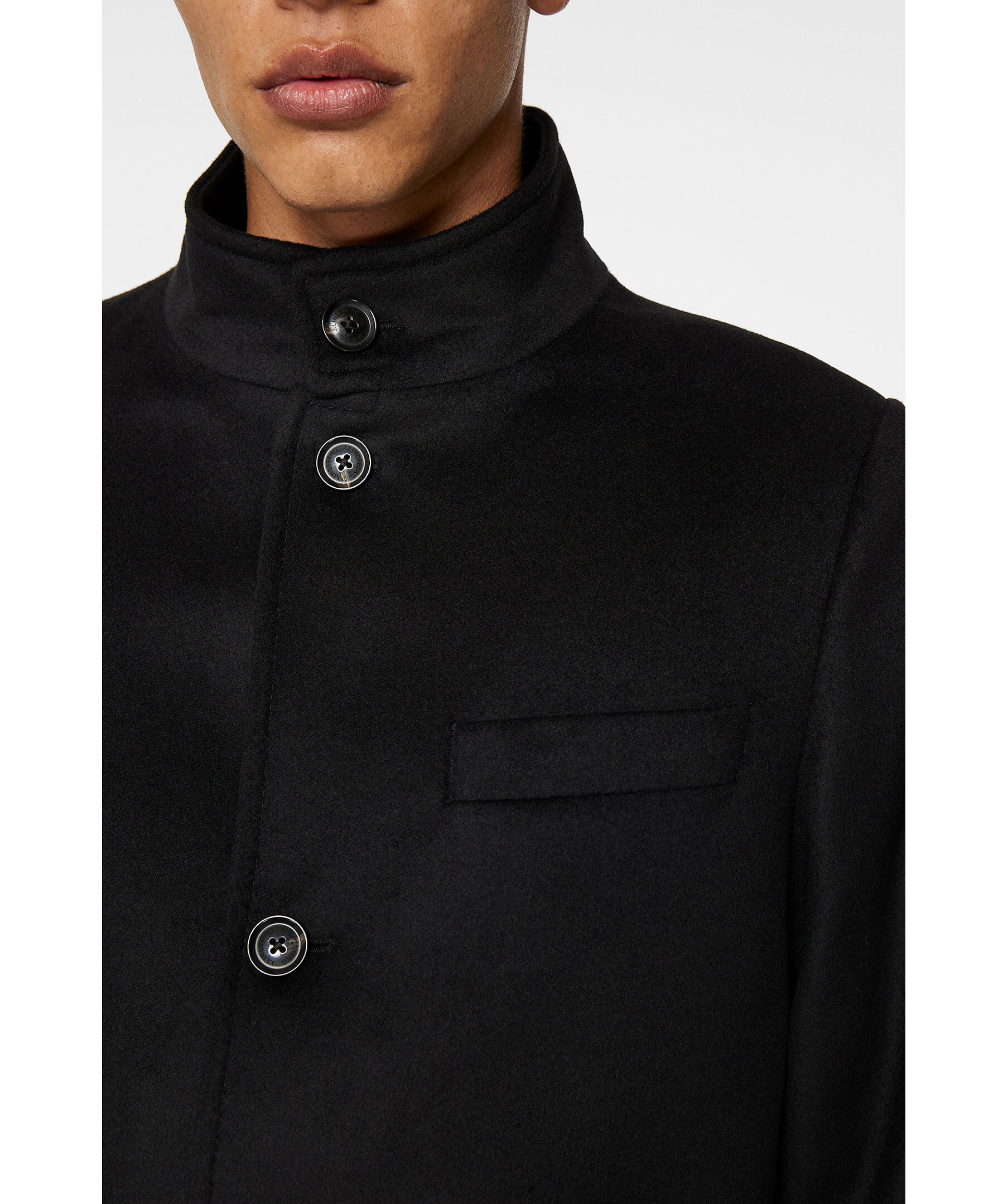 Svart rock från J.Lindeberg. Rocken är tillverkad i en lyxig blandning av ull och kashmir som andas sofistikering och värme. Knappstängningen framtill ger en raffinerad touch medan den helfodrade insidan säkerställer komfort och slitstyrka. Den är skuren i standardpassform som har en smickrande effekt på alla siluetter – ett flexibelt plagg för både formellt och casual.