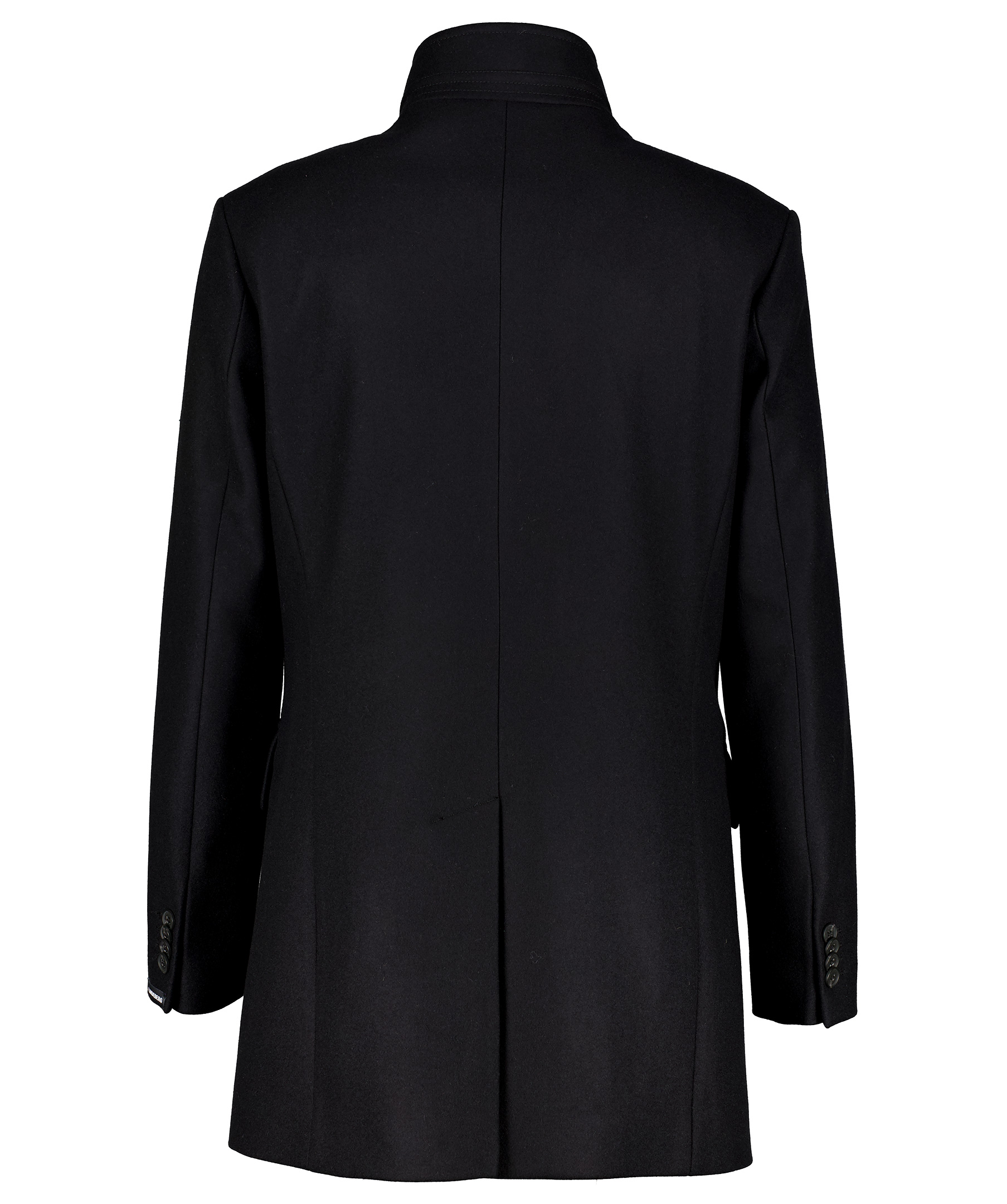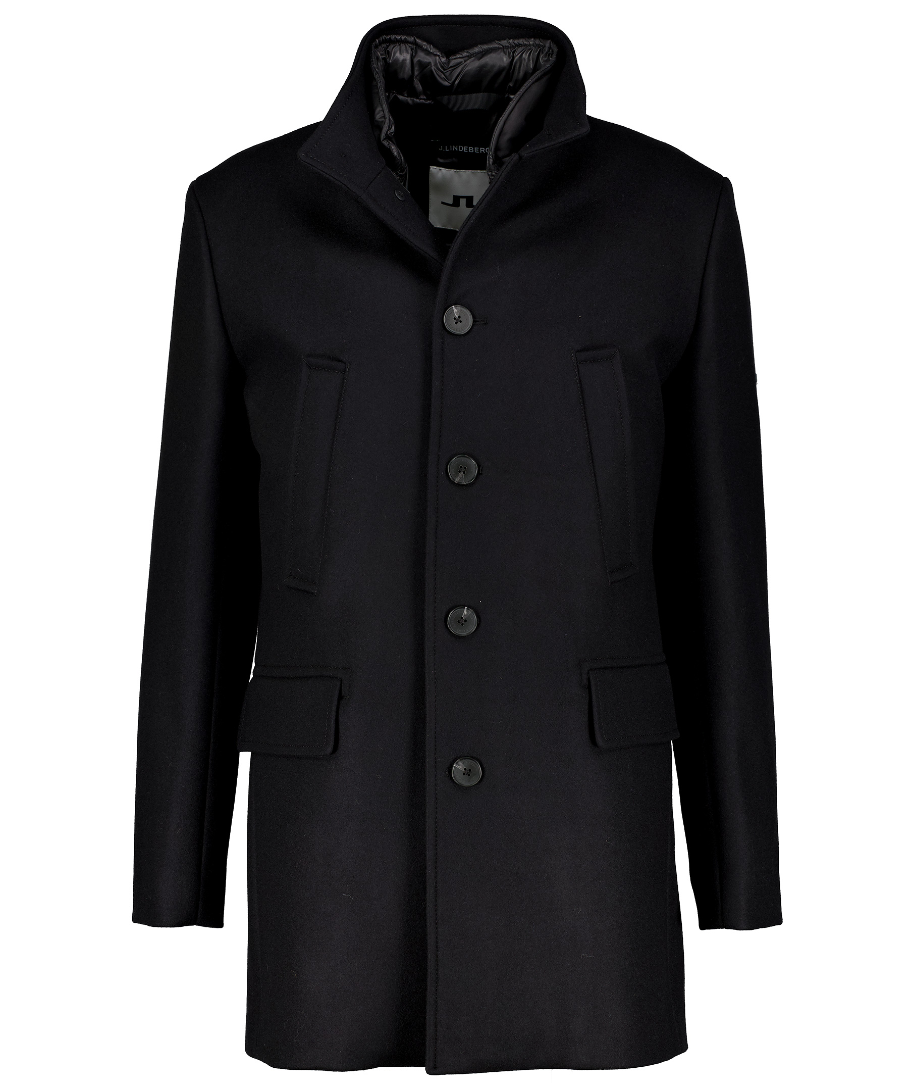 Svart lång rock ullmix med krage från J.Lindeberg. Avtagbar väst i viskos med dragkedja. Västen har två fickor fram och två innerfickor med dragkedja. Jackan stängs med sex knappar, har två framfickor med ficklock, 2 bröstfickor och 2 innerfickor.