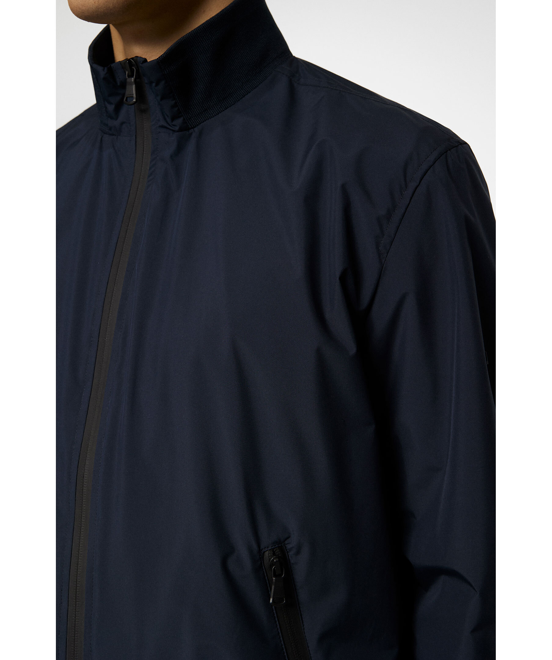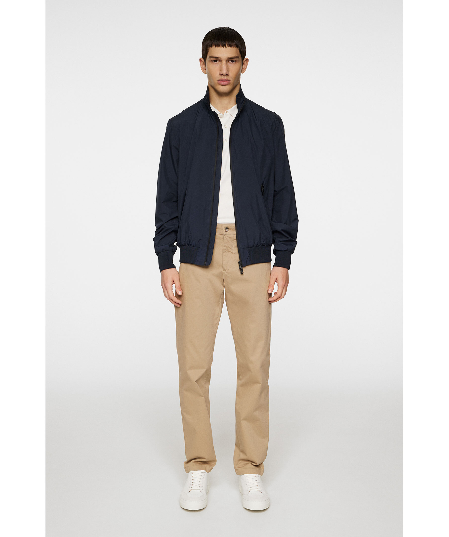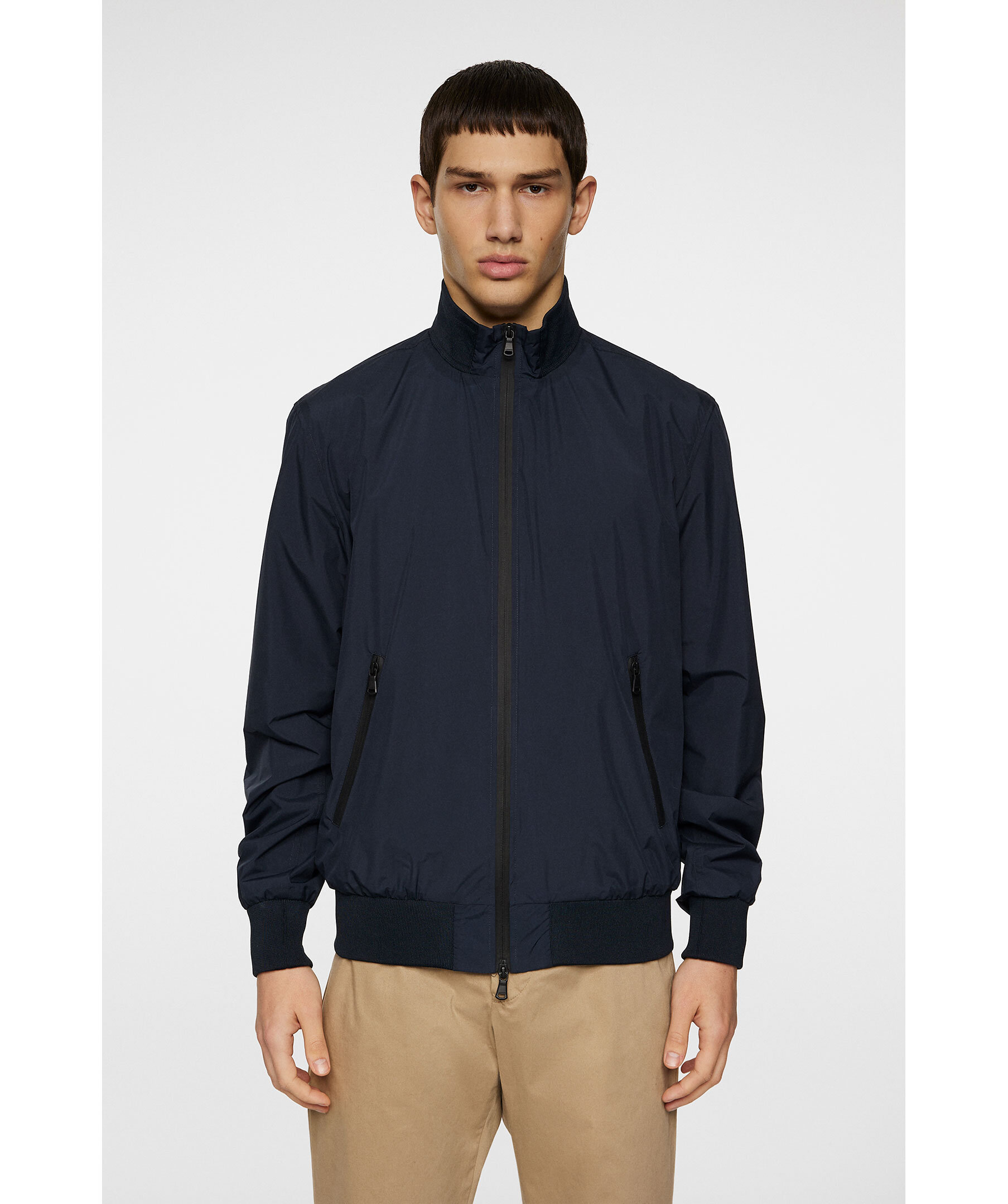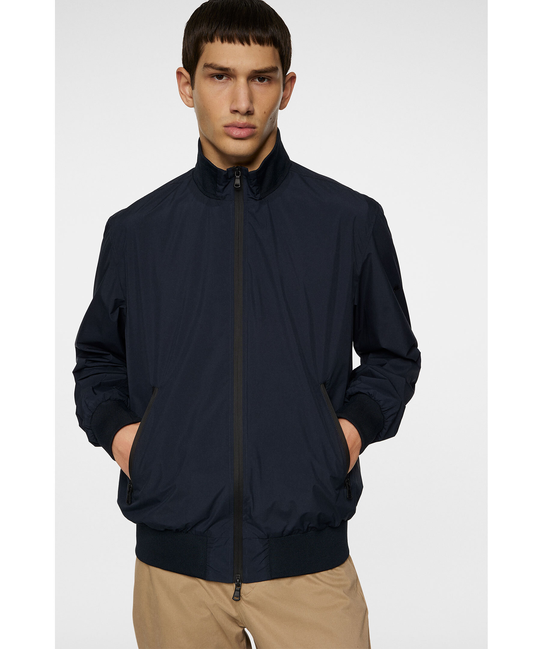 Marinblå, tunn bomberjacka från J Lindeberg. Jackan stängs med tvåvägsdragkedja och har två sidfickor med dragkedja, ribbstickade detaljer samt logotyp i metall på ärmen. Tillverkad i återvunnen polyester.