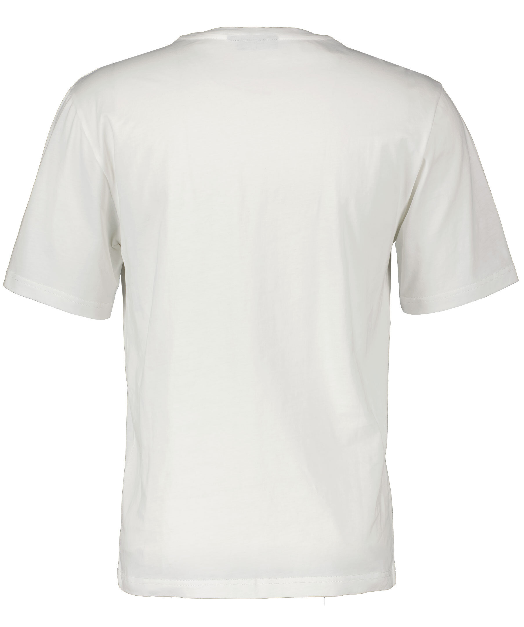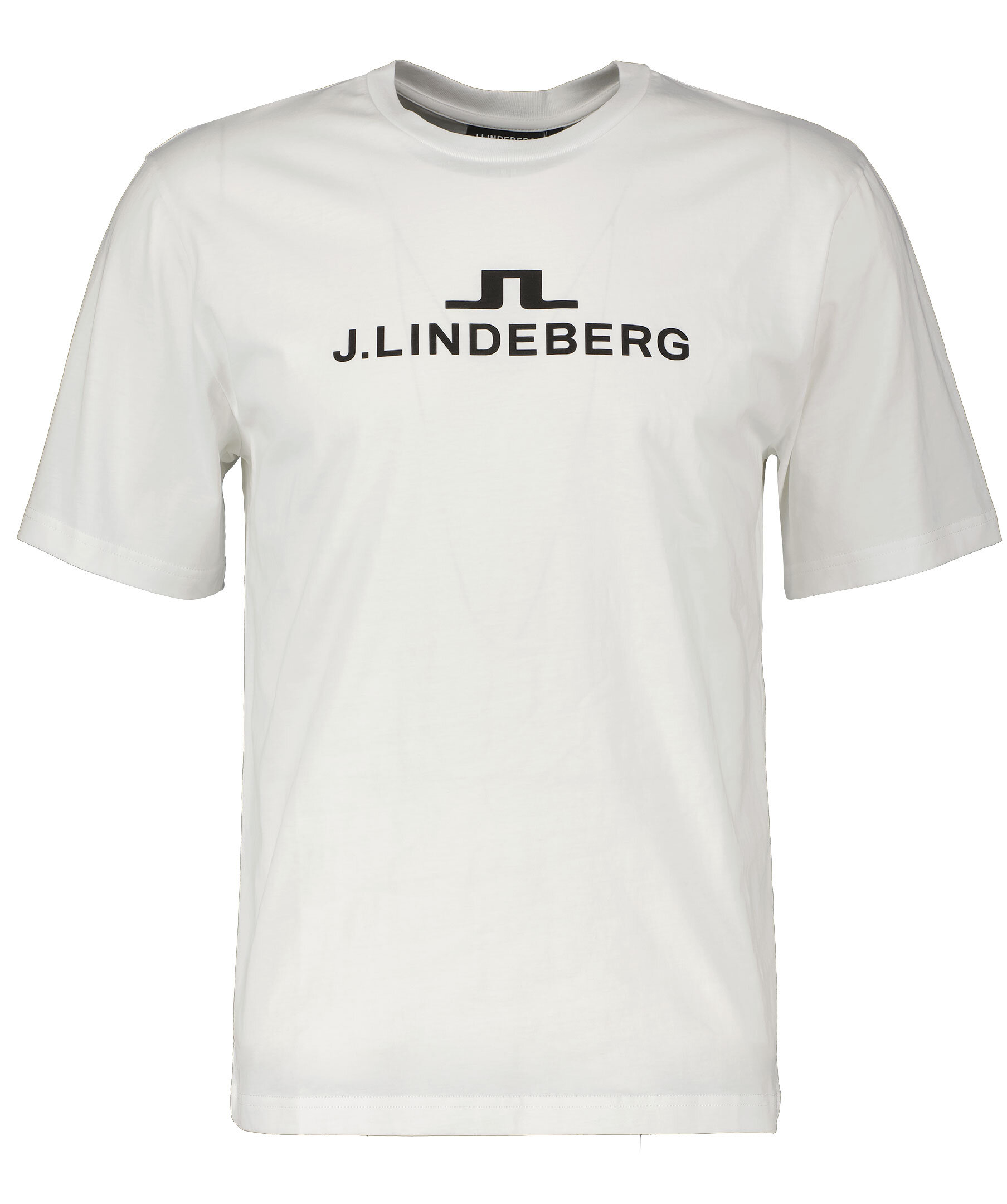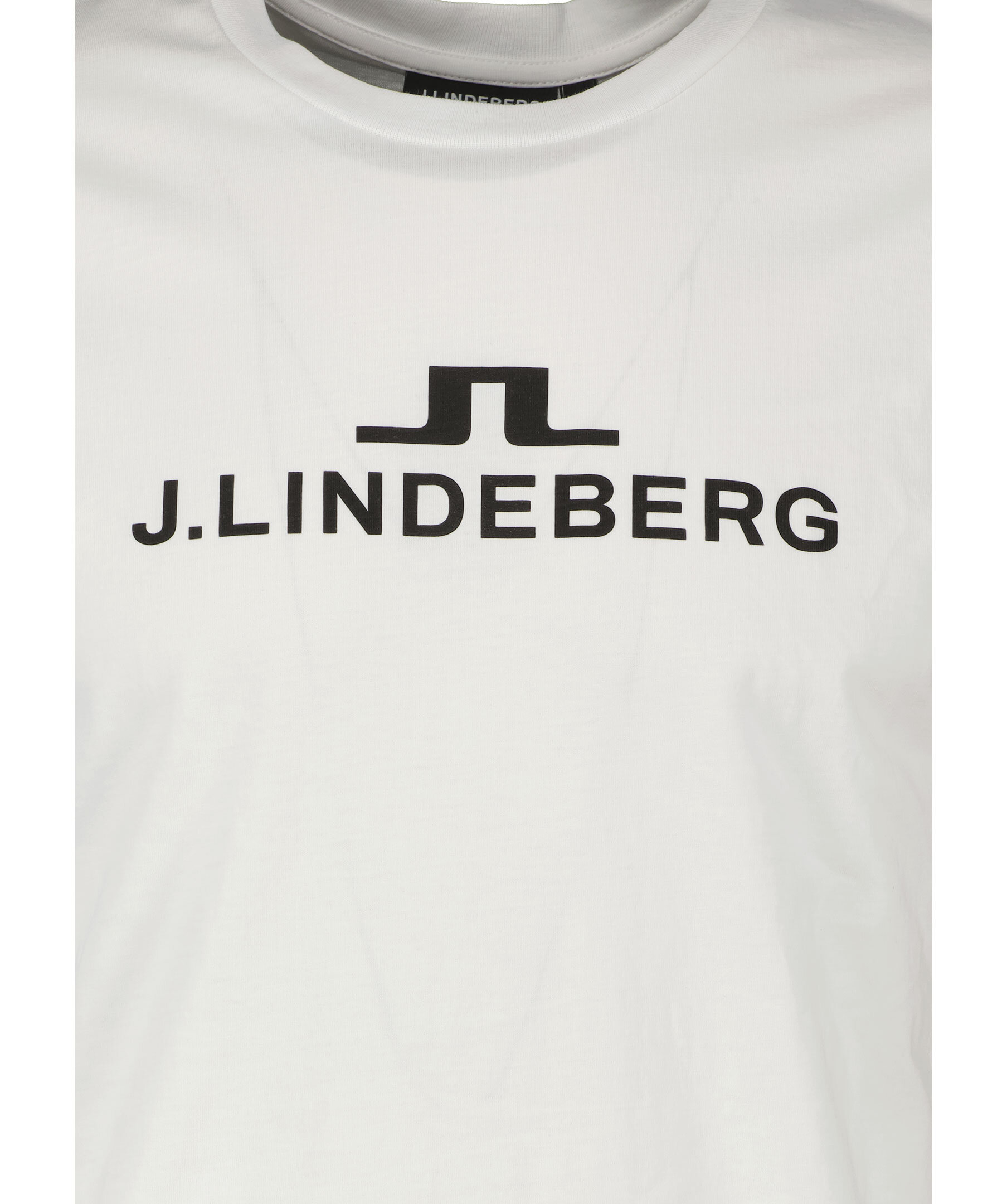 Vit t-shirt från J Lindeberg. Tryckt logotyp över bröstet. Tillverkad i 100% Bomull. Rundad halsringning med ribbstickad mudd.