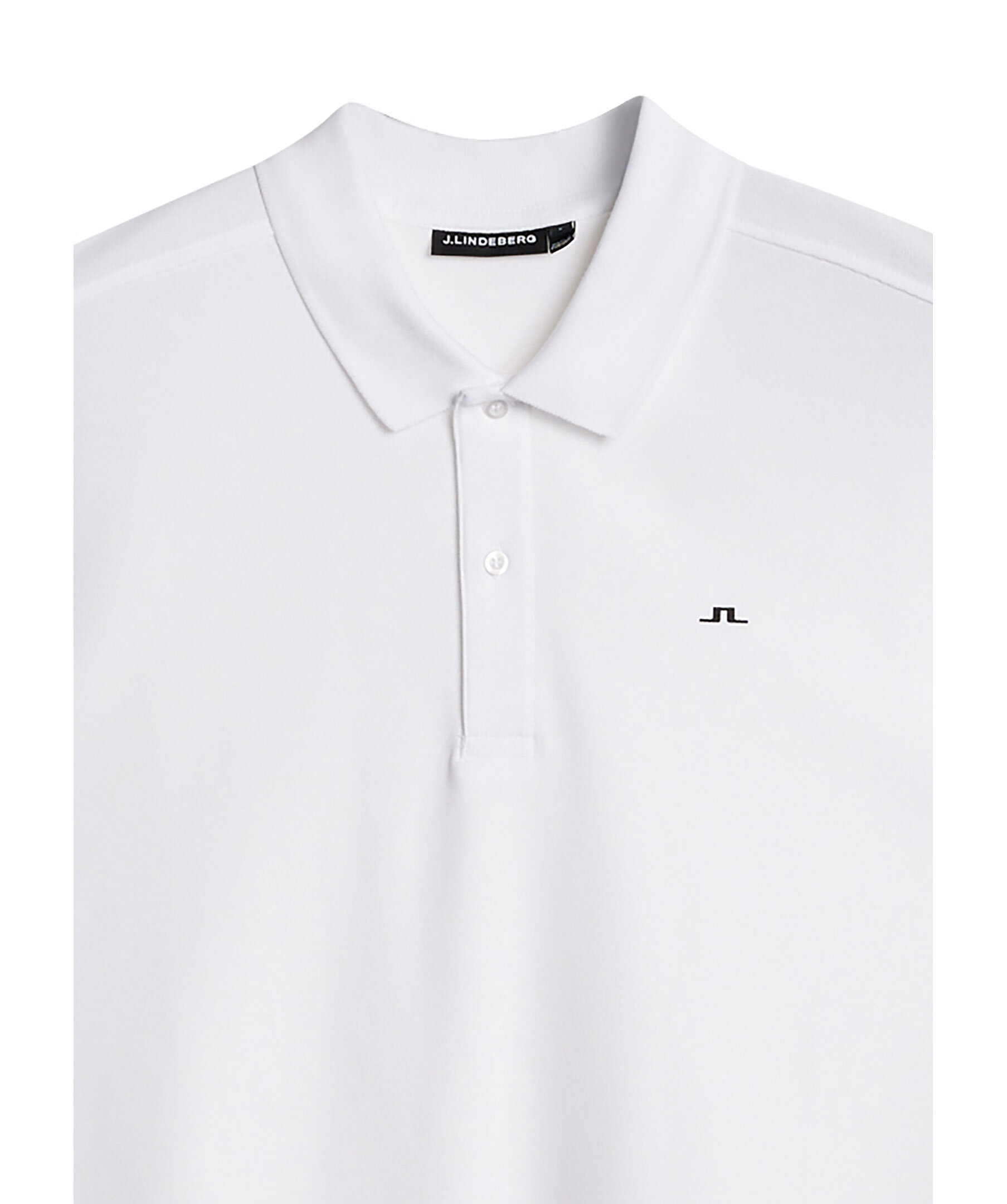 Vit, kortärmad pikétröja från J Lindeberg. Pikén har två knappar framtill och en tryckt logotyp på bröstet. Tillverkad i bomull.