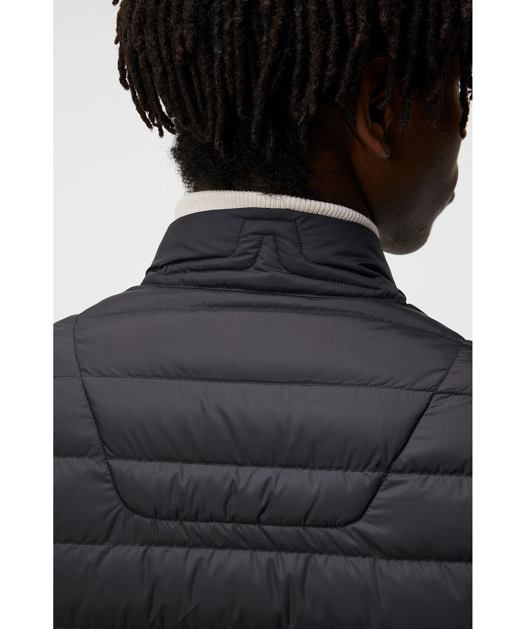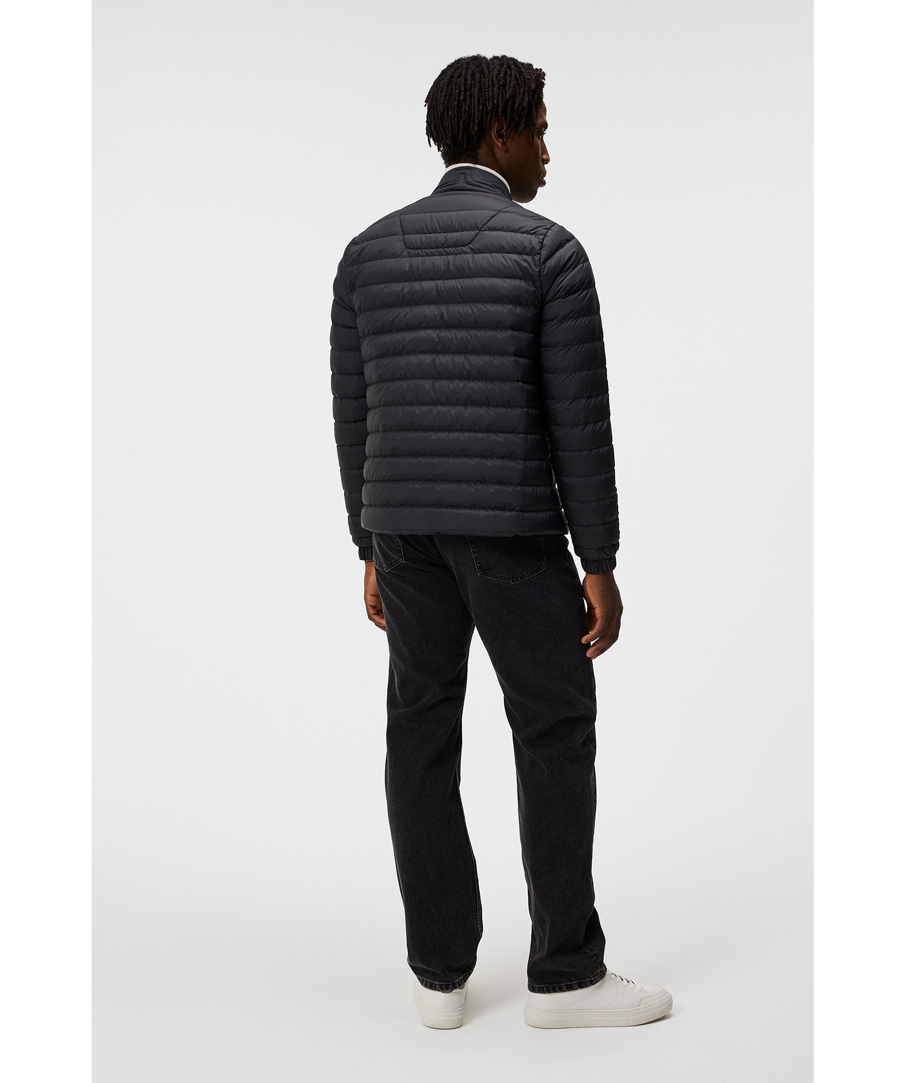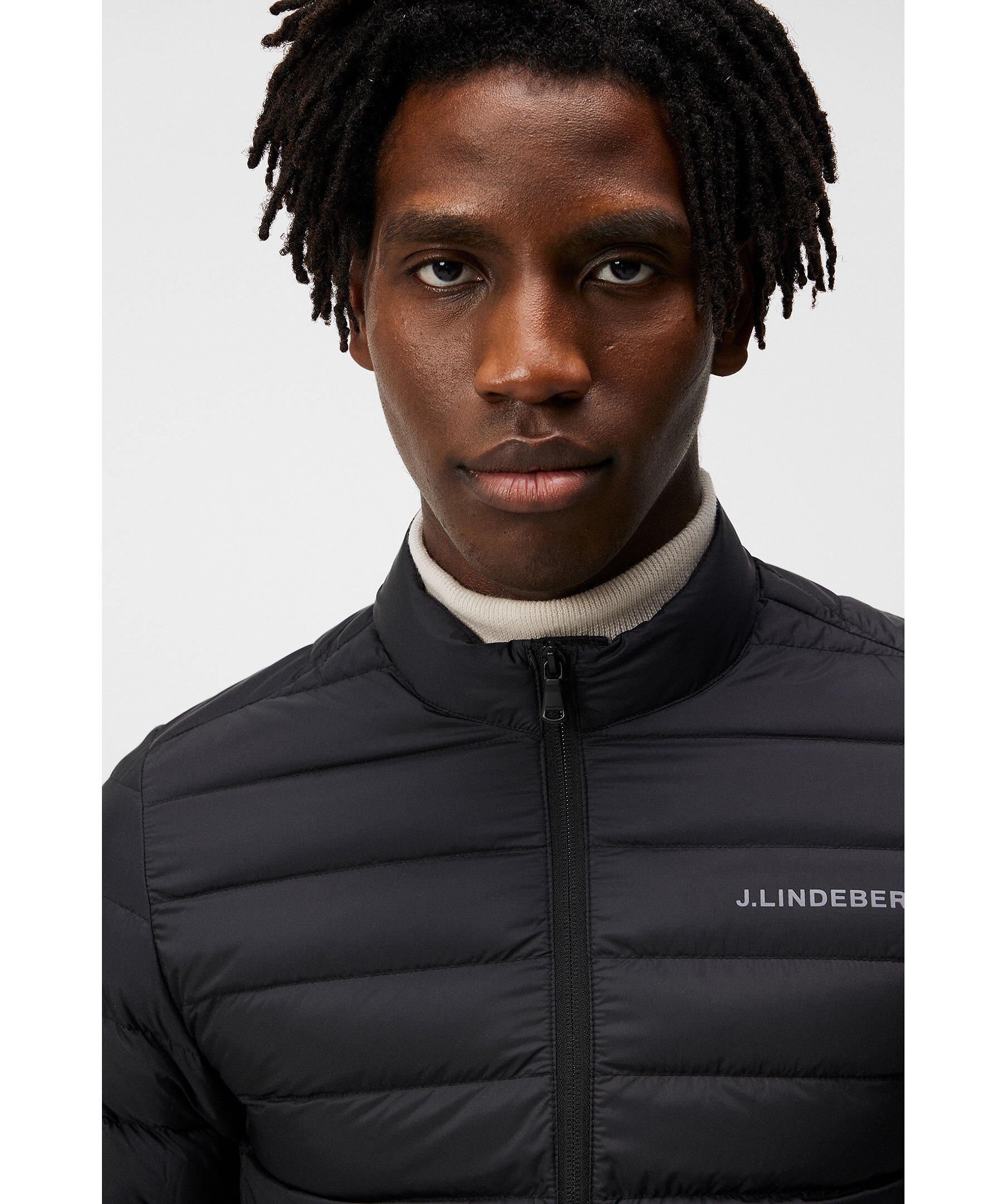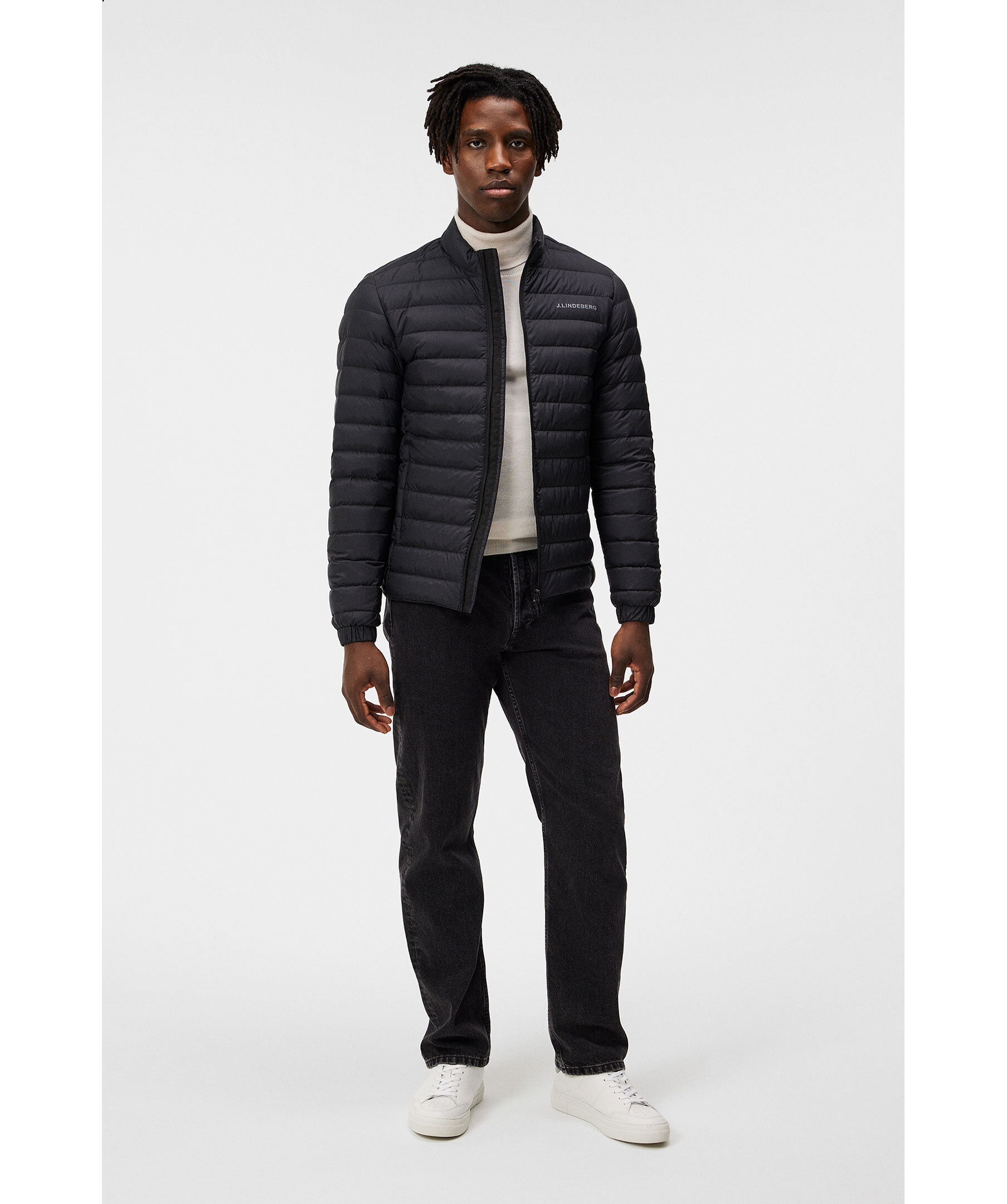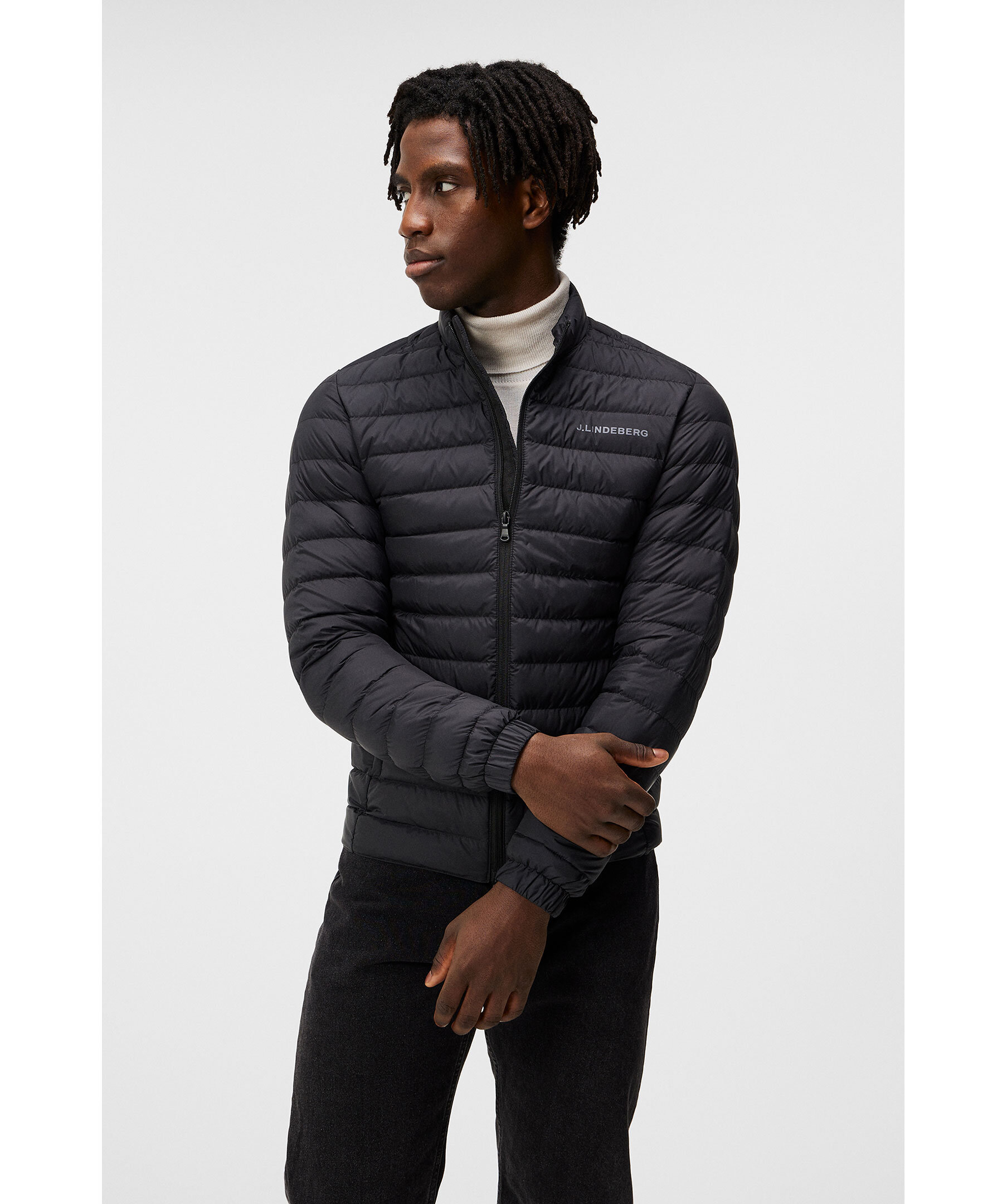Svart quiltad jacka från J Lindeberg. Jackans stängs med tvåvägsdragkedja och har två sidfickor med dragkedja samt logotyp tryck på bröstet.