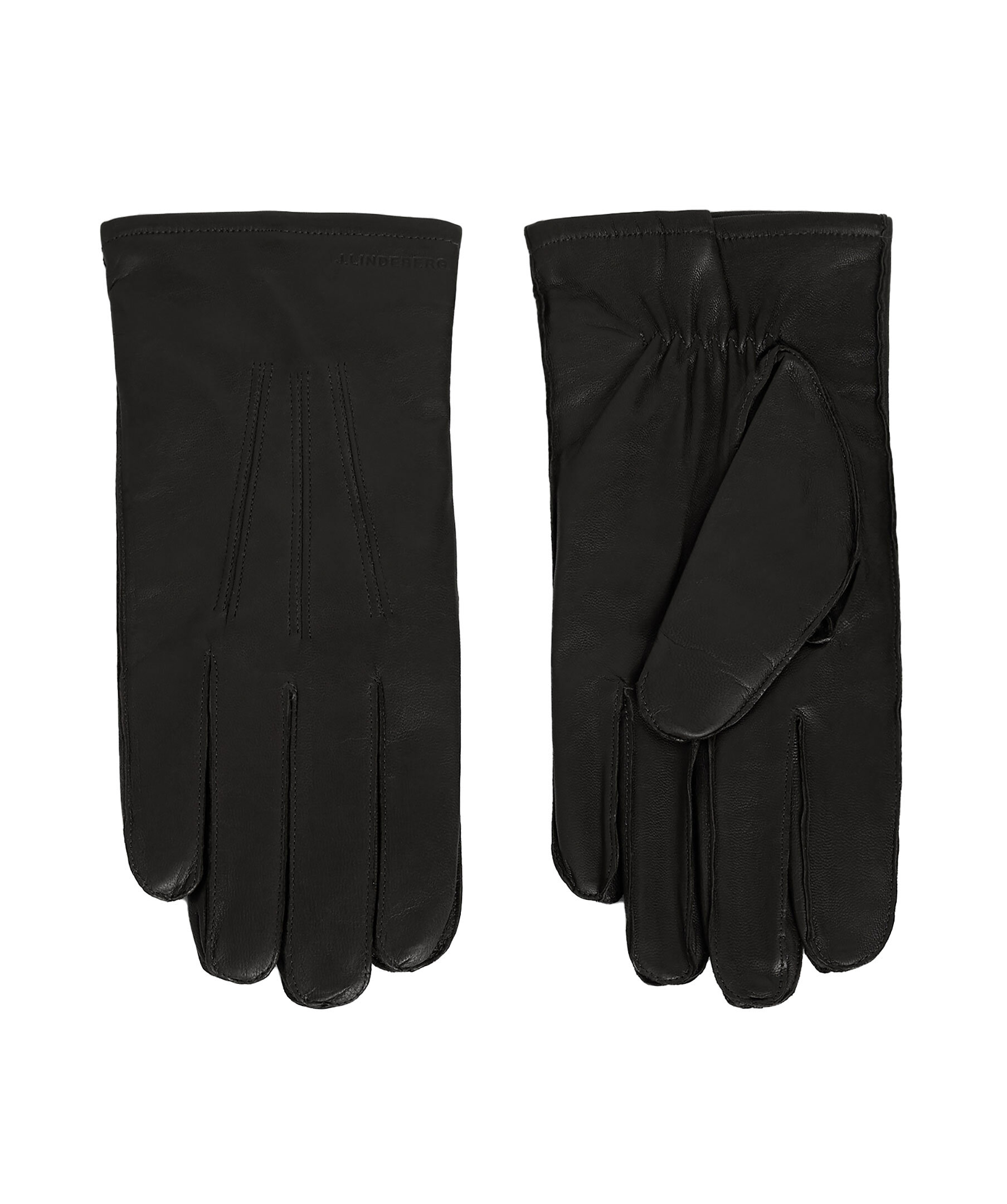 Svarta läder handskar från J Lindeberg. Utsidan är tillverkade av 100% lammläder och insidan av en lammull och kashmirblandning. Embossad logotyp.