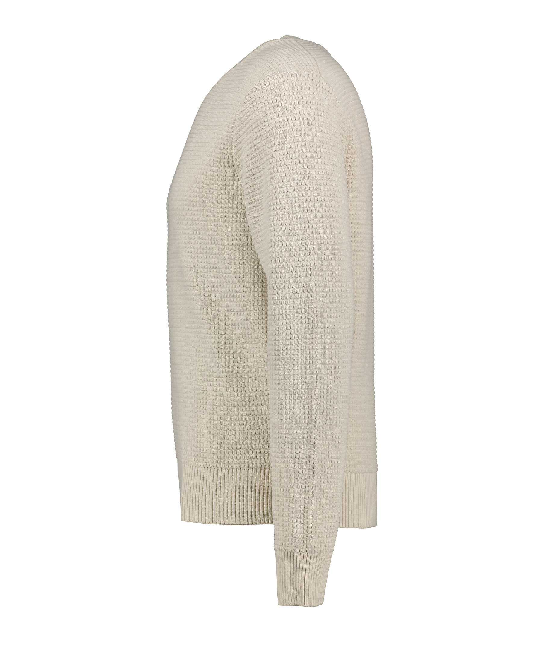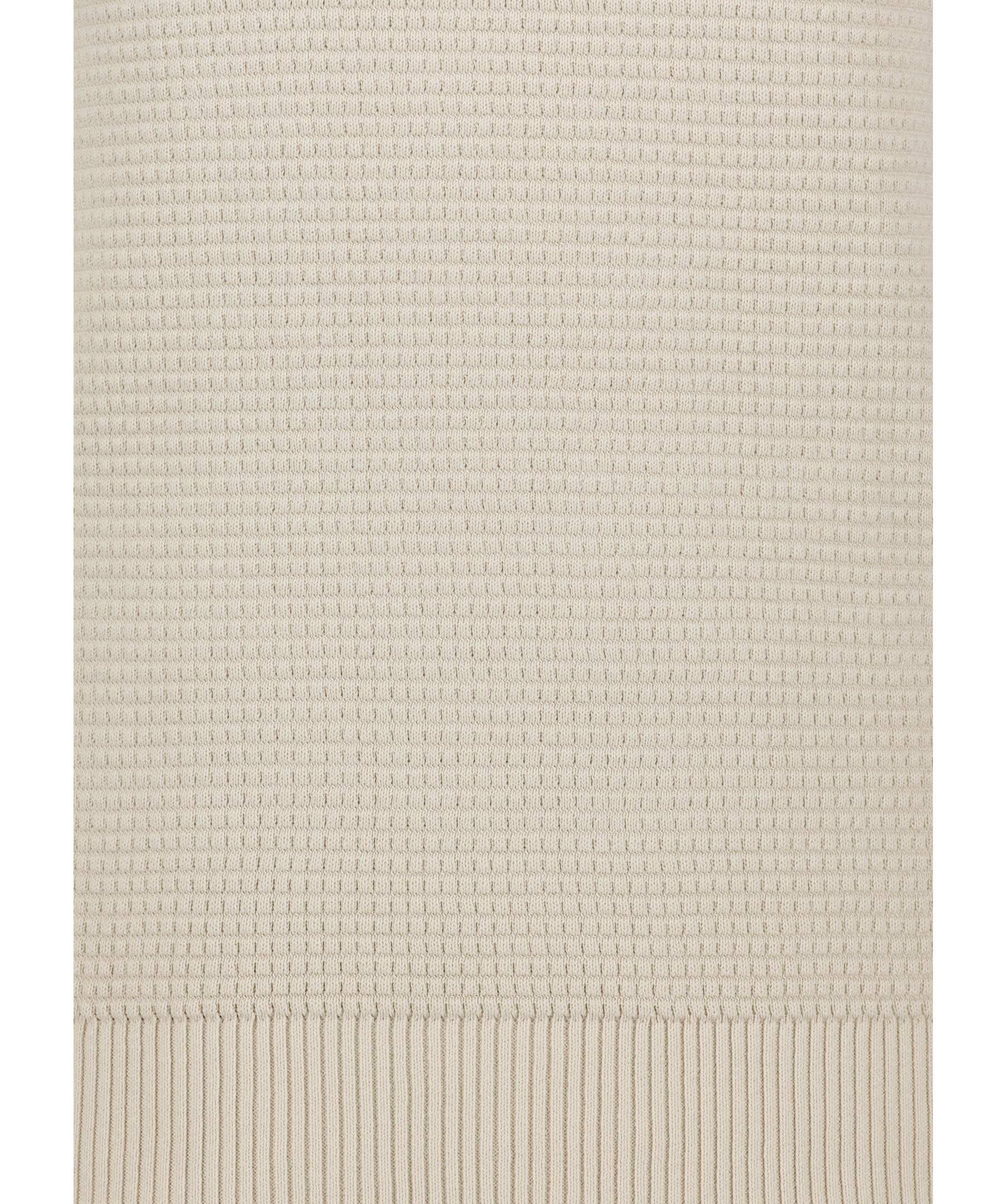 Beiga tröja från J.Lindeberg. Den strukturstickade tröjan har ribbstickade muddar och avslut och rundad halsringning. Tillverkad av 100% bomull.