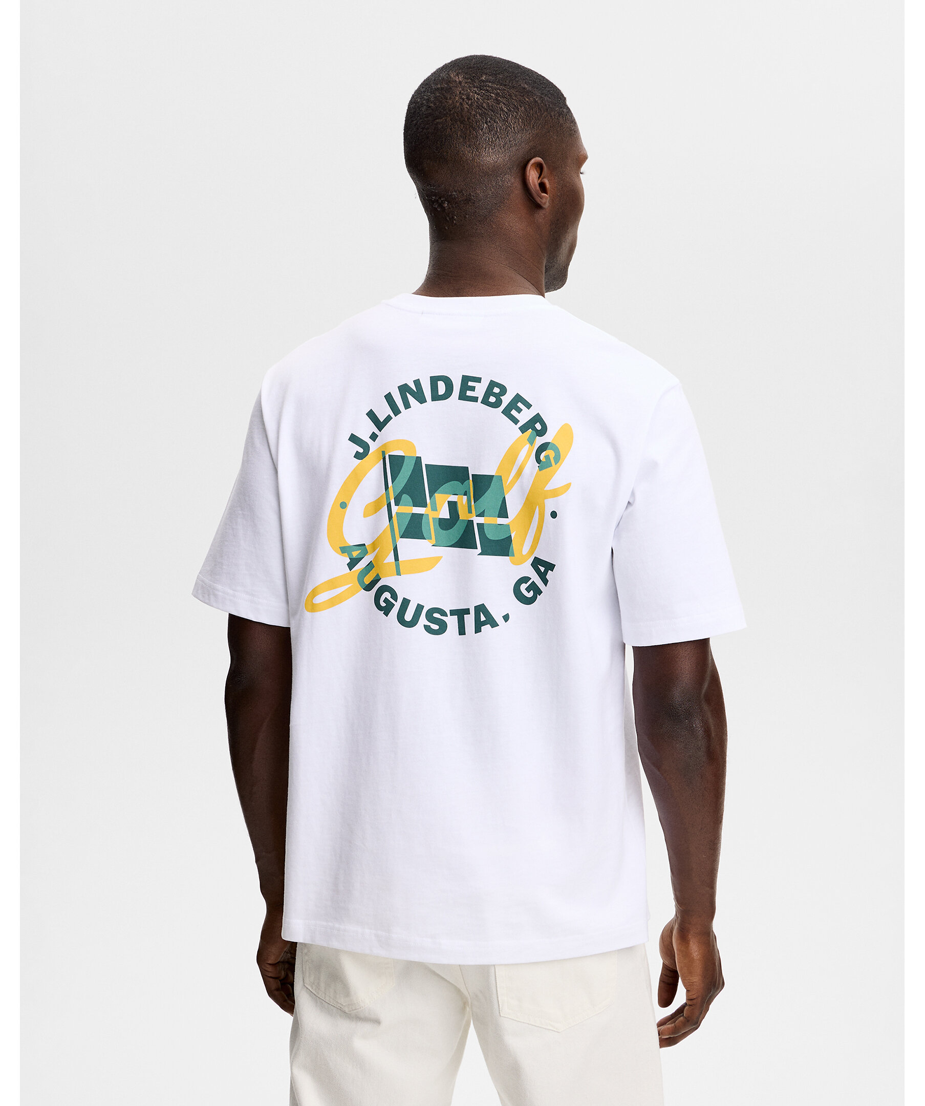 Parcie Tour Tee från J.Lindeberg är tillverkad i lätt bomullsblandad jersey och har en lekfull framsida som ger en avslappnad men modern känsla samt ett större print på baksidan.
