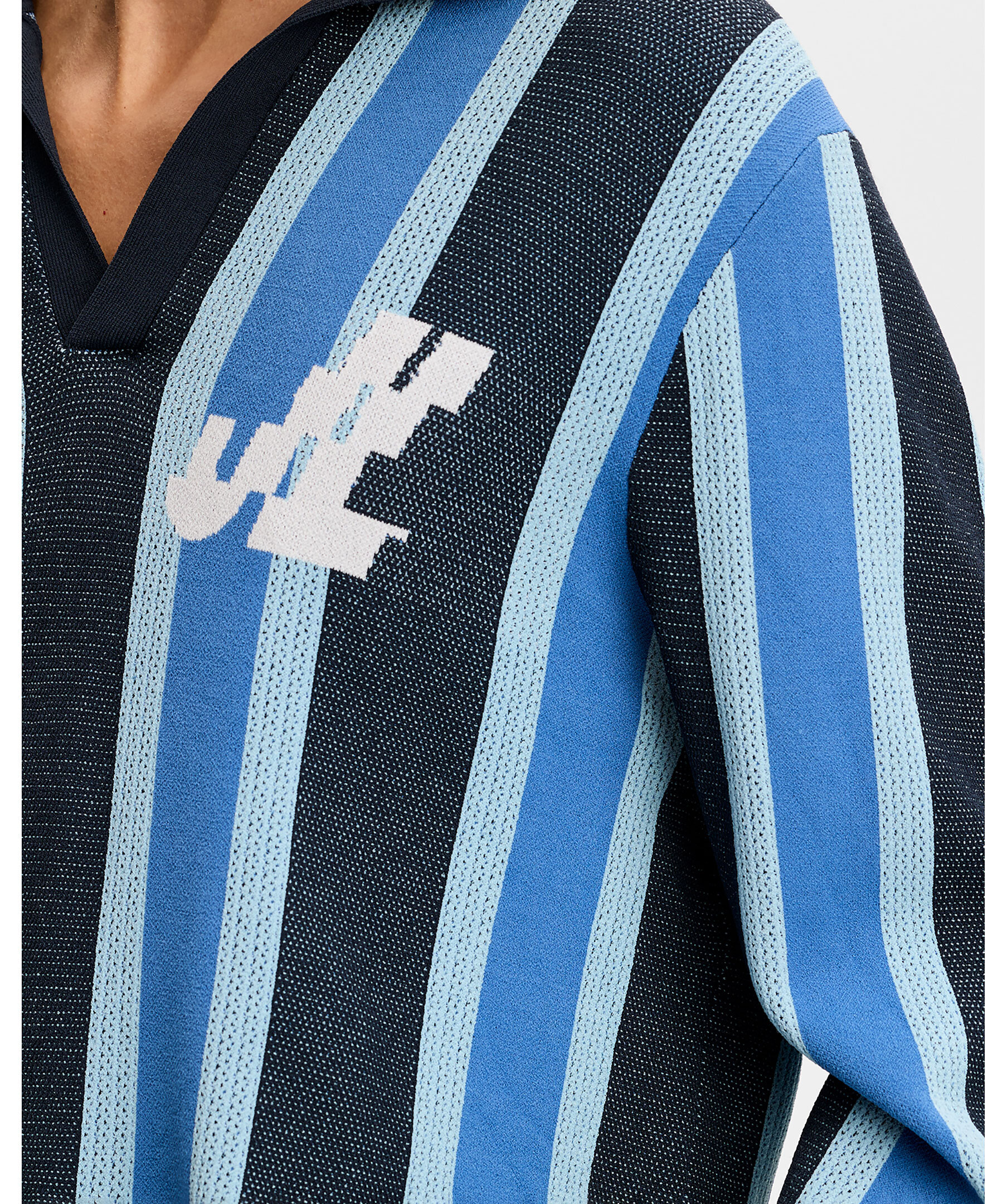 J Lindeberg Silas Stripe Polo Knit - Navy