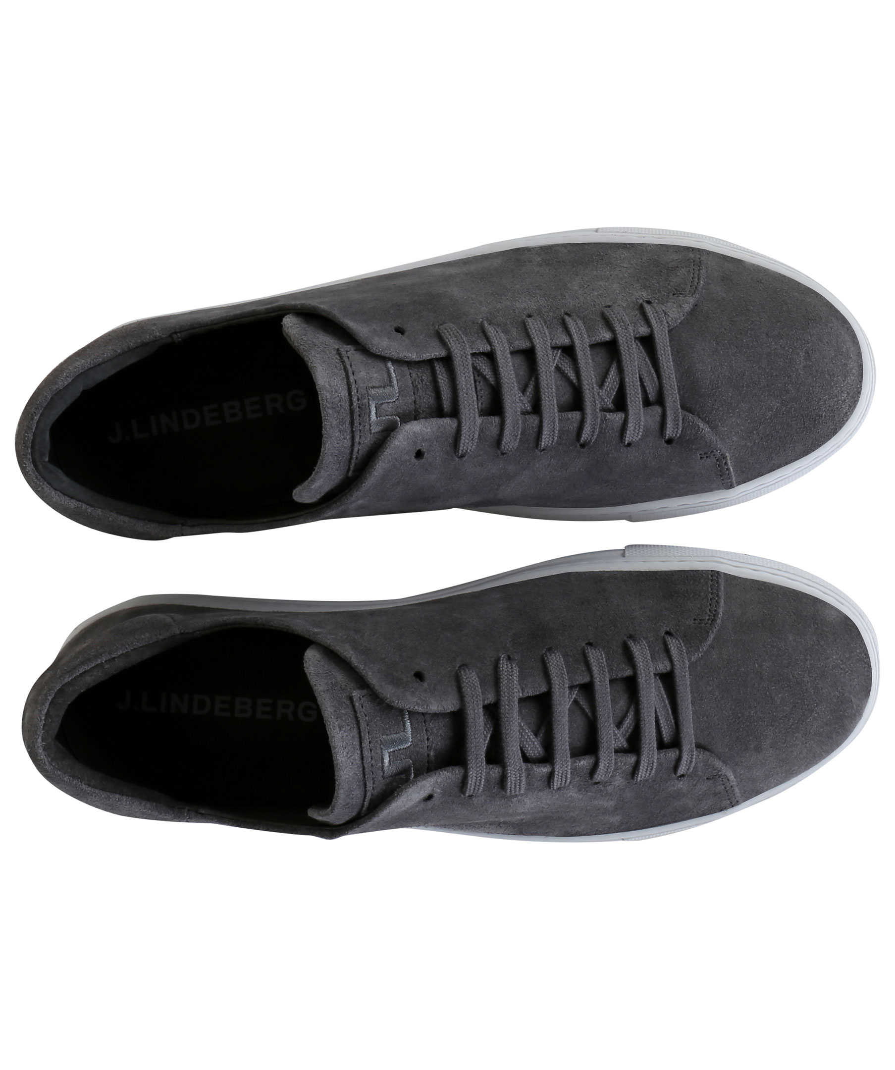 Gråa sneakers i mocka från J.Lindeberg. Klassisk textilsnörning, foder och innersula i läder, yttersula i gummi. Broderad logga på plösen.