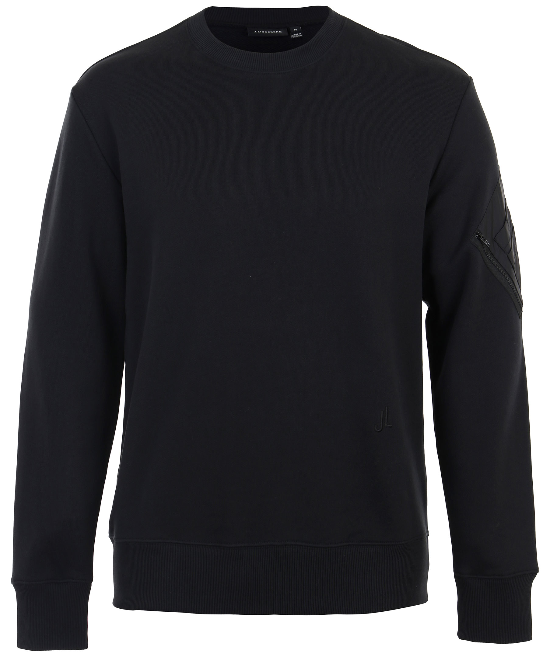 Svart, sweatshirt från J.Lindeberg. Sned ficka med dragkedja och fyra små fack. Ribbade muddar i den rundade halsringningen, i ärmslut och i plaggslut. Broderad logotyp på vänster sida vid höften. Tillverkad i 100% bomull.