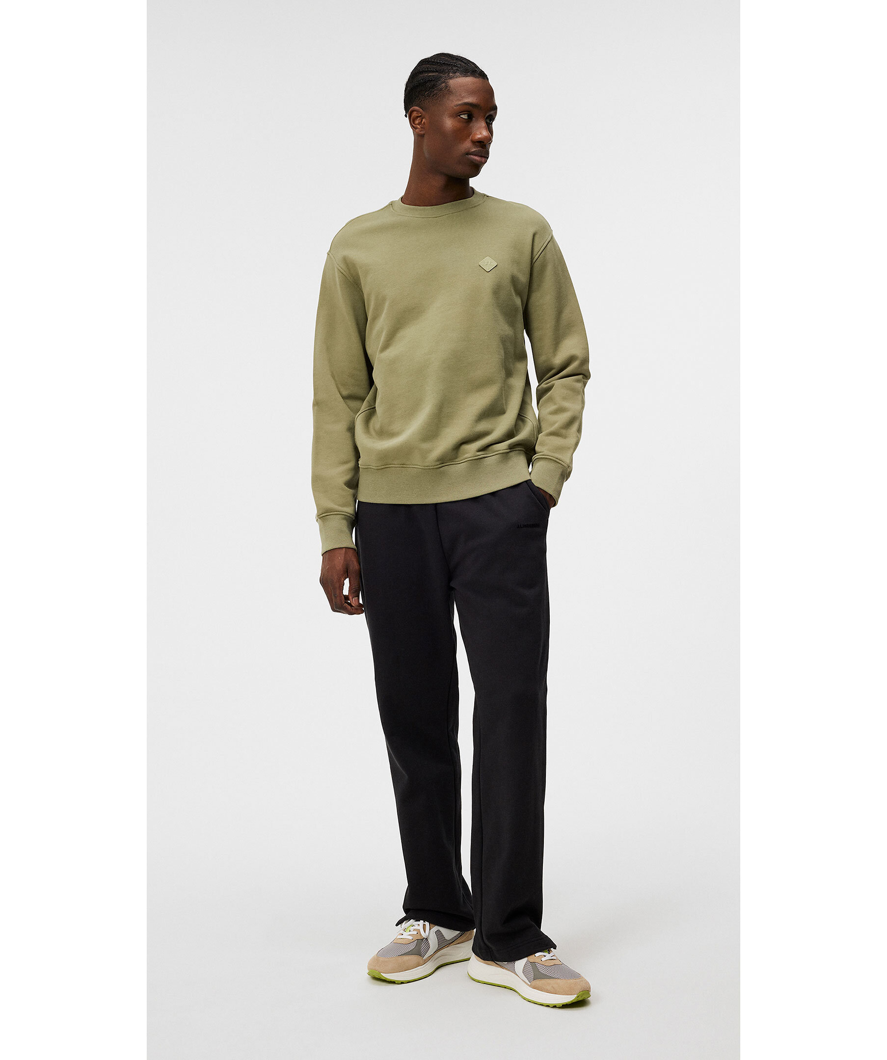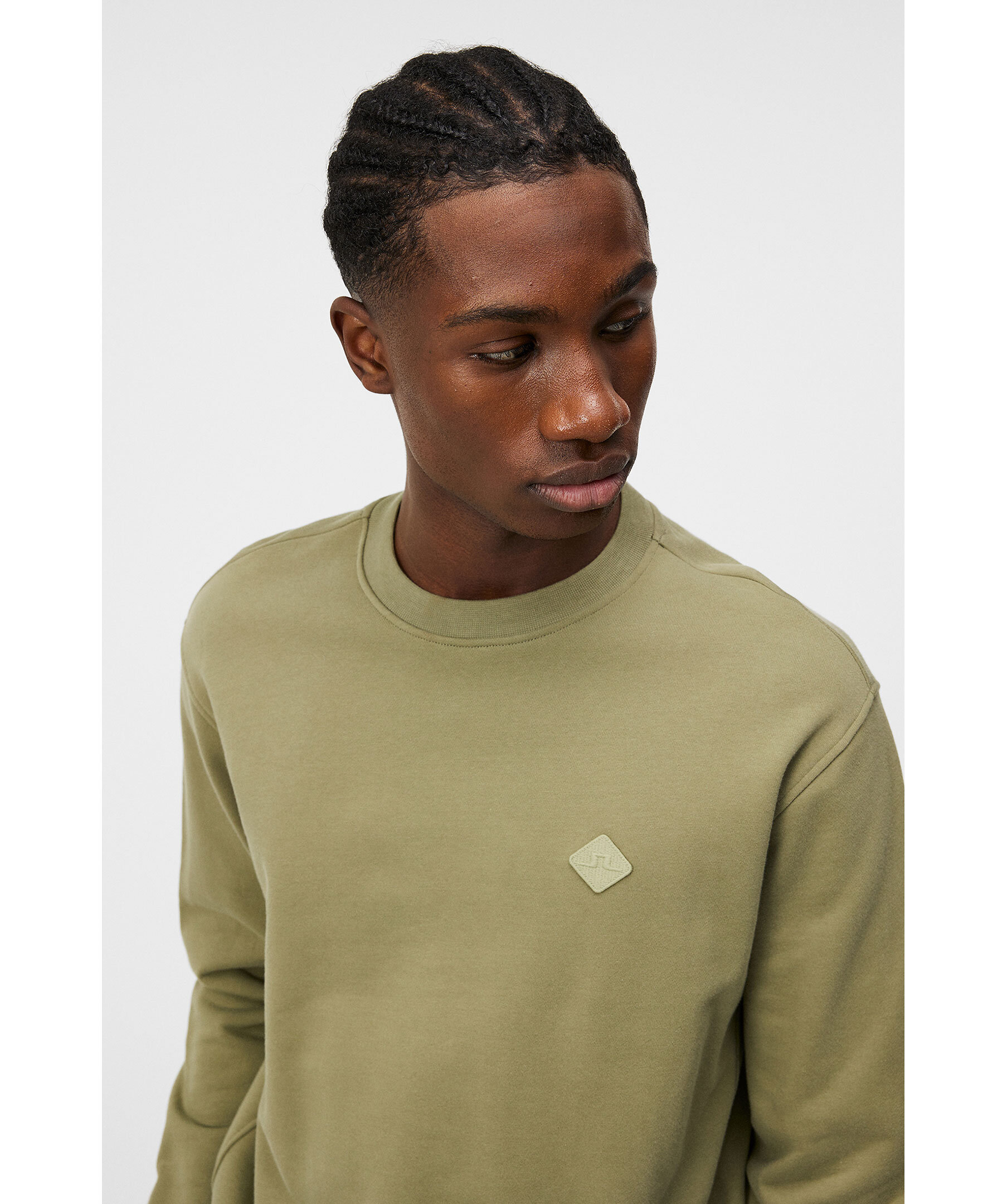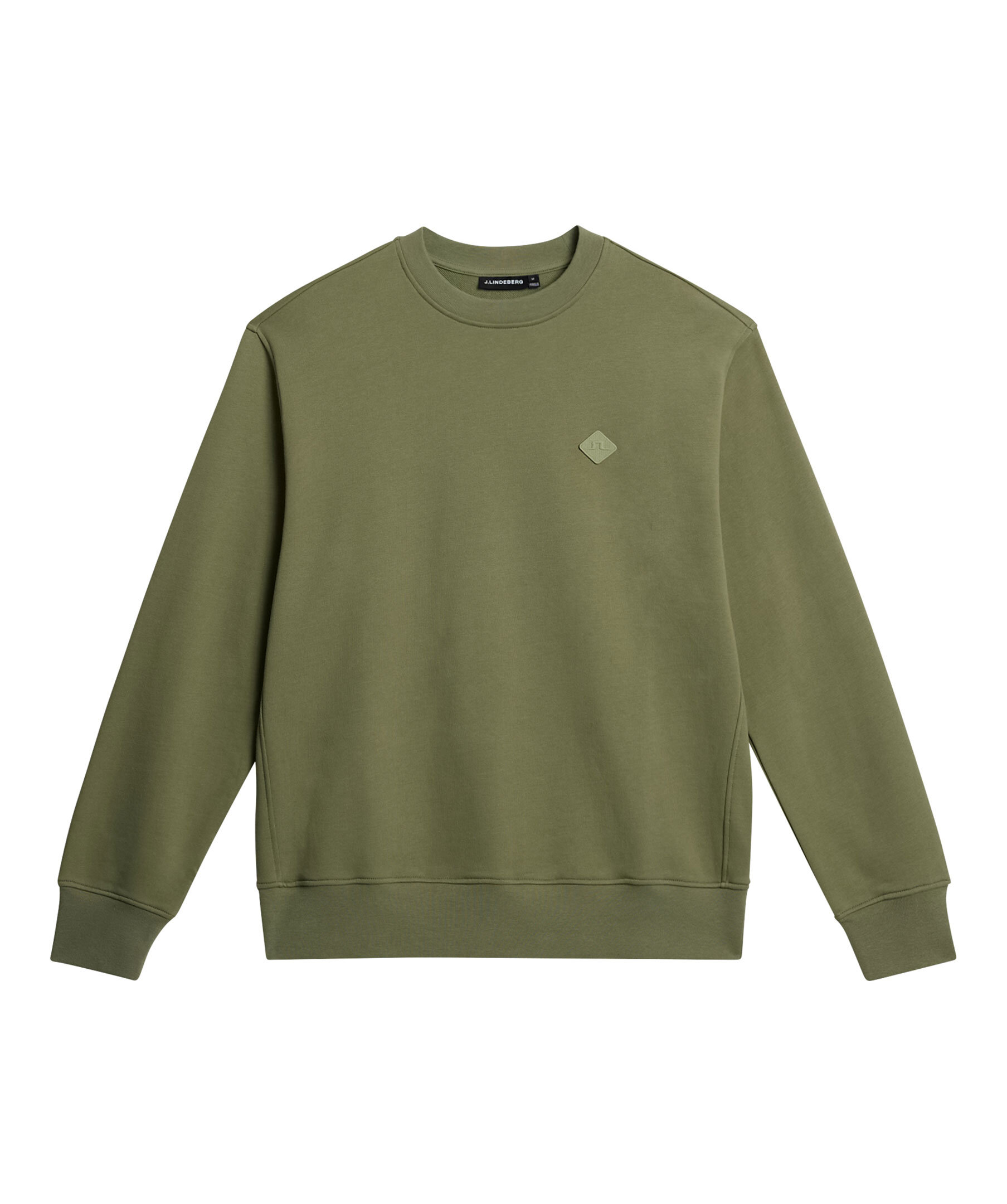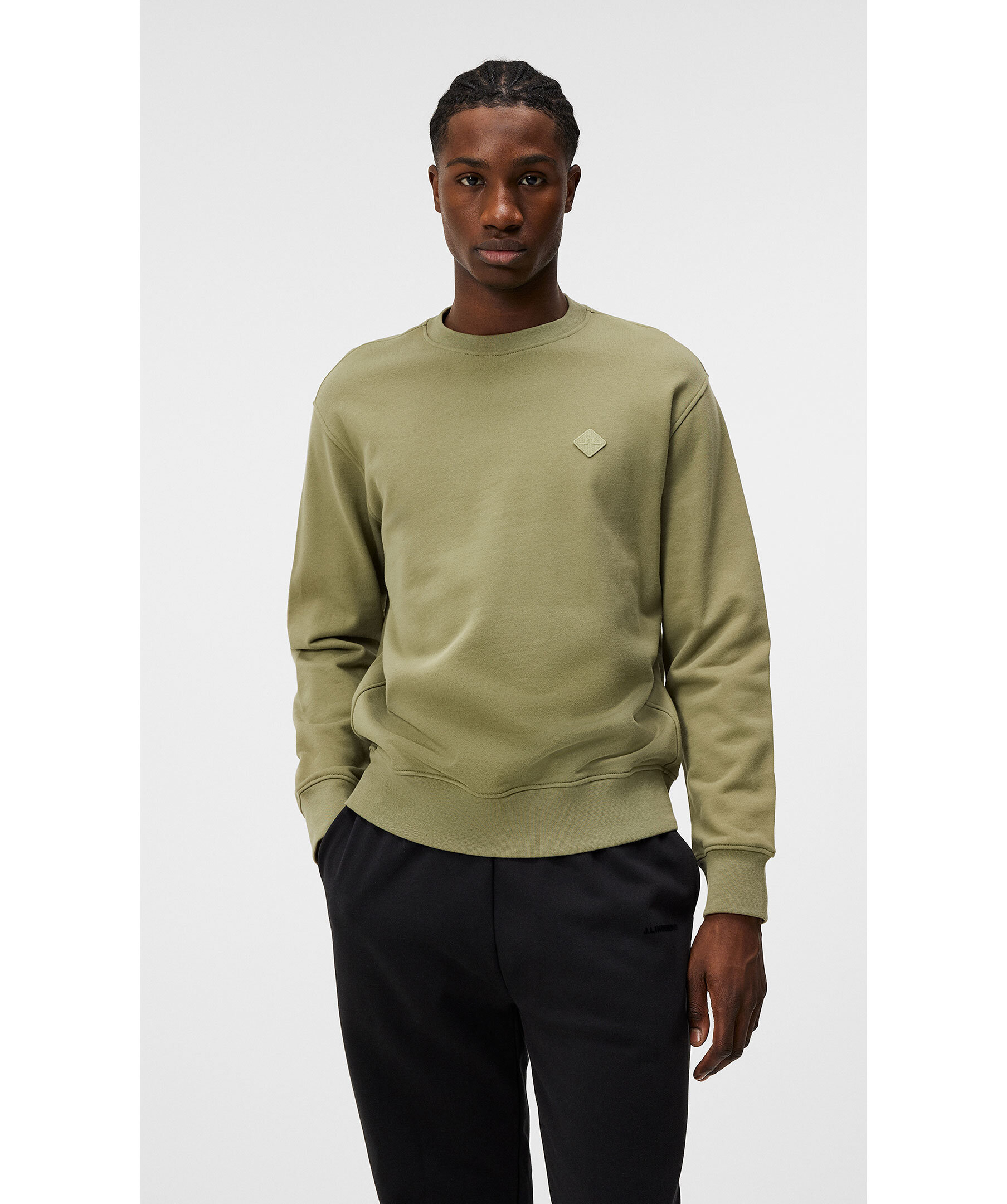Olivgrön Sweatshirt från J Lindeberg. Rundad halsringning. Ribbstickade muddar vid ringningen, ärm. och plaggslut. Broderad patch med logotyp på vänster bröst. Tillverkad i 100% Bomull.