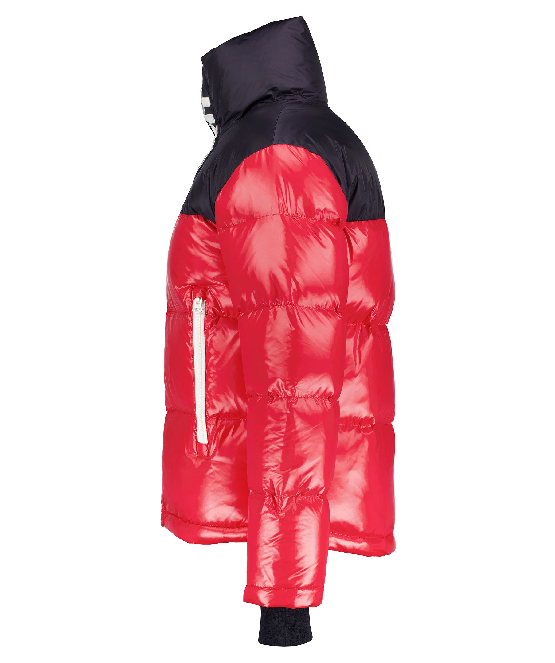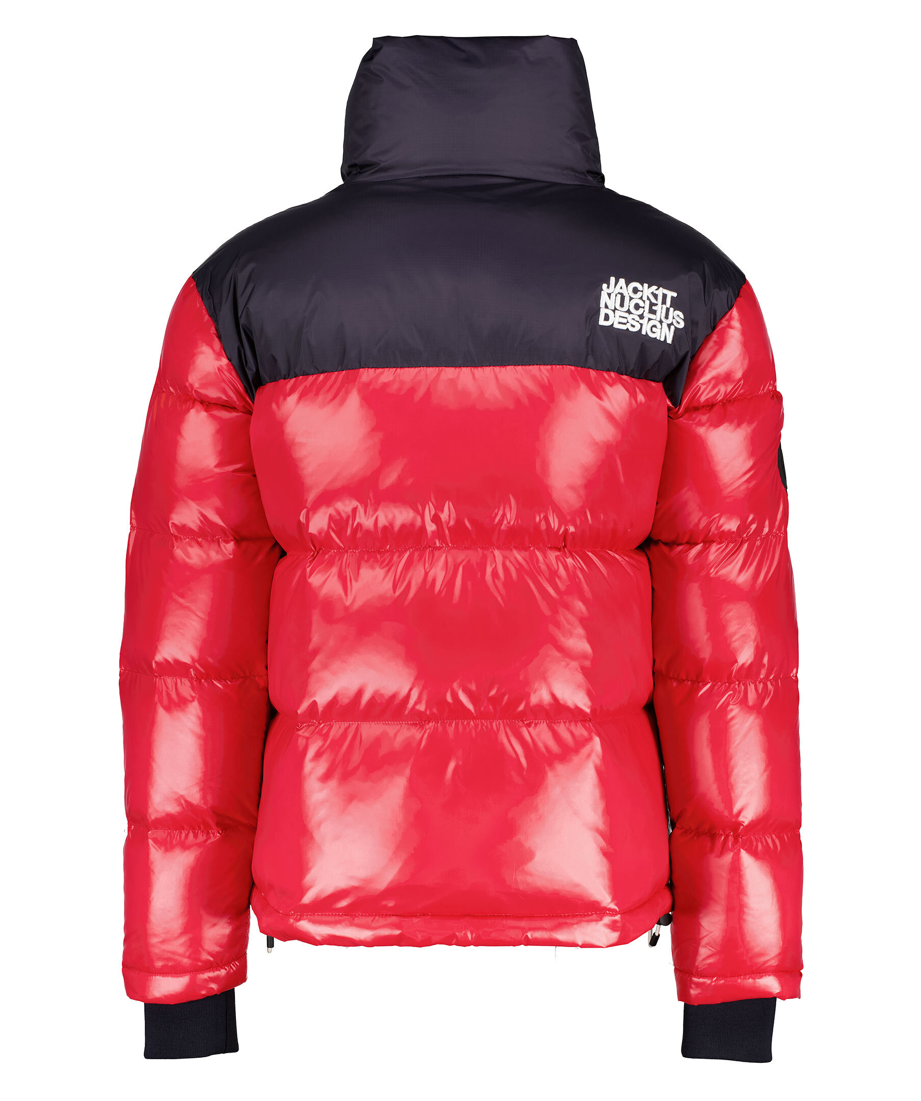 Röd quiltad dunjacka från Jack1t. Svart kontrasttyg Stängs framtill med dragkedja och tryckknappar vid kragen. Två fickor framtill med dragkedja. Innerficka som stängs med dragkedja. Ribbstickade muddar vid ärmslut. Dragsko vid jackslut. Broderad logotyper framtill vid kragen, baktill på höger axel. Gummerad patch med logotyp på höger ärm. Jackan är tillverkad i vattenavstötande material.
