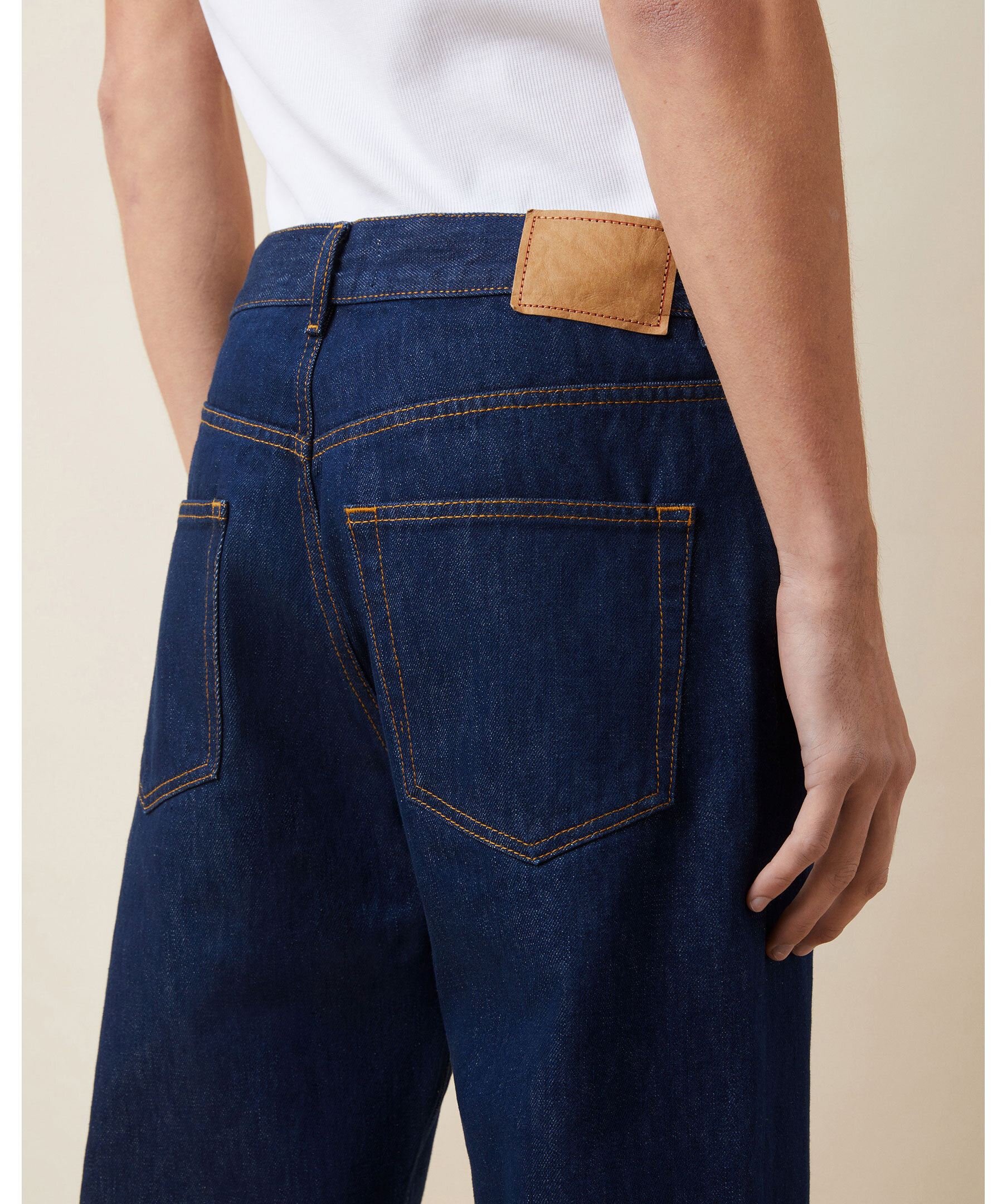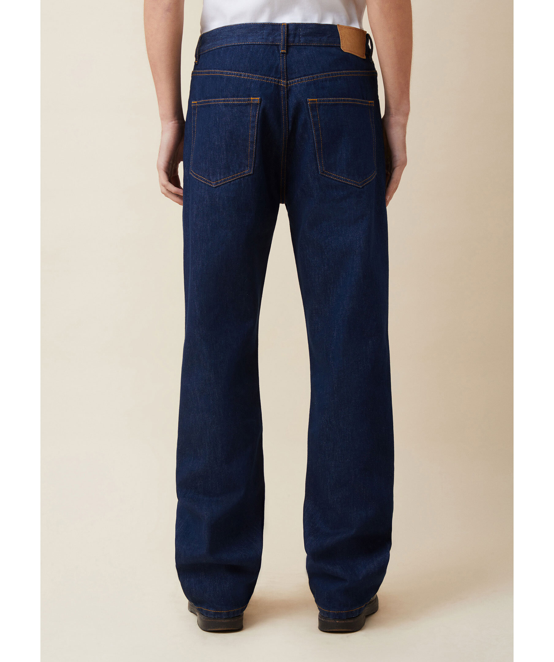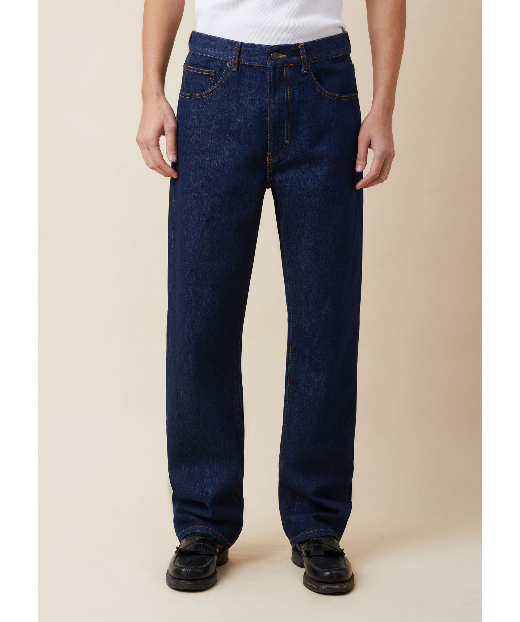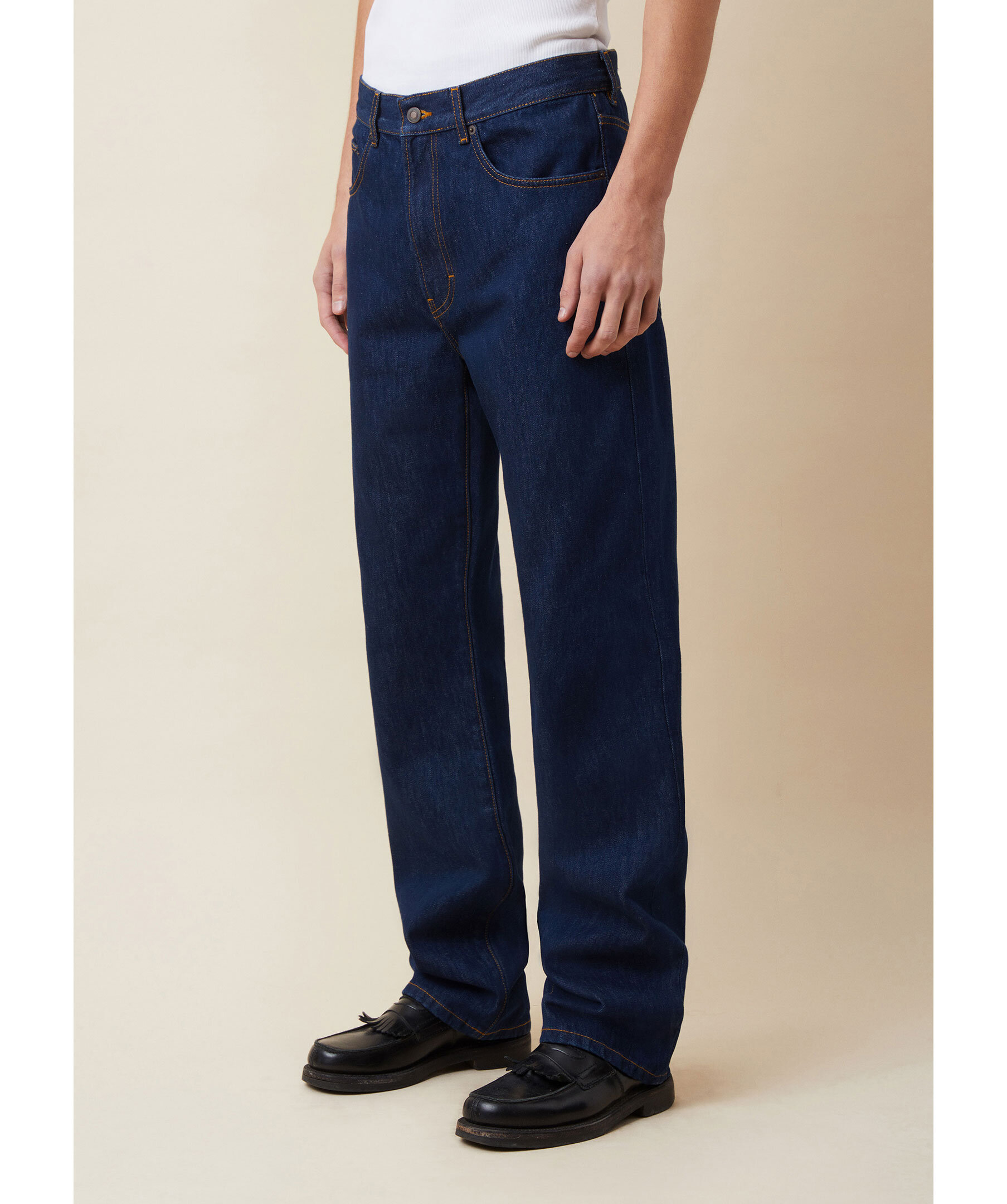 Mörkblåa jeans från Jeanerica. Jeansen har en medelhög midja, fem fickor och bältehällor i midjan. Lös passform och raka ben. Tillverkad i en bomullsblandning.