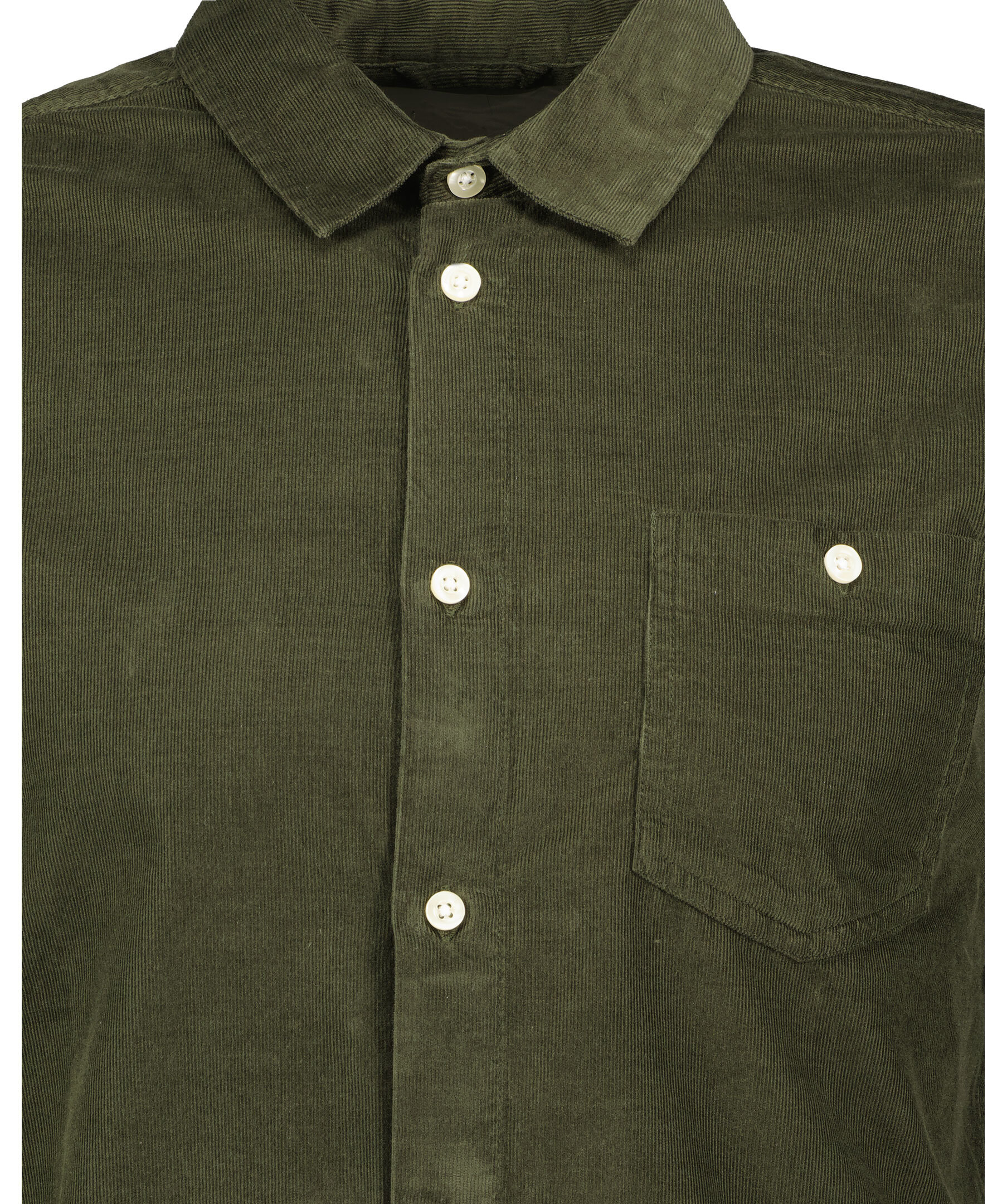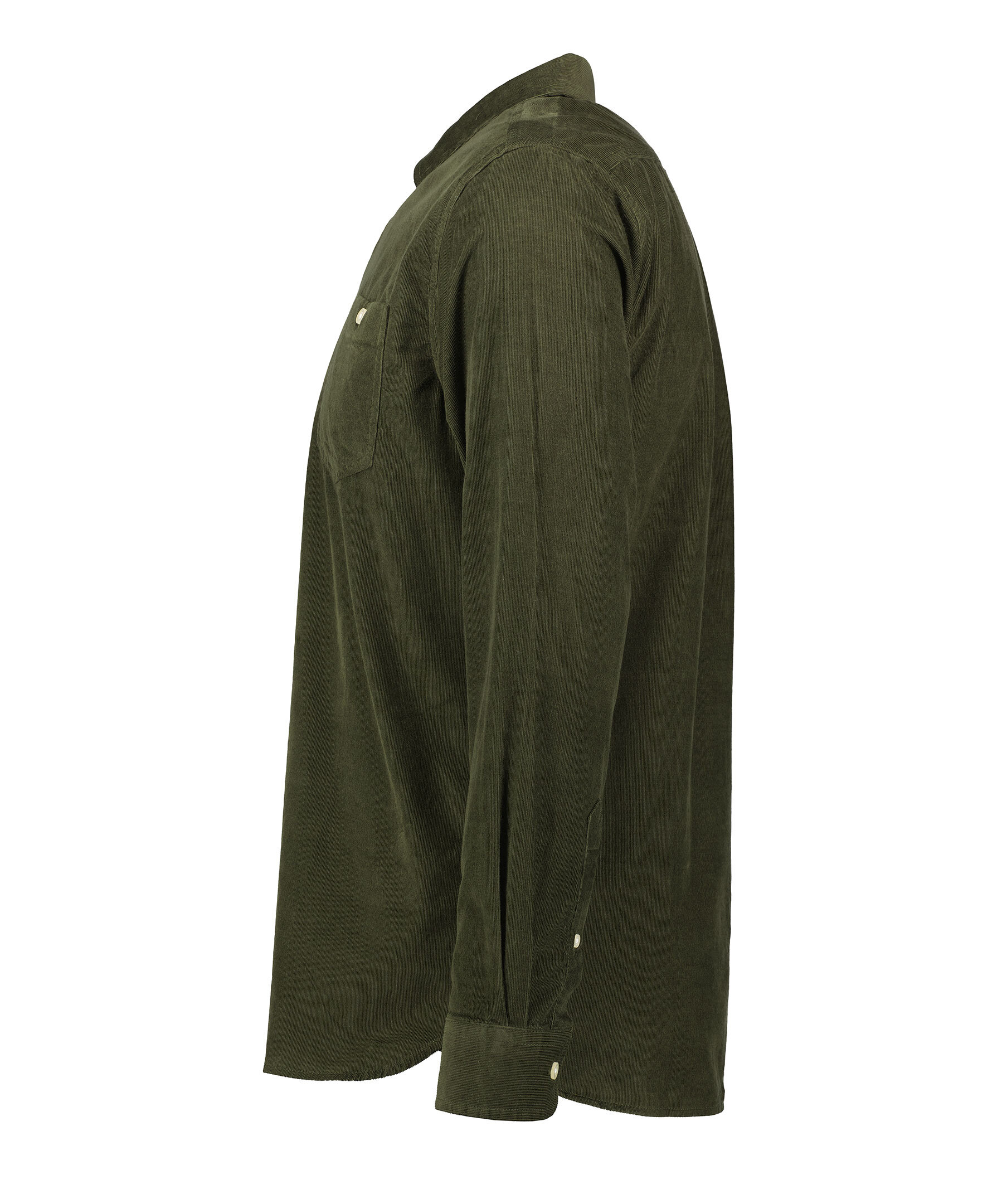 Militärgrön, långärmad skjorta från Knowledge Cotton i manchestermaterial. Button down krage och en bröstficka. Tillverkad i 100% bomull.