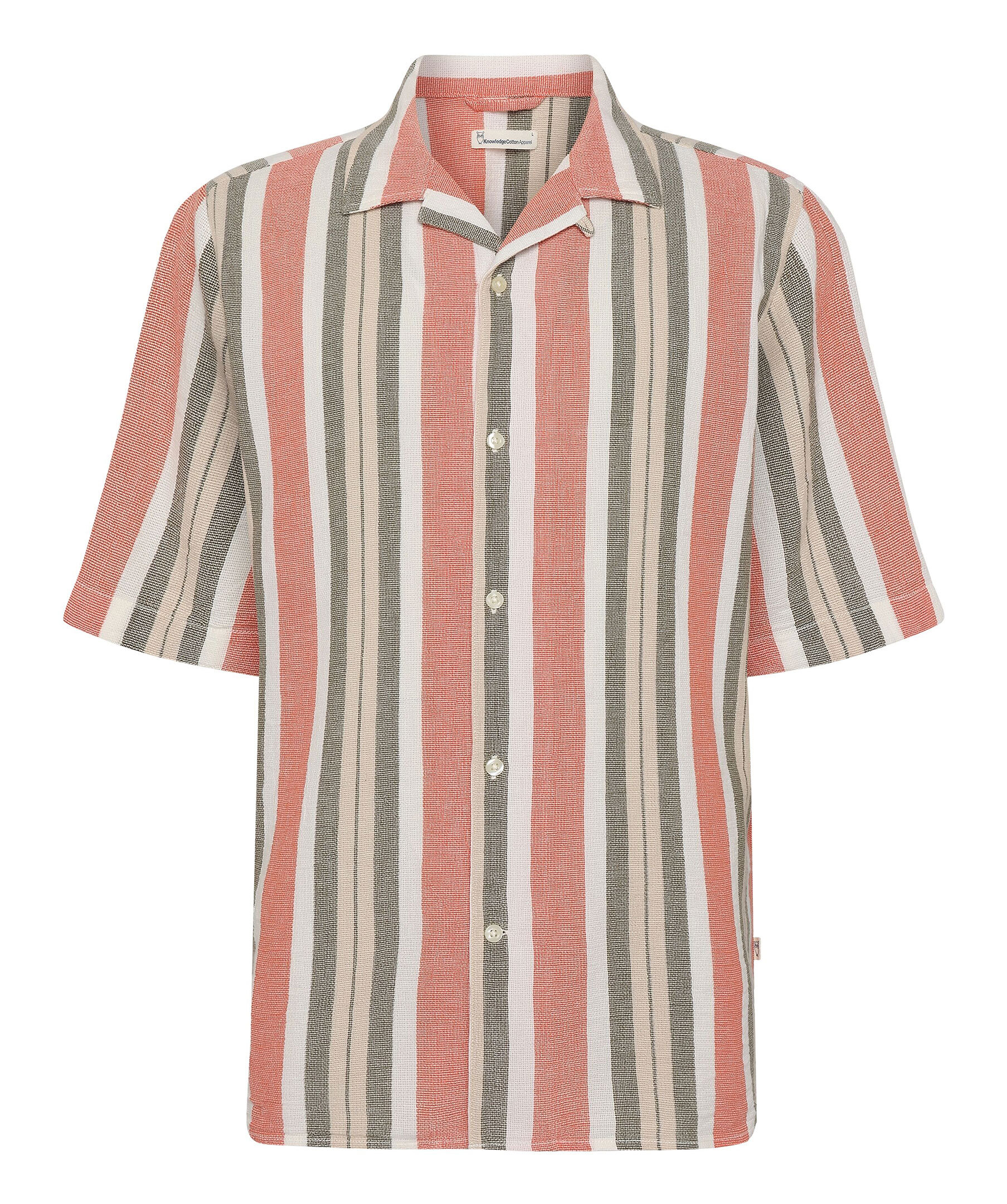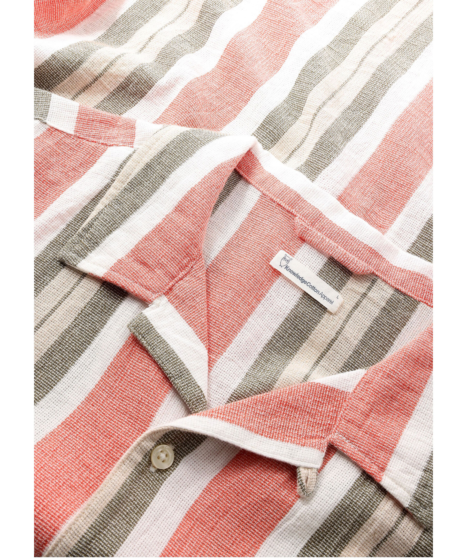 Multifärgad, randig och kortärmad skjorta från Knowledge Cotton. Skjortan stängs med knappar framtill och har klassisk krage. Tillverkad i ekologisk bomull.