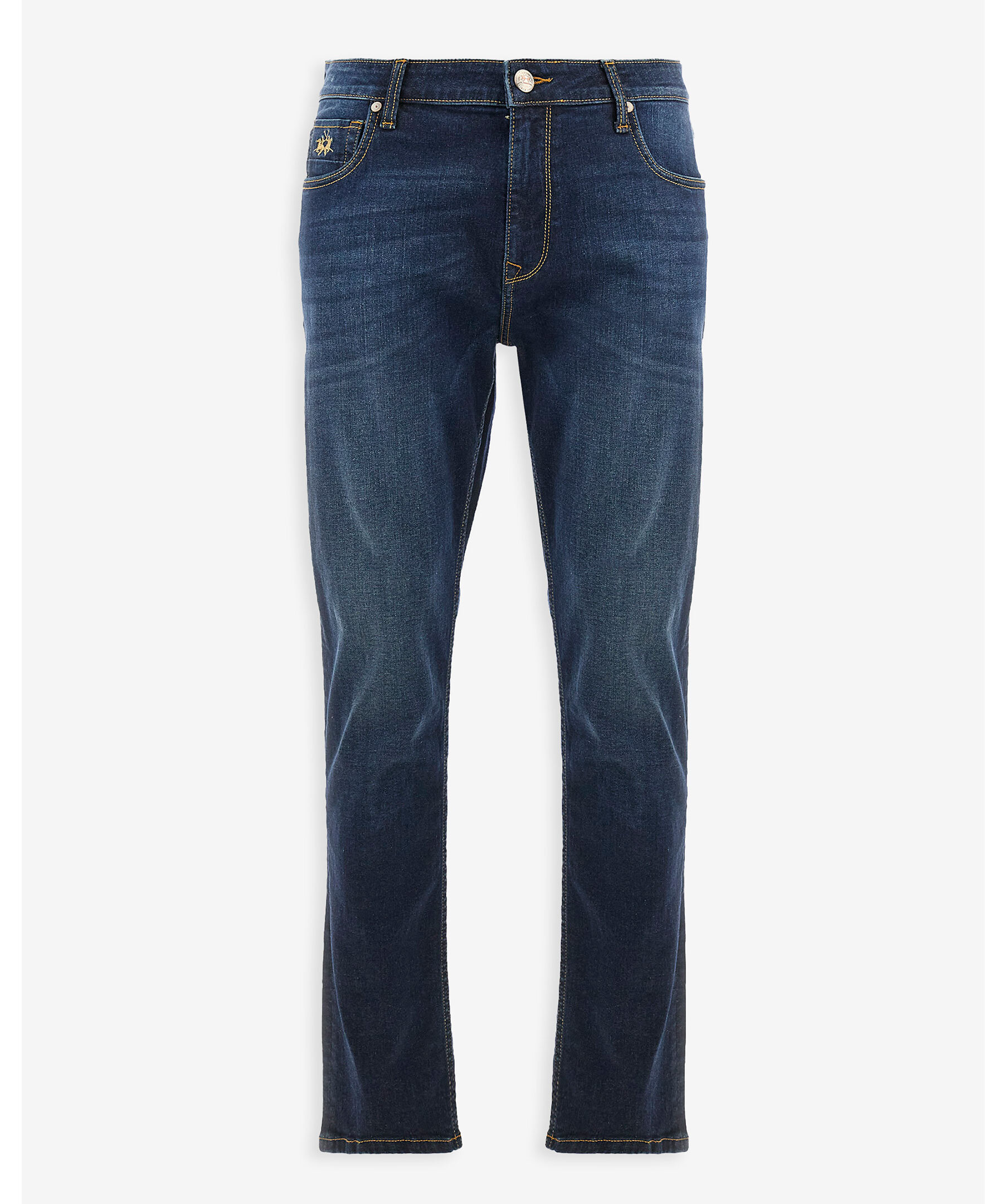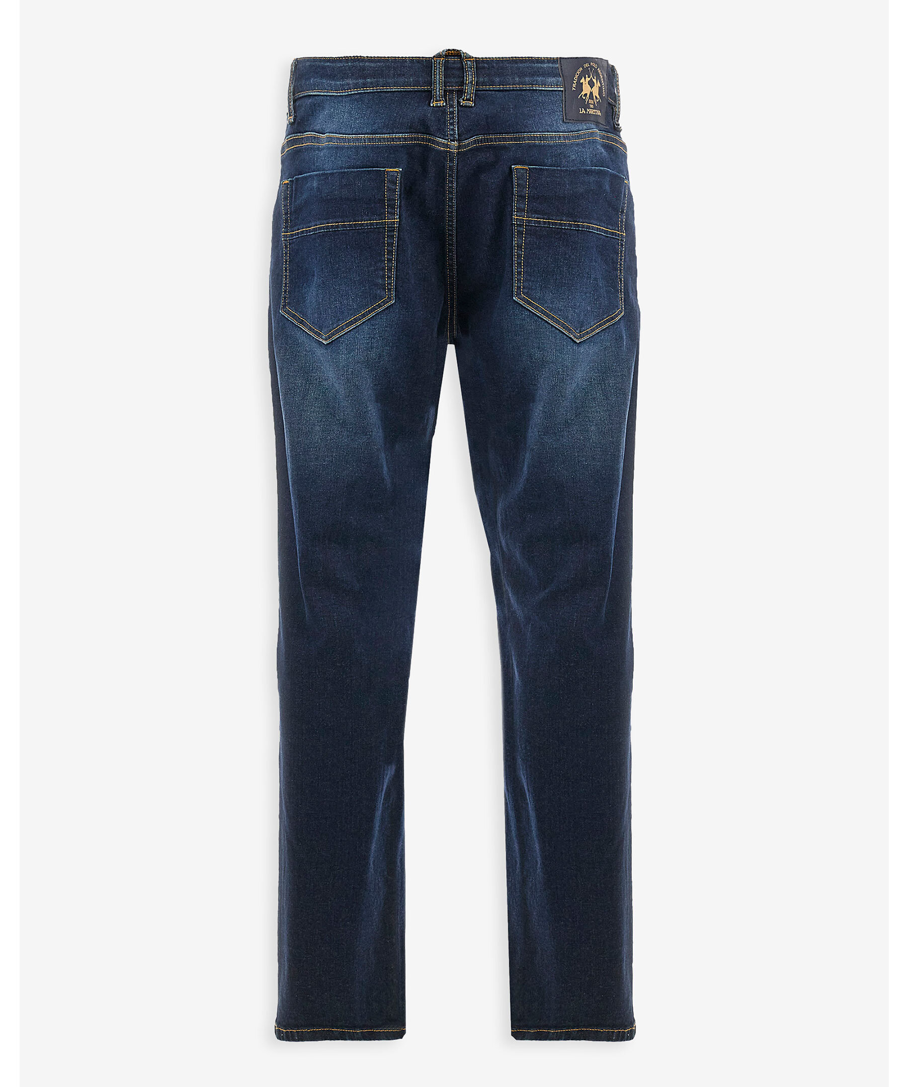 Jeans från La Martina i stretchig bomullsdenim för ökad komfort och rörelsefrihet. Klassisk femficksmodell med personliga metallnitar och dragkedjegylf med varumärkespräglad knapp. Midjan har fem hällor och ett specialdesignat bakre logomärke på linningen. En kontrastbroderad logotyp döljer sig diskret i den högra myntfickan. Jeansen har en slim fit med normal midja och formsytt snitt över gren och lår – för en modern men bekväm passform.