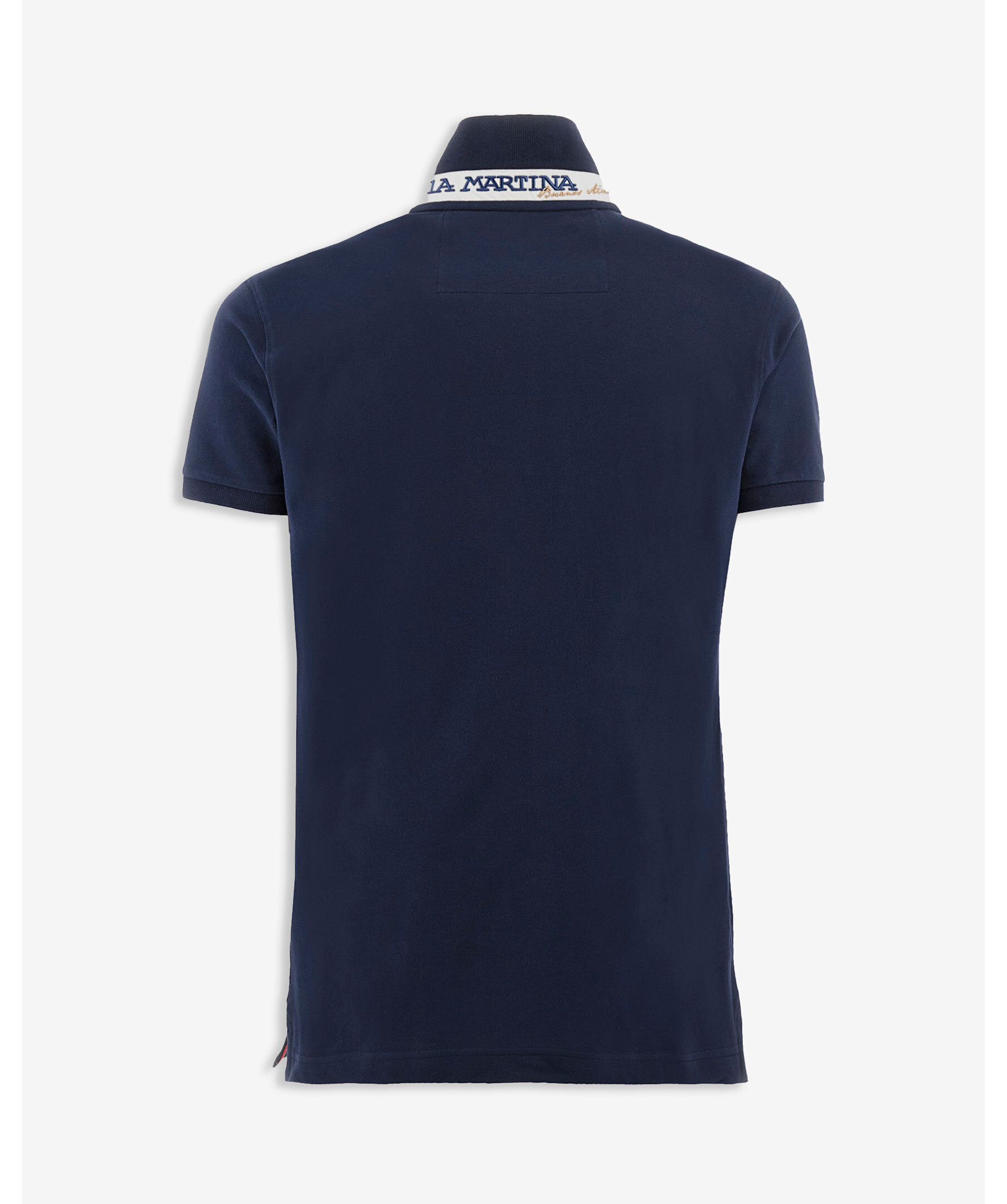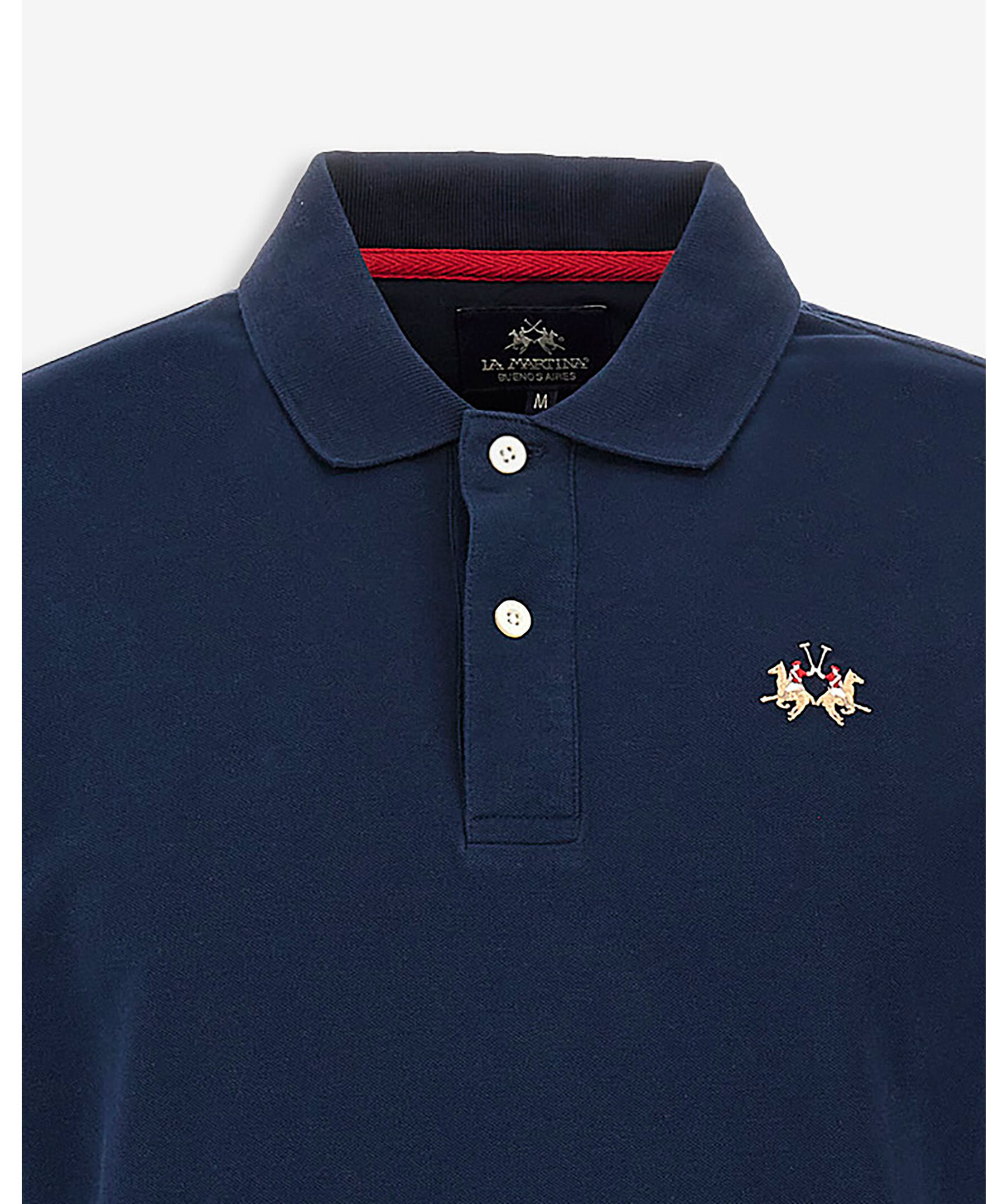 Marinblå pikétröja med korta ärmar från La Martina. Tröjan har en slim fit passform. En klassisk modell med kontrasterande broderad La Martina-logga på bröstet.