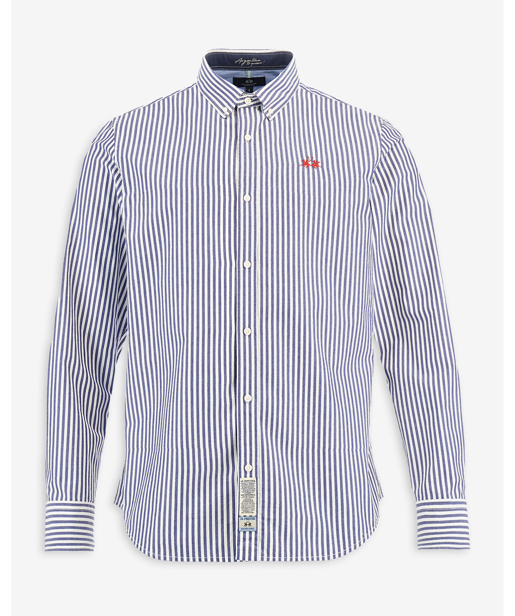 Randig skjorta från la Martina med button-down-krage. Insidan av kragen har kontrasterande tyg och färger med broderade grafiska detaljer inspirerade av Argentina. På bröstet finns en kontrasterande broderad logotyp.