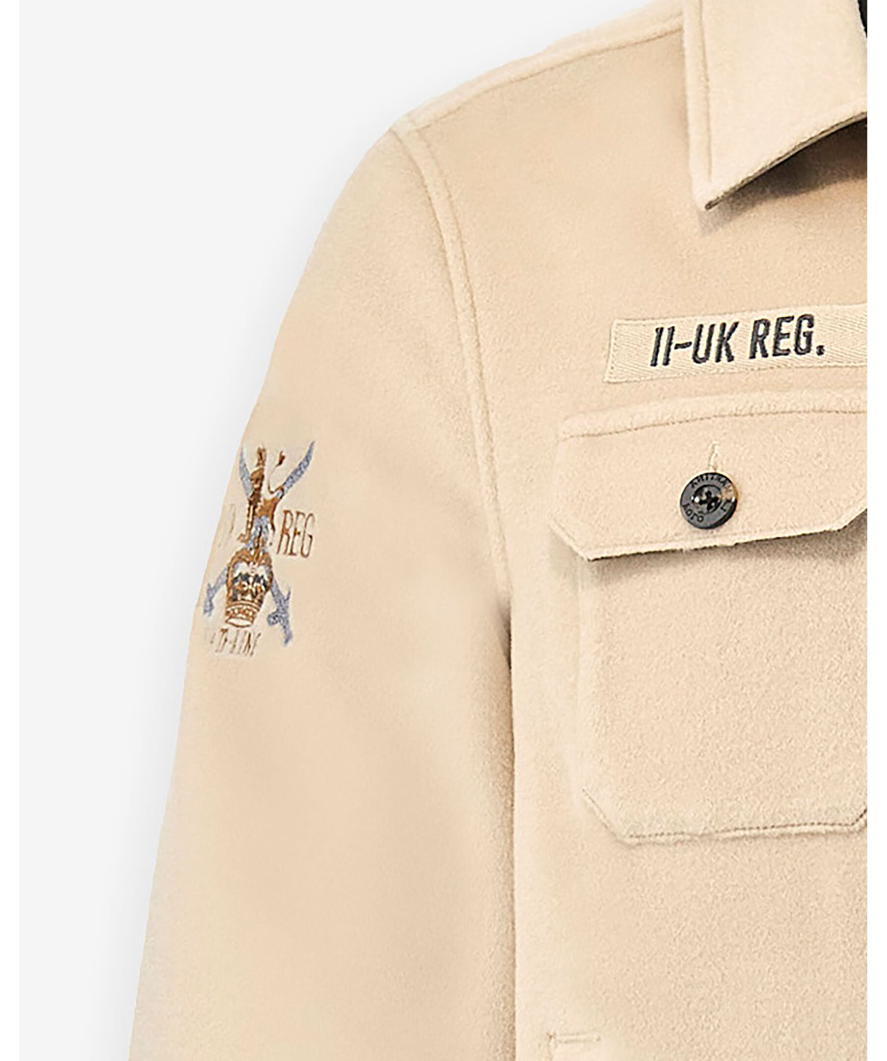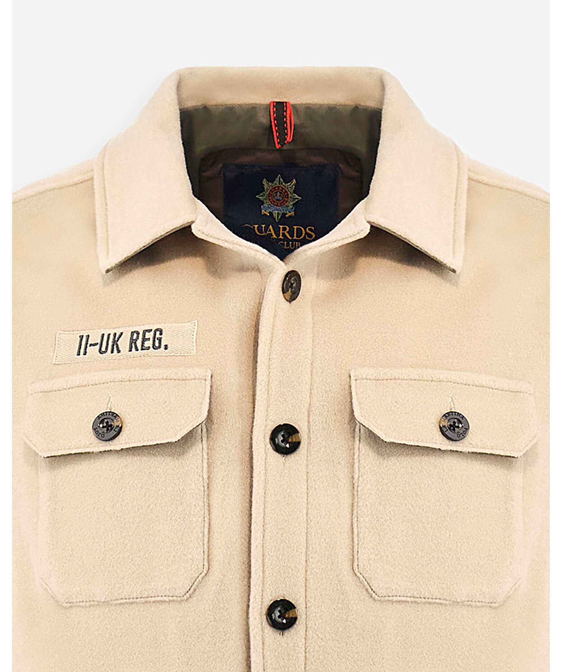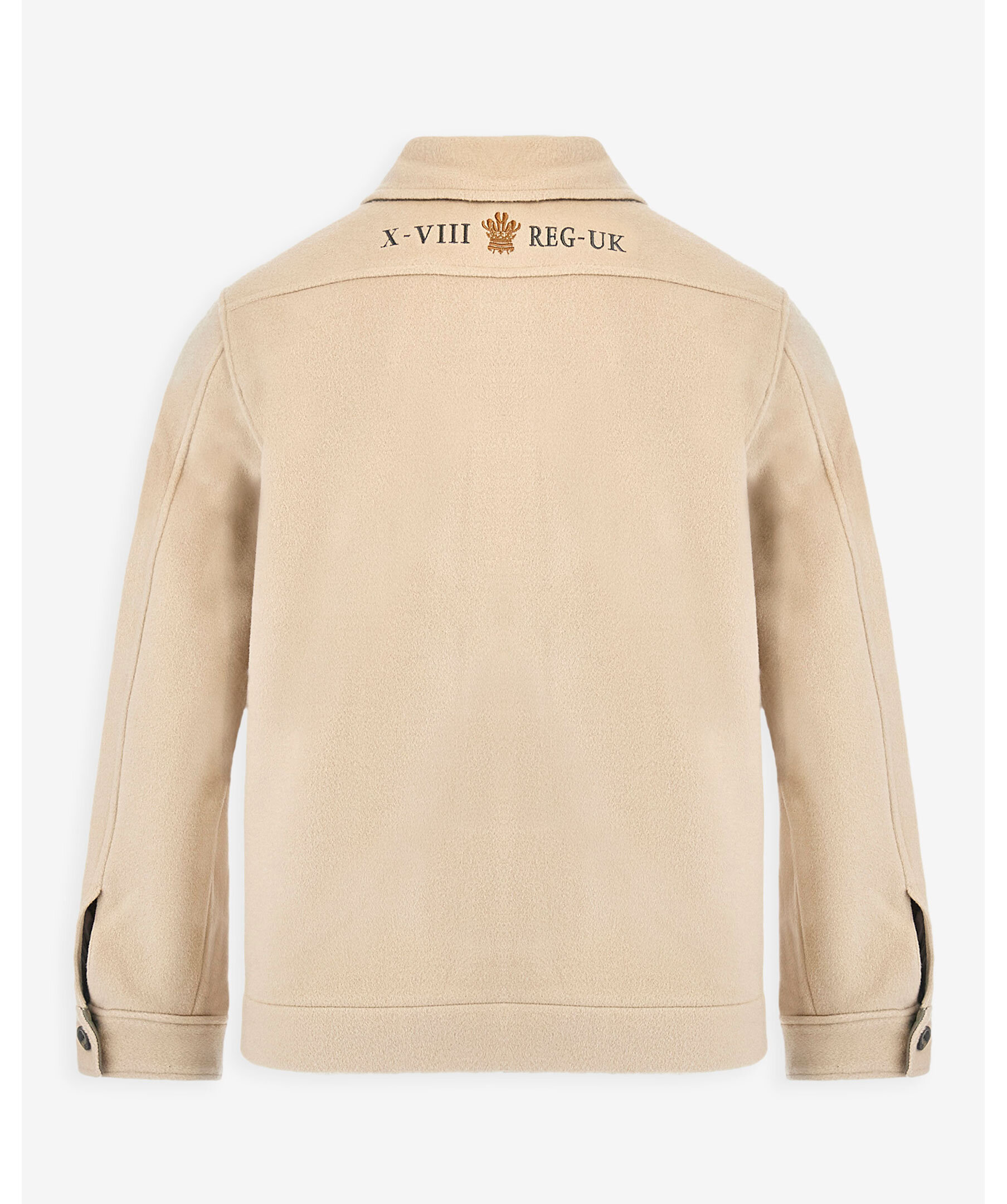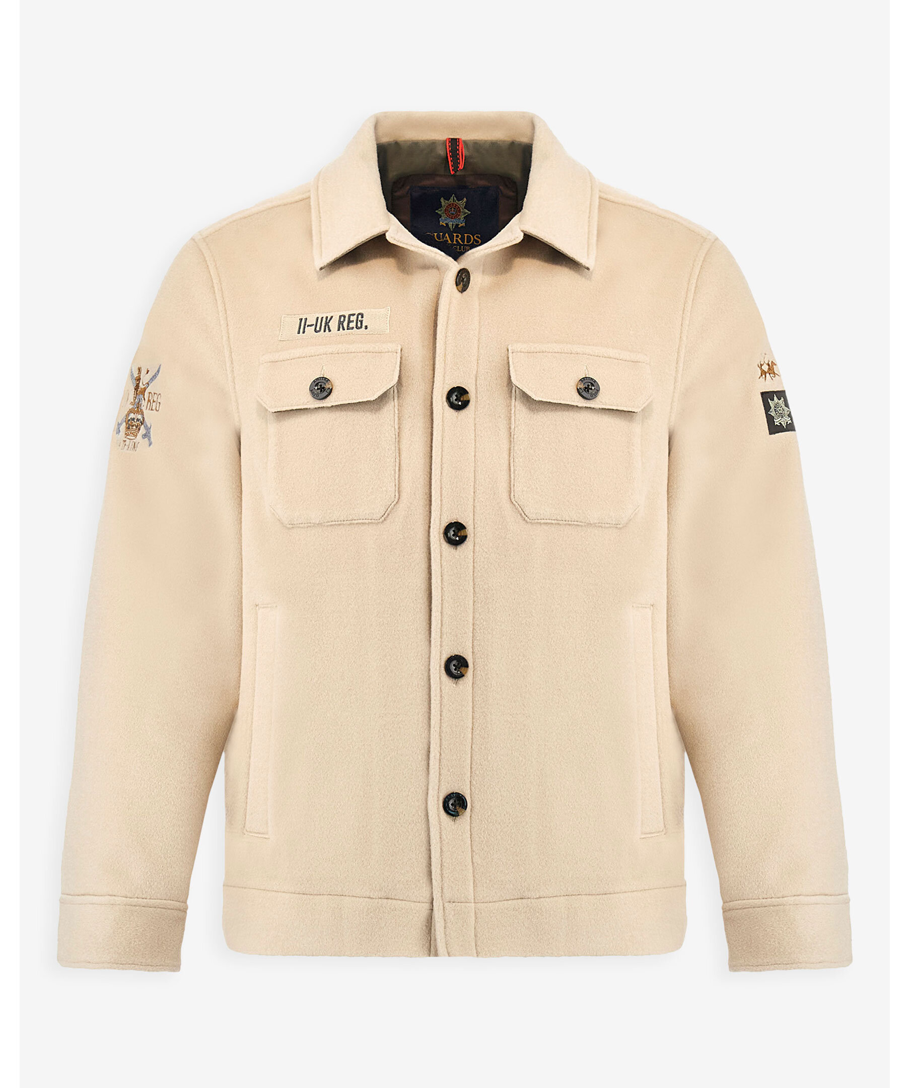 Långärmad fieldjacka för herr i en exklusiv ull- och kashmirblandning. Den kombinerar värme och komfort med en sofistikerad look. Jackan har frontöppning och ärmslut med stora knappar i imiterad horn, samt två påsydda bröstfickor som ger en sportig känsla.
