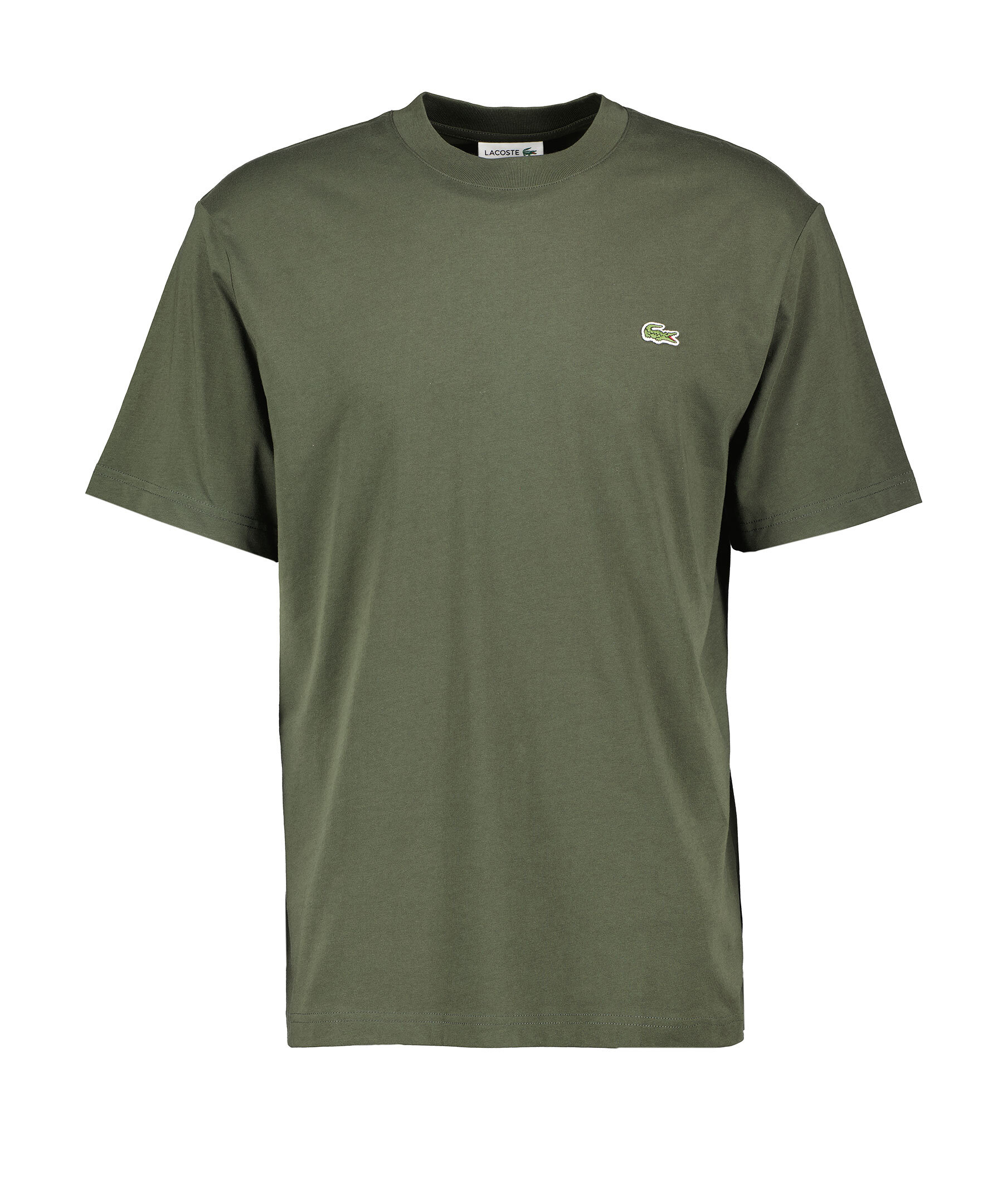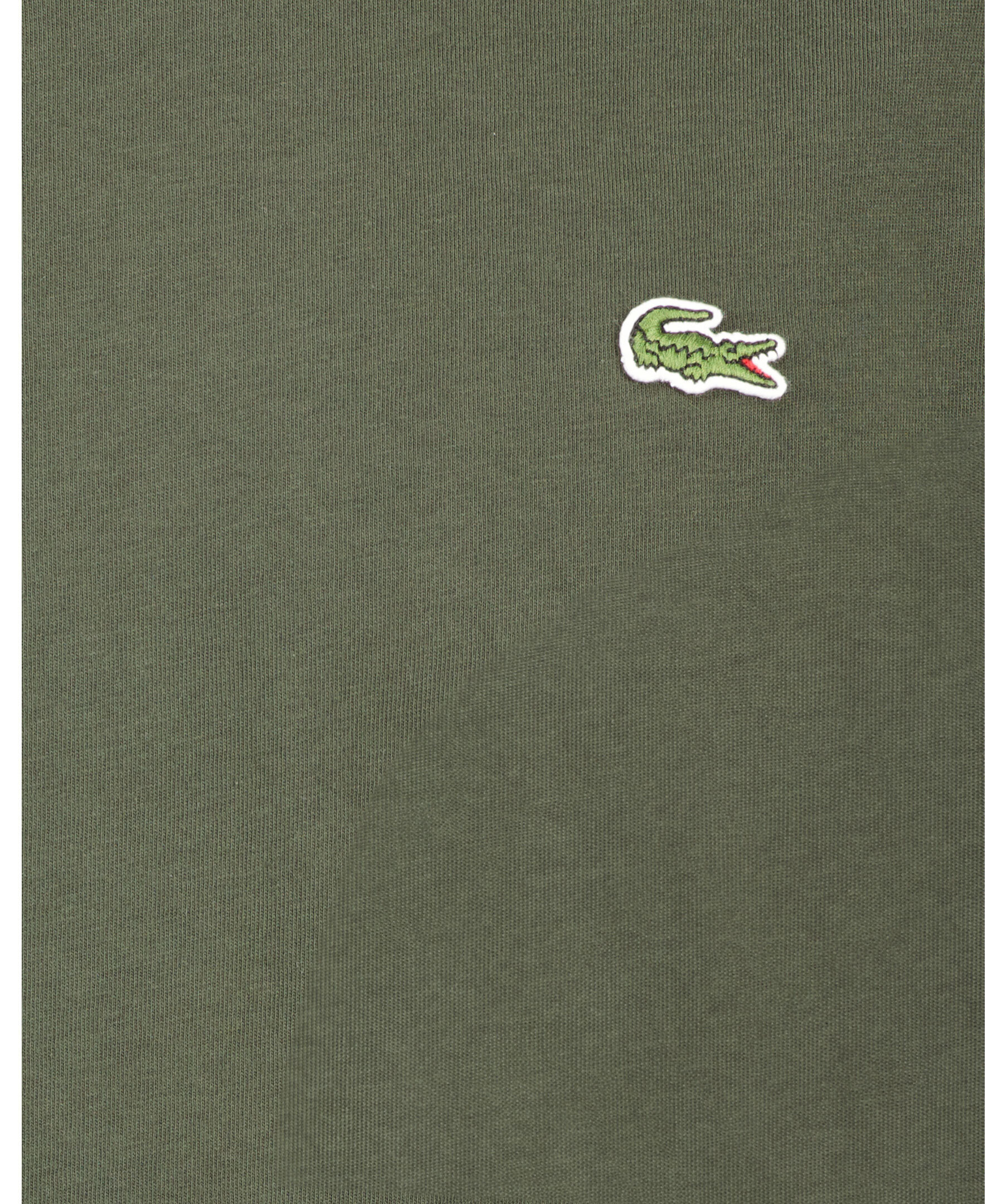Mörkgrön t-shirt från Lacoste. Broderad patch-logotyp på bröstet. Rundad halsringning. Tillverkad i 100% bomull.