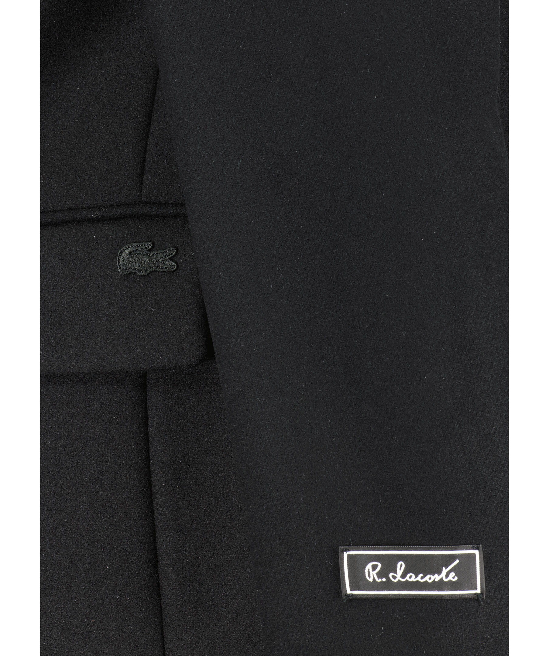 Svart rock från Lacoste. Rocken stängs med tre knappar och har två sidfickor med lock och broderad krokodil samt en bröstficka och René Lacoste signaturetikett på ärmen. Tillverkad i en ullblandning.